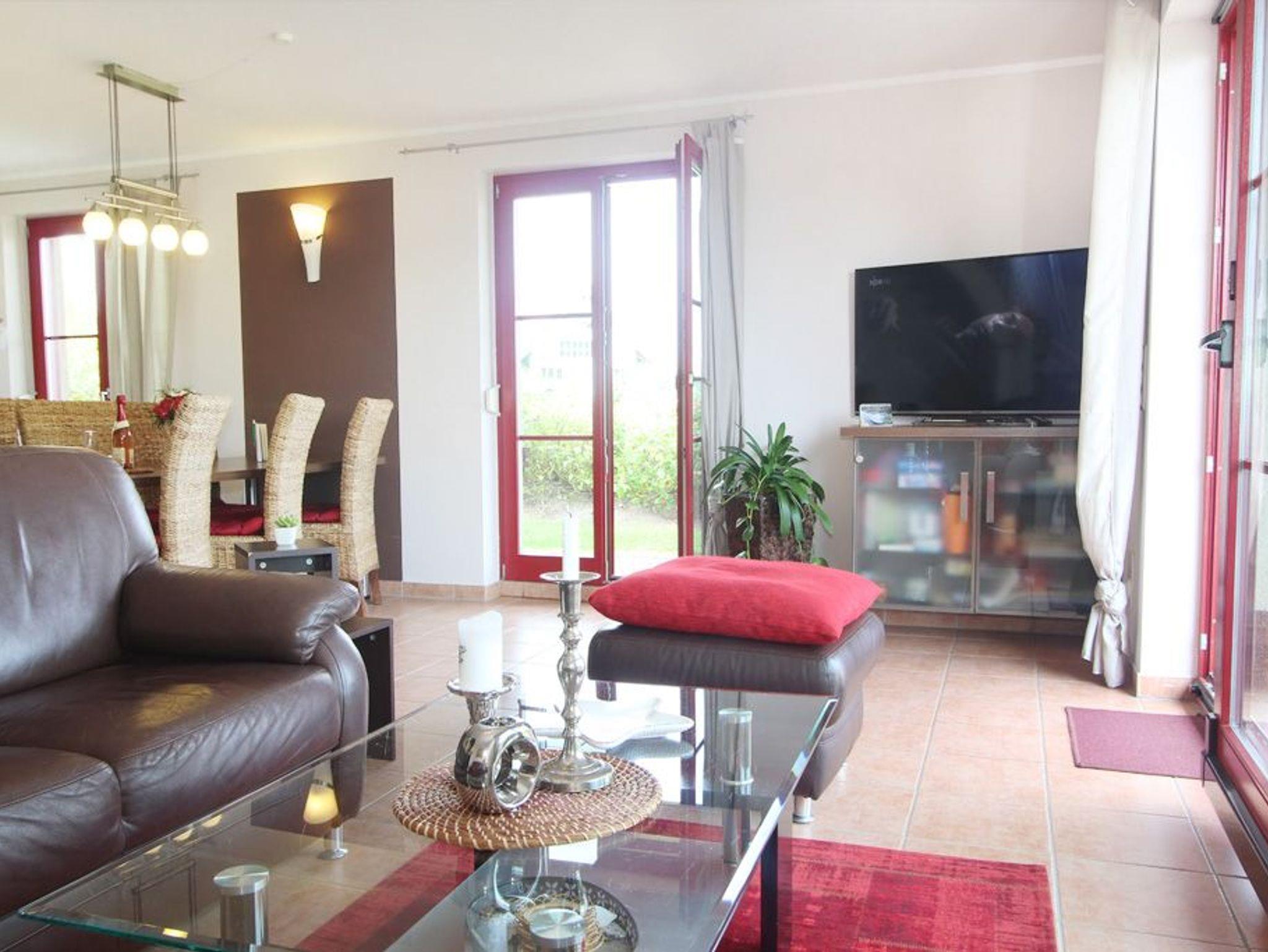 Im Erdgeschoss des 110qm großen Hauses können Sie sich im Wohnzimmer mit Flachbildfernseher, Stereoanlage und DVD-Player entspannen.
