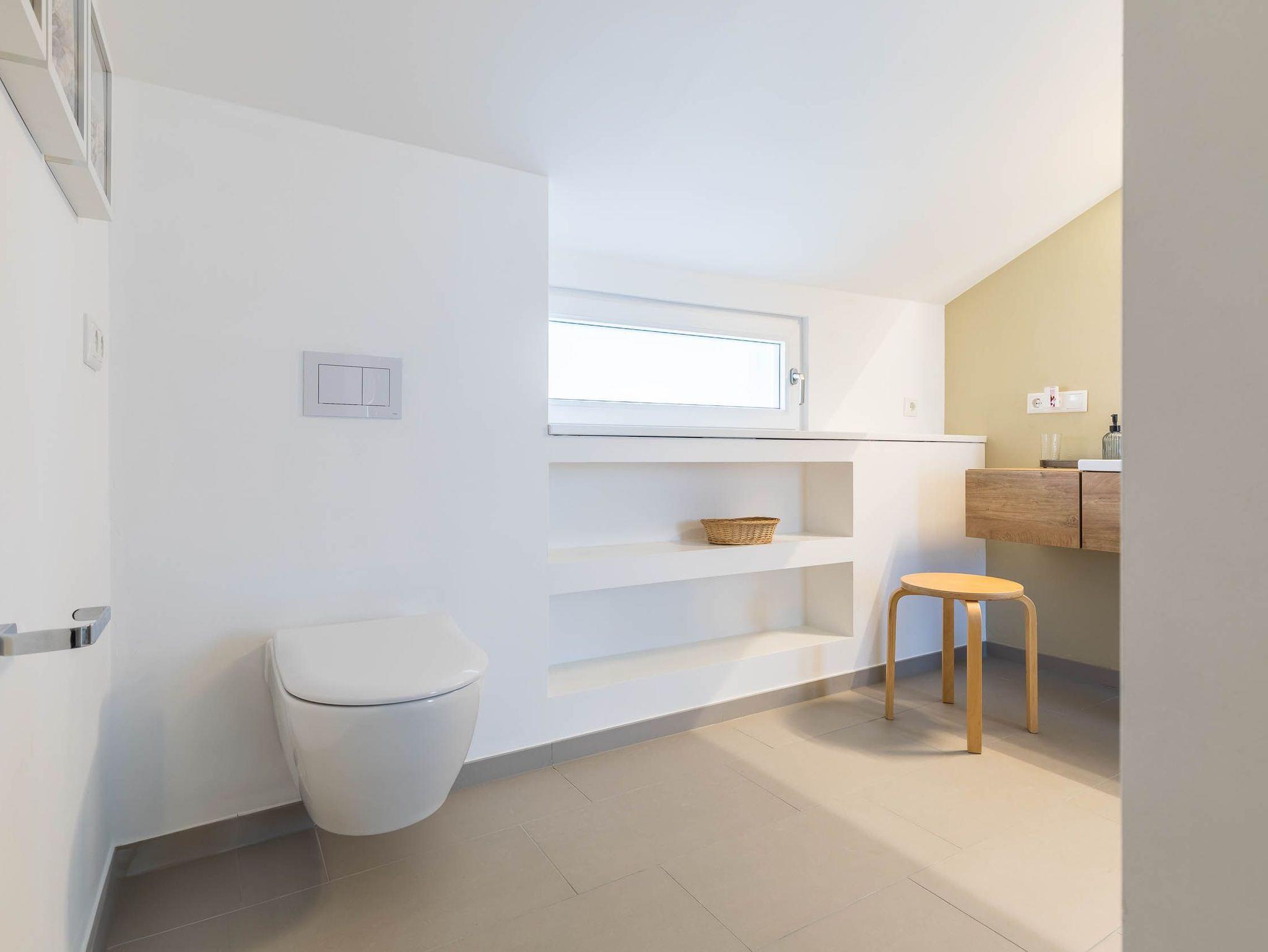 Naturmaterialien und eine Fußbodenheizung sorgen für ein angenehmes Raumklima im Haus.