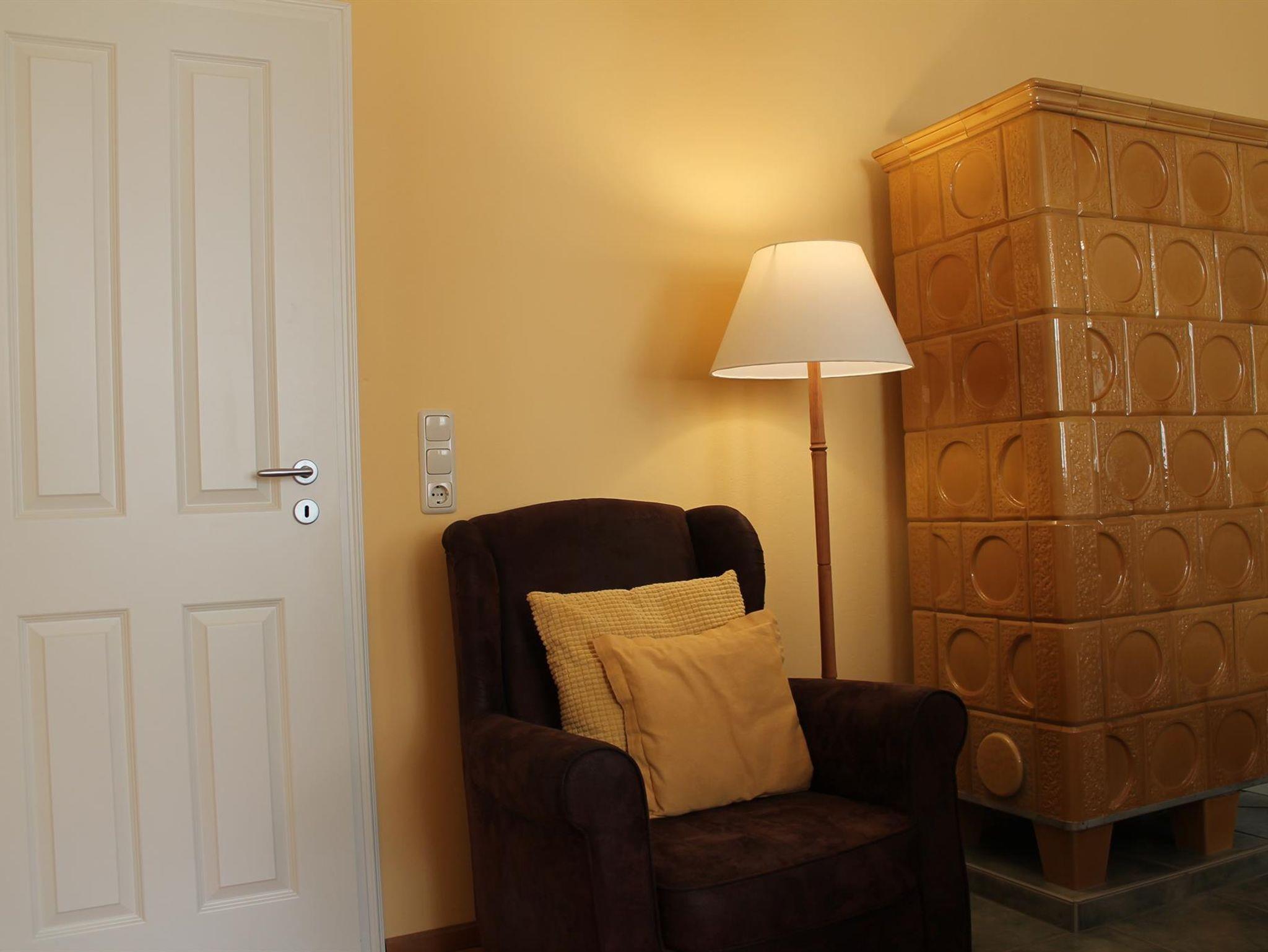 Unsere Ferienwohnung mit über 40m² Wohnfläche bietet Platz für 1-2 Personen (Aufbettung möglich max. 3 Personen). Das gemütliche Wohnzimmer mit Ecksofa, Sessel, moderner Flachbild-TV und Kachelofen lädt zum Verweilen ein. Die komplett ausgestattete Küche mit Backofen, Kühlschrank mit Tiefkühlfach, Geschirrspülmaschine und diverse elektrische Geräte lässt keine Wünsche offen. Die Ferienwohnung verfügt über ein Schlafzimmer mit zwei Einzelbetten (2,00 x 0,90 m). Das geräumige Badezimmer mit Dusche, WC und Fön rundet das Gesamtbild ab. Die Ferienwohnung ist eine Nichtraucherwohnung und ein allergikerfreundliches Haus, weswegen bei uns leider keine Haustiere unterkommen können. Verbringen Sie entspannte Abende auf unserer Sitzgelegenheit im Garten mit überdachten Gartenpavillion mit Gartenstühlen und Grill. Ihnen stehen das WLAN, einfache Fahrräder in verschiedenen Größen, ein abschließbarer Fahrradschuppen für eigene Fahrräder, Holz für den Kachelofen, eine Spielesammlung und ein großzügiger kinderfreundlicher Garten mit Kinderschaukel, Trampolin, Kinderroller und Laufrad kostenfrei zur Verfügung. Informationsmaterialien über Land und Leute sowie örtliche Aktivitäten liegen aus.