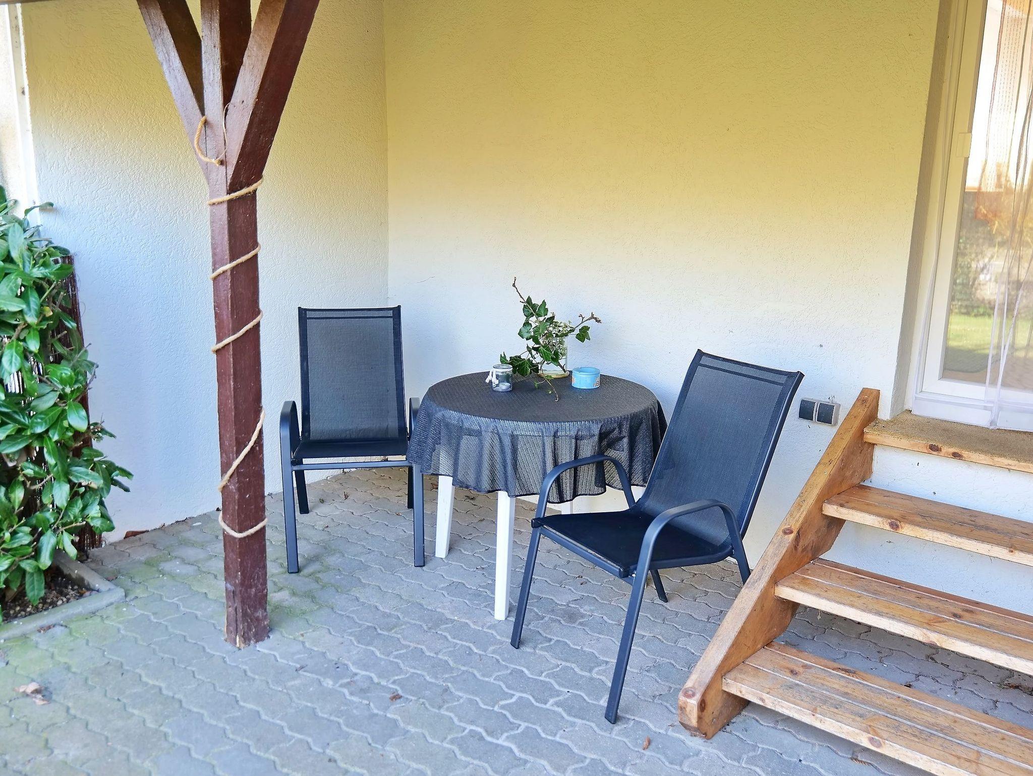 Direkt am Ferienhaus befindet sich die überdachte Terrasse (Zugang von der Küche). Hier gibt es Sitzmöbel und man kann ganz entspannt mit einem gemütlichen Frühstück in den Tag starten. Die Möglichkeit zum BBQ-Grillen ist außerdem gegeben. An die Terrasse schließt sich eine Rasenfläche, die den Gästen weiteren Platz im Freien bietet, an.