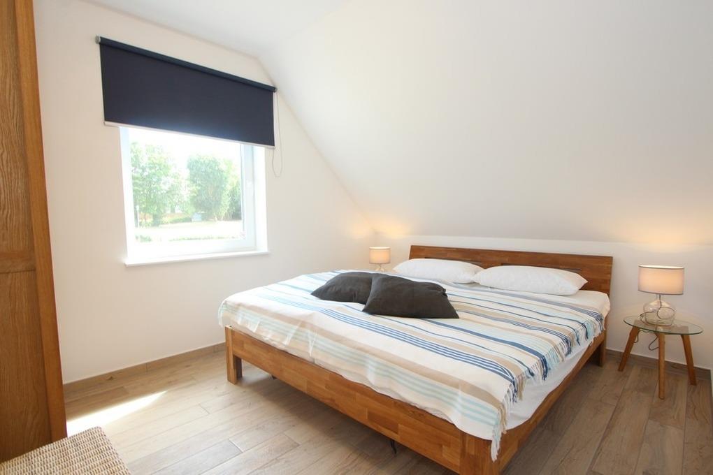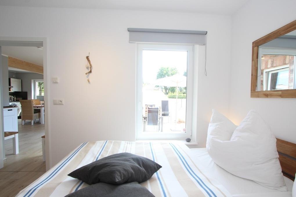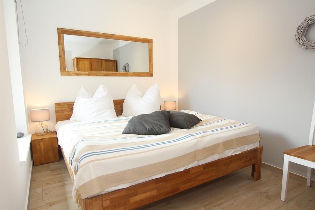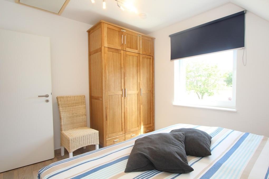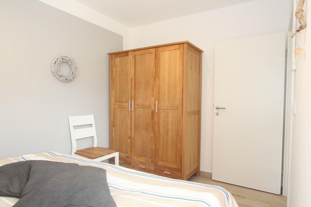 Auch eines der drei Schlafzimmer ist im Erdgeschoss vorhanden. Es ist mit einem gemütlichen Doppelbett und einem Kleiderschrank für Sie eingerichtet.