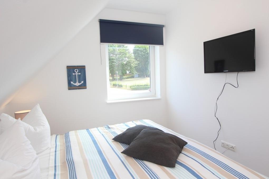 Auf dieser Etage befinden sich die beiden weiteren Schlafzimmer mit jeweils einem Doppelbett und einem Kleiderschrank und das zweite Bad, ebenfalls mit Fenster. Das größere Schlafzimmer ist mit einem herrlich großen Doppelbett (200x200cm)[nbsp]eingerichtet. Dort befindet sich auch ein weiterer Fernseher.