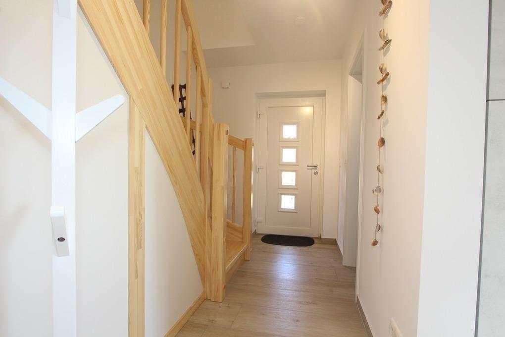 Eine Holztreppe im Flur führt Sie ins 1. Obergeschoss.
