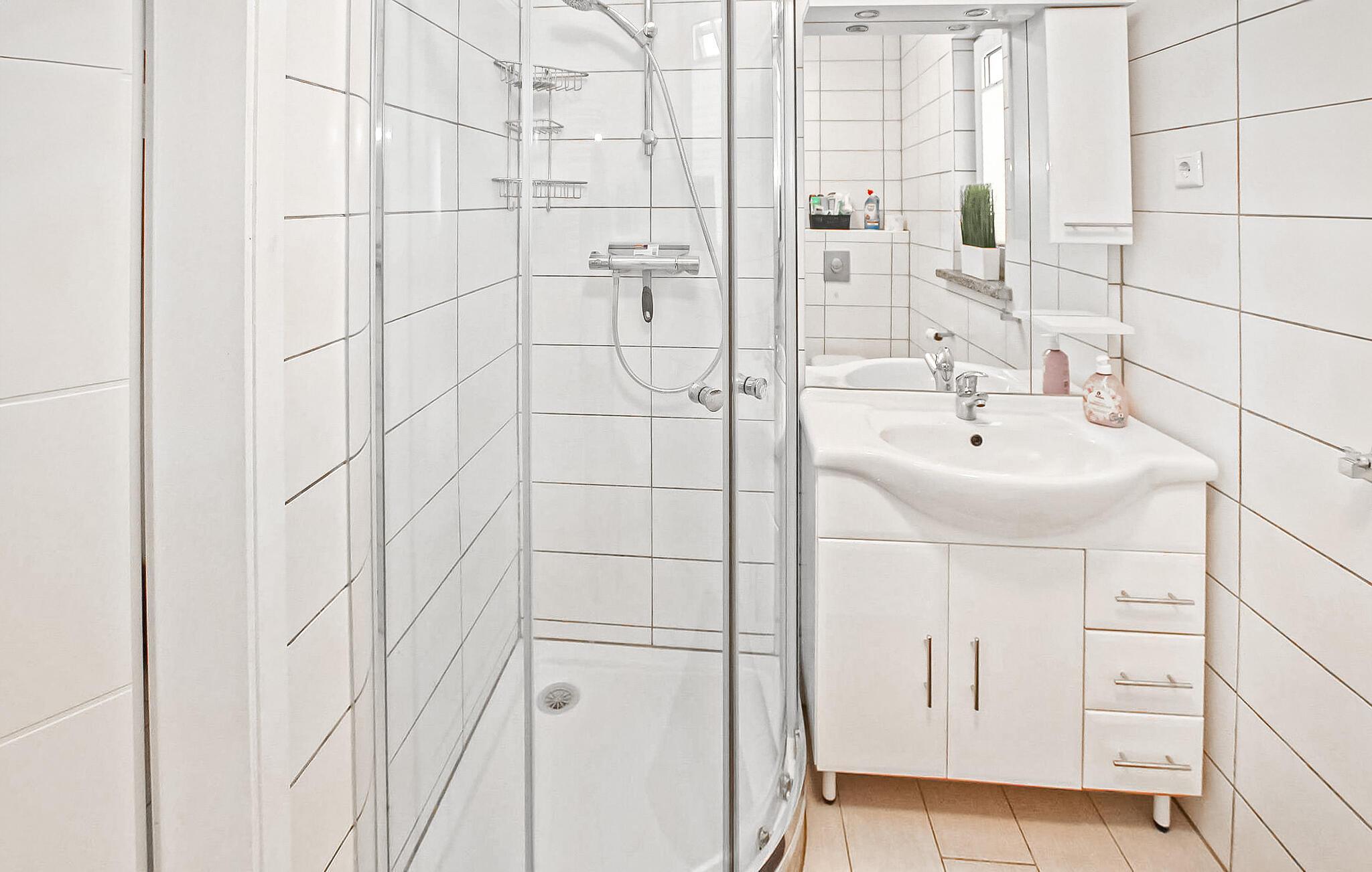 Badezimmer (nr. 1) - WC. Warmes und kaltes Wasser. Dusche
