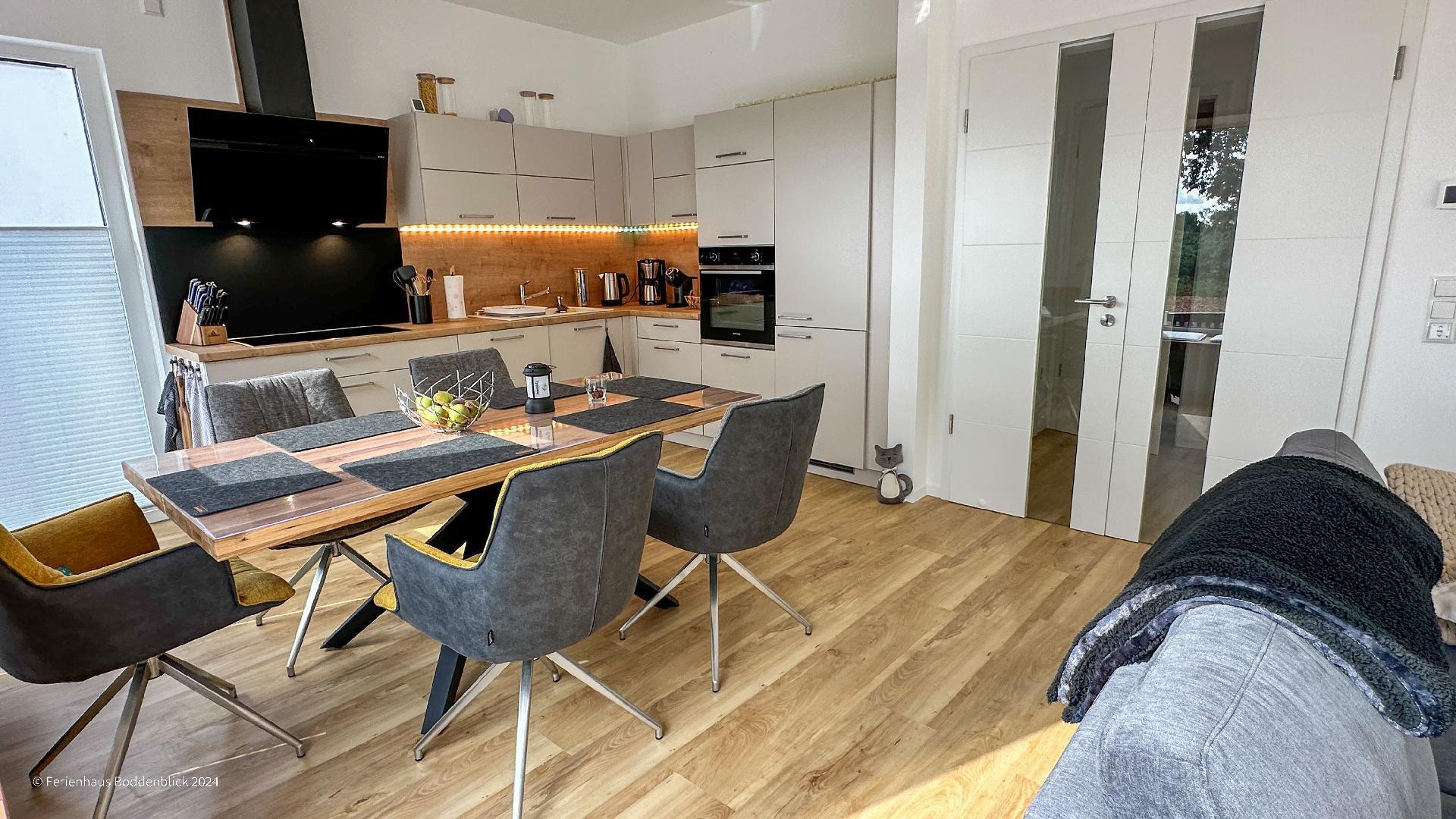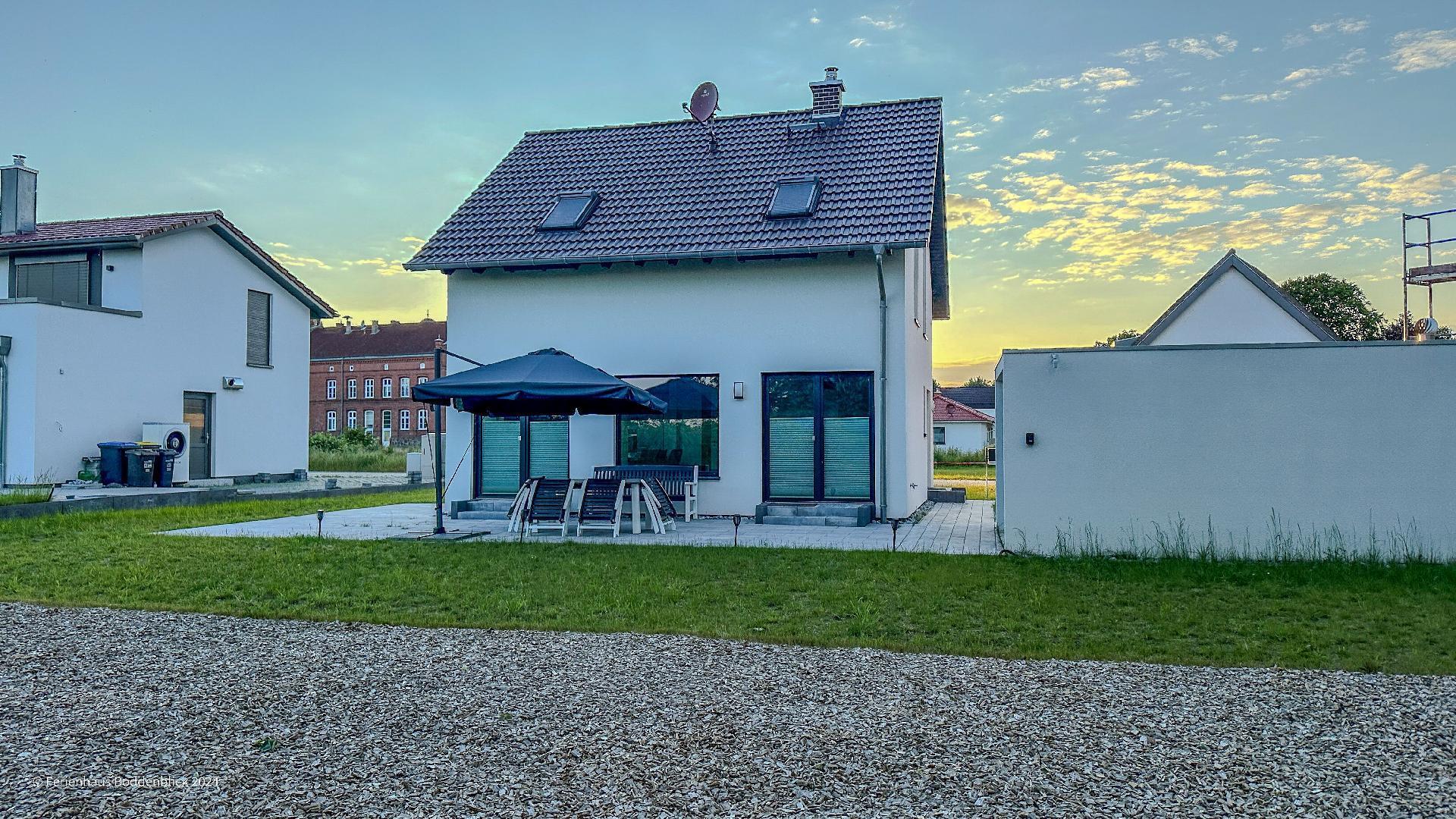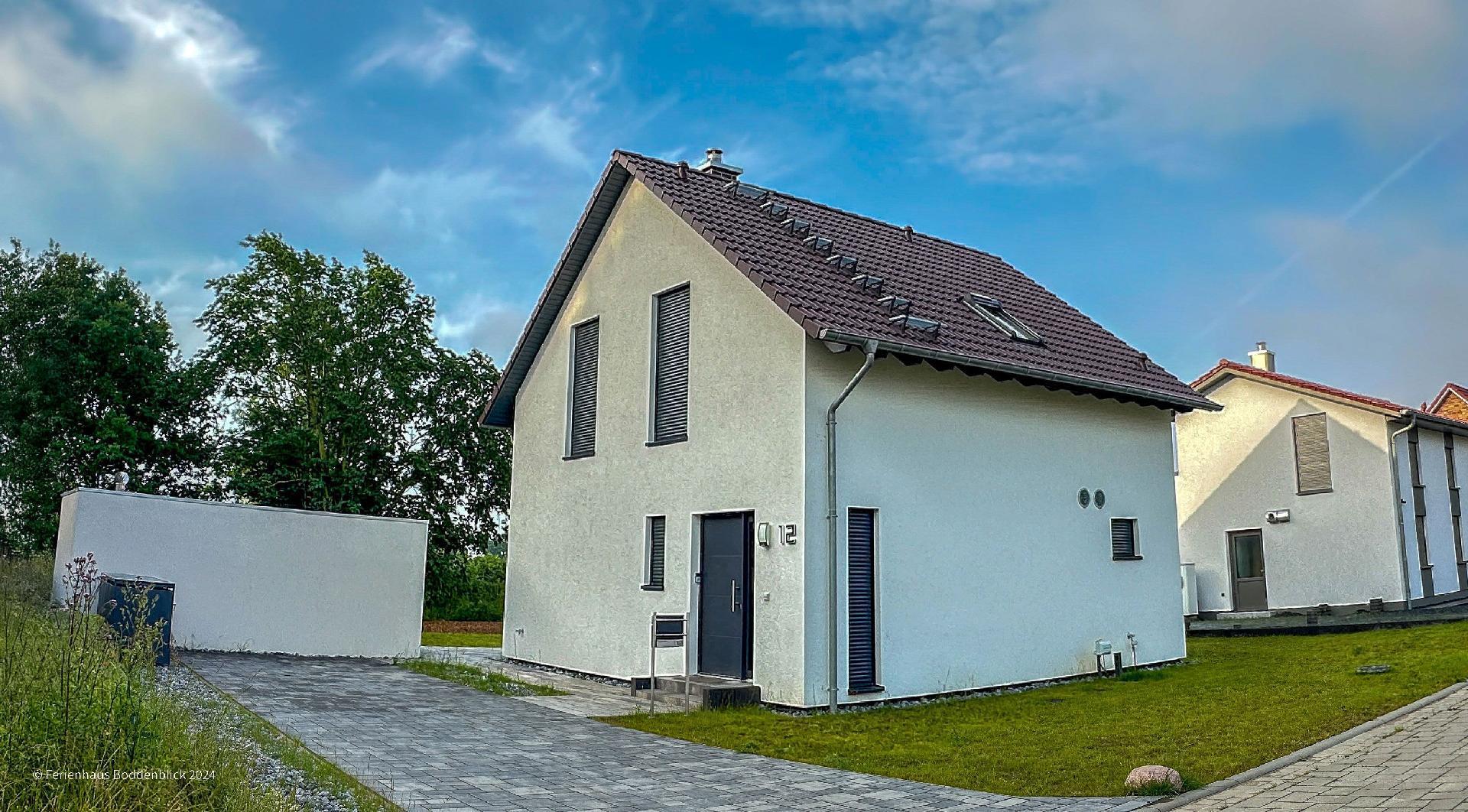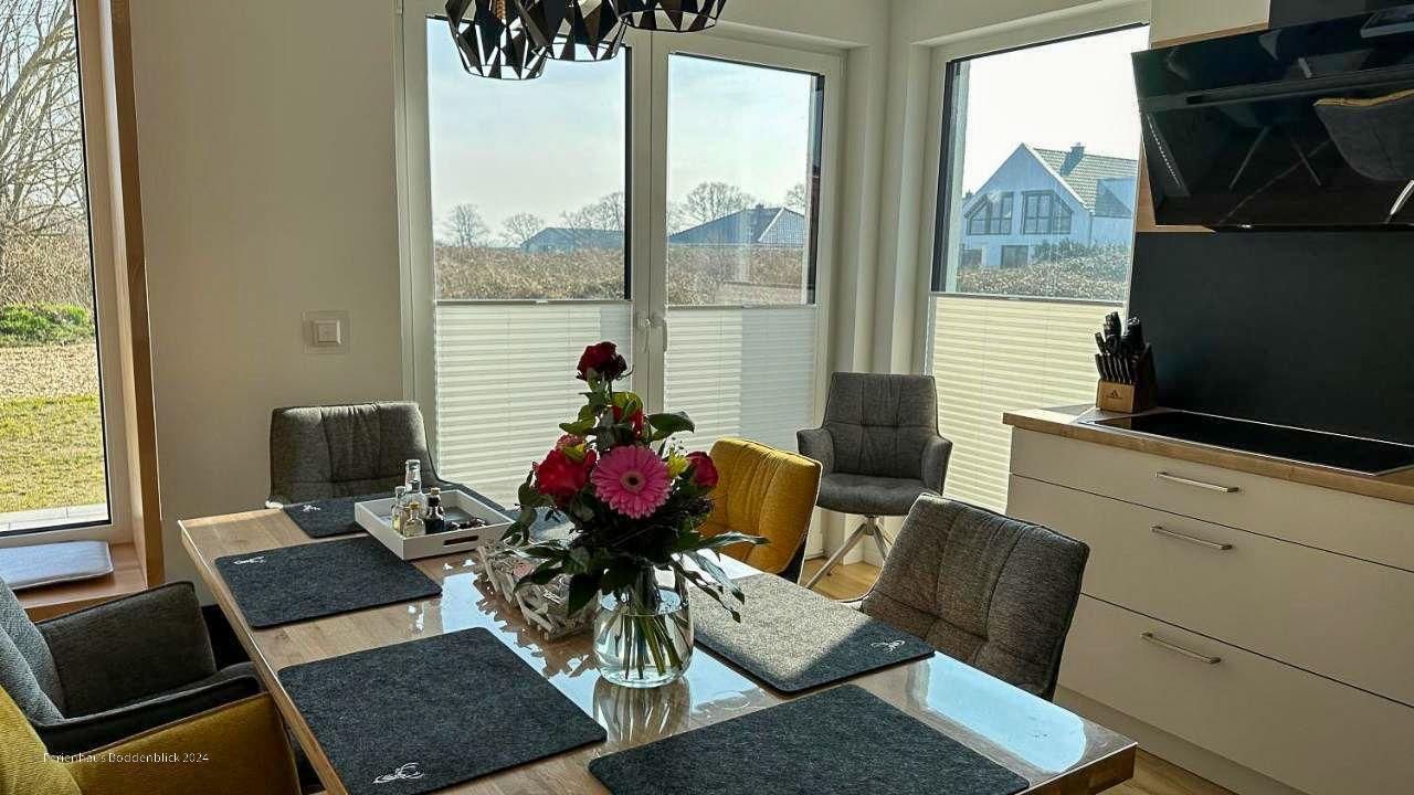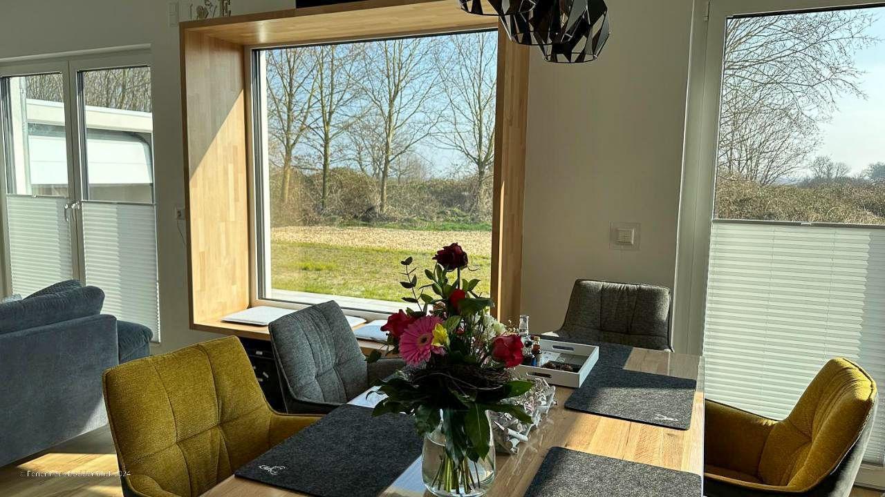 Das umweltfreundliche Ferienhaus Boddenblick in Klausdorf bietet idyllischen Komfort nahe dem Strand und Nationalpark.