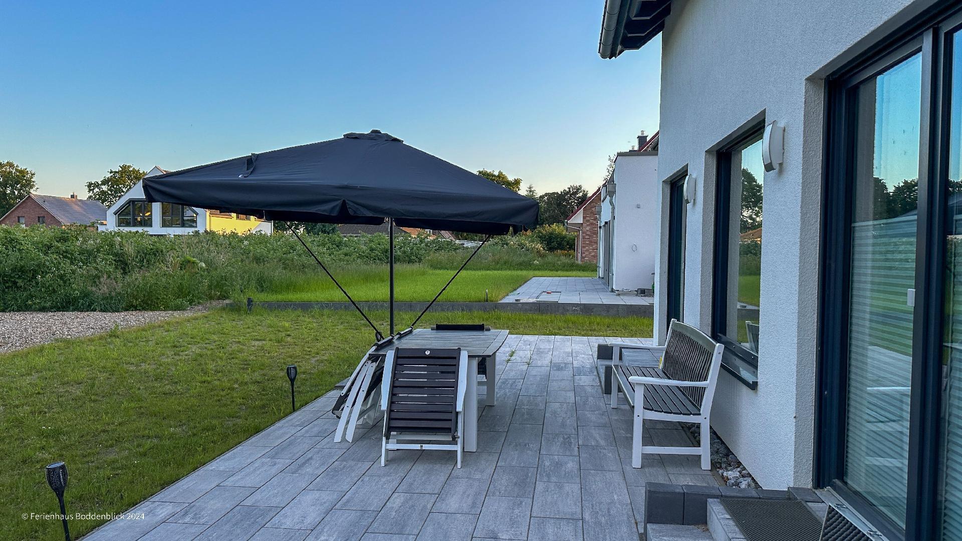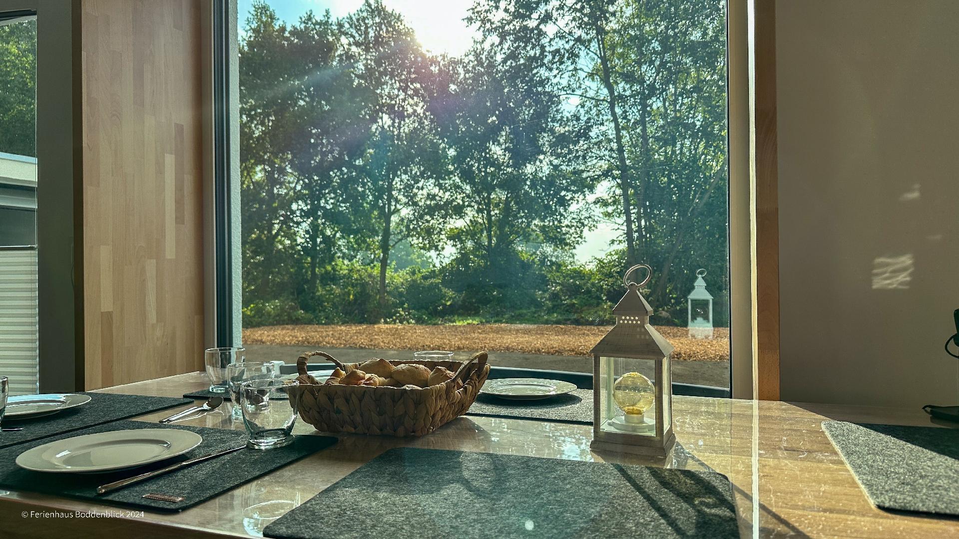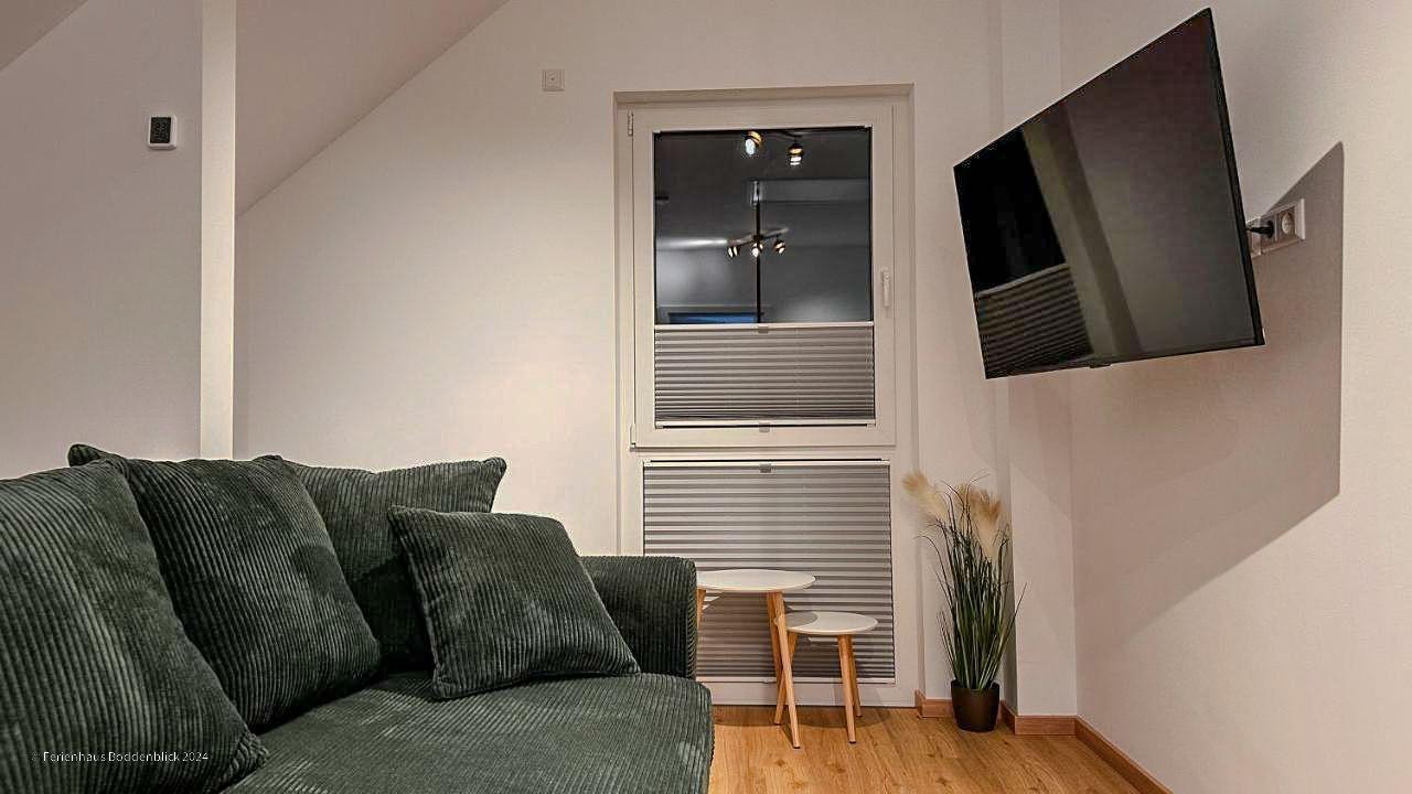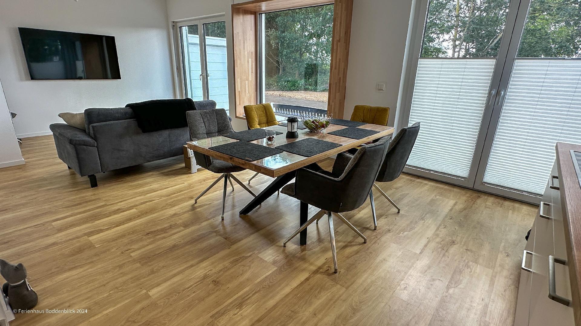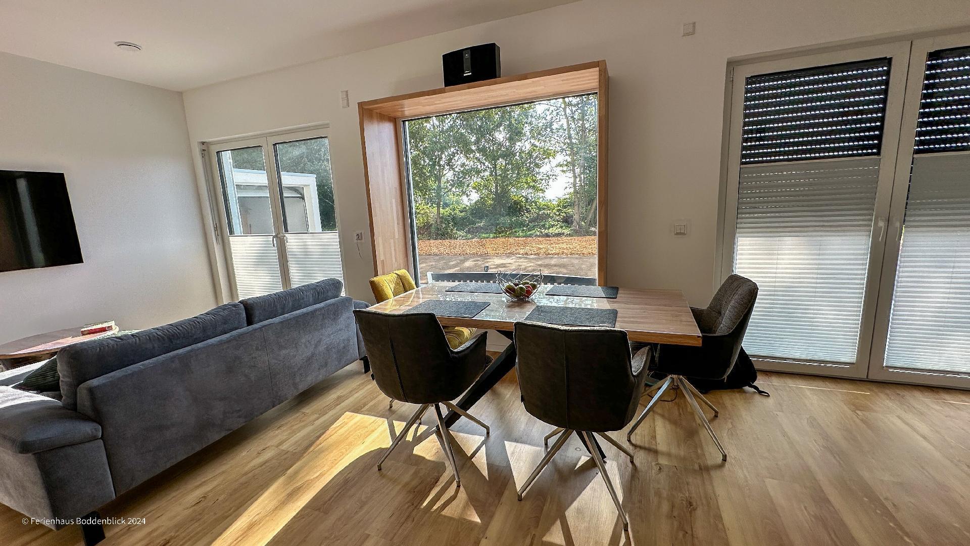 Das umweltfreundliche Ferienhaus Boddenblick in Klausdorf bietet idyllischen Komfort nahe dem Strand und Nationalpark.