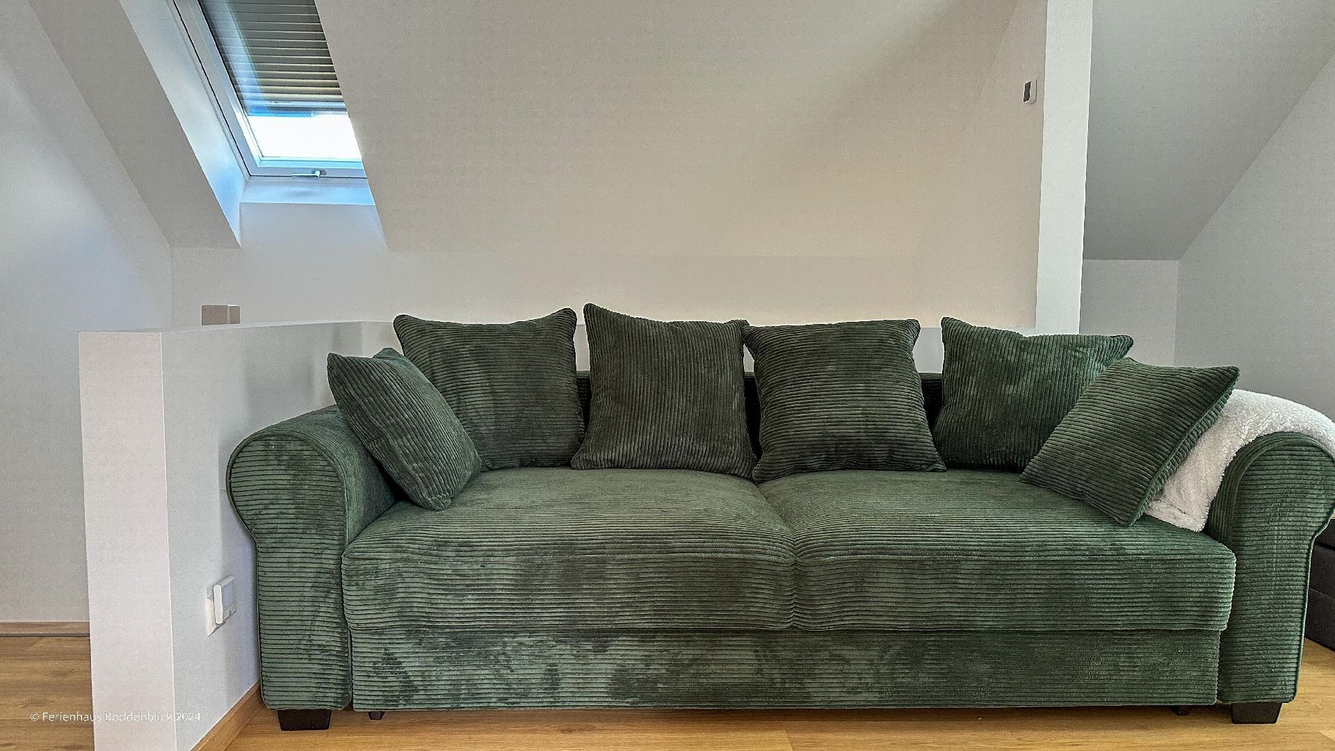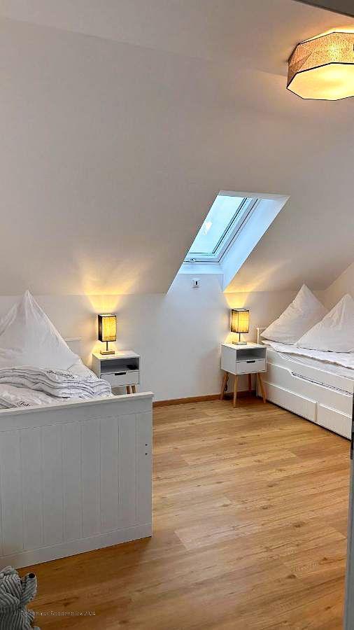 Das idyllisch gelegene Ferienhaus verfügt über: Ein Schlafzimmer mit King-Size-Bett (180 x 200 cm) Ein Schlafzimmer mit 4 Schlafplätzen (90 x 200 cm) Eine offene Galerie mit Doppelschlafcouch (165 x 200 cm) Ein Wohnbereich mit Schlafcouch (120 x 200 cm) Jedes der 4 Zimmer verfügt über einen modernen Smart-TV Fernseher.
