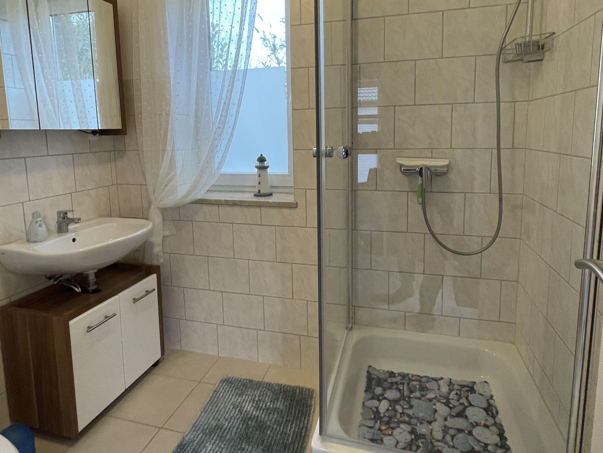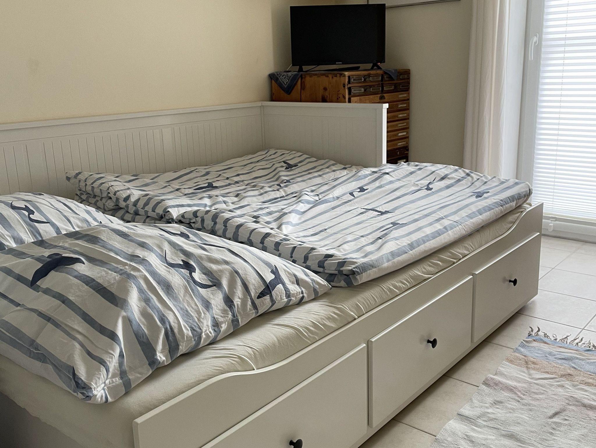 Wir vermieten unsere kleine Ferienwohnung an max. zwei Personen. In der Ferienwohnung befindet sich ein Bett welches über Tag als Couch benutzt werden kann. Bei einer Belegung mit zwei Personen kann diese als Doppelbett (1,6 m x 2,00 m) genutzt werden. In dem Wohn- und Schlafraum befindet sich eine kleine Küche für die Selbstversorgung. Das Bad ist übersichtlich und geräumig.
