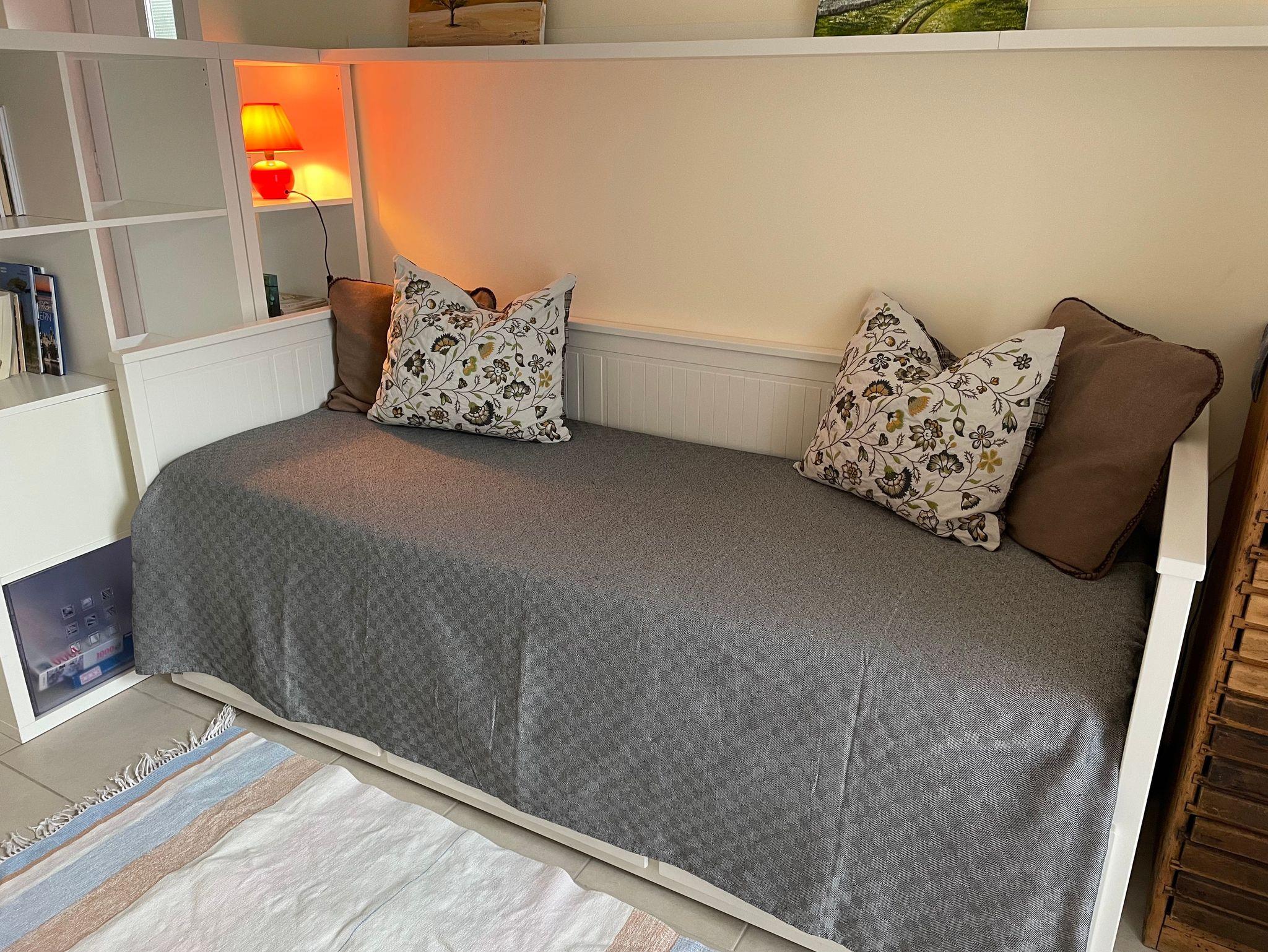 Der Wohn- und Schlafraum ist hell und praktisch eingerichtet. Die integrierte Küche bietet die Möglichkeit, sich selbst zu versorgen und das Bad ist geräumig und praktisch.