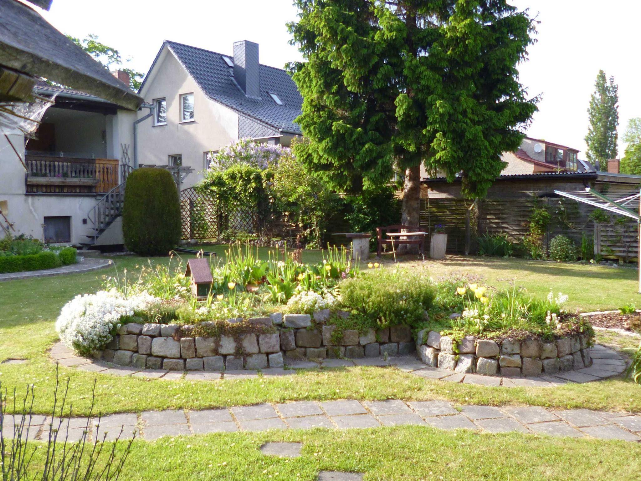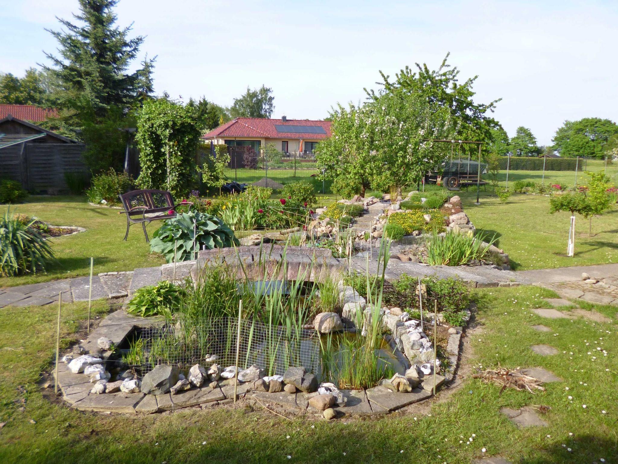 Dabei blicken Sie über die Loggia auf das ca.150 m entfernte Boddengewässer mit der Insel Rügen im Hintergrund oder plaudern nach Wunsch mit anderen Gästen bzw. erfahren vom Gastgeber gern weitere Informationen über Wanderrouten und Ausflugsmöglichkeiten. Oder Sie genießen einfach nur den schönen Garten, der mit seinen vielen Blumen und dem kleinen Goldfischteich eine gute Möglichkeit ist, die herrliche Natur zu erleben.