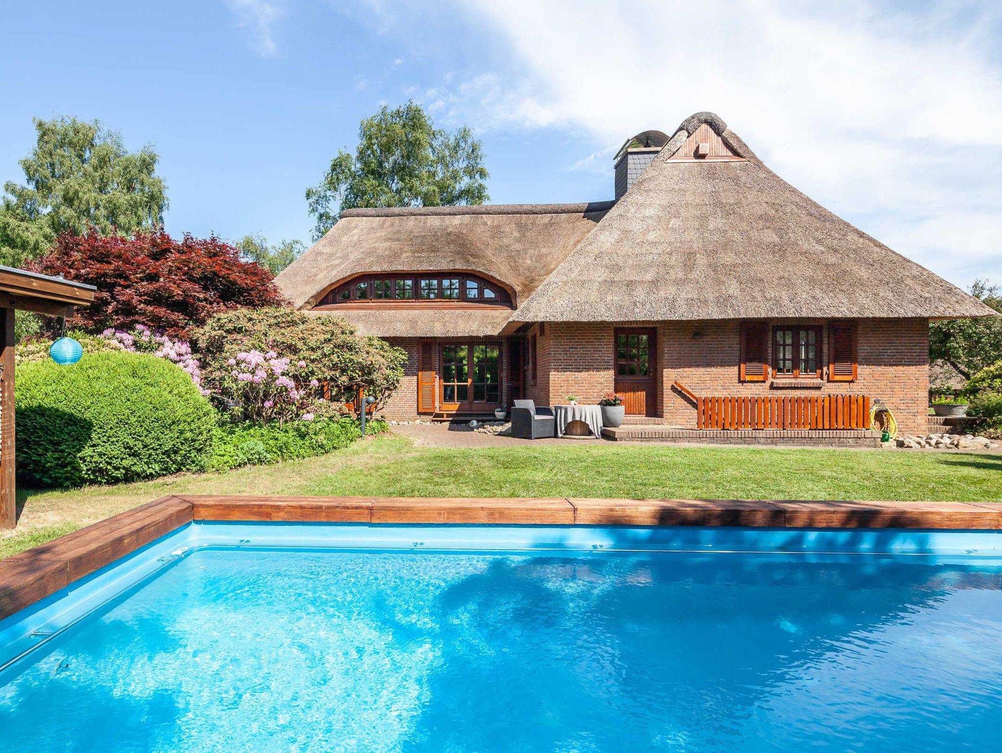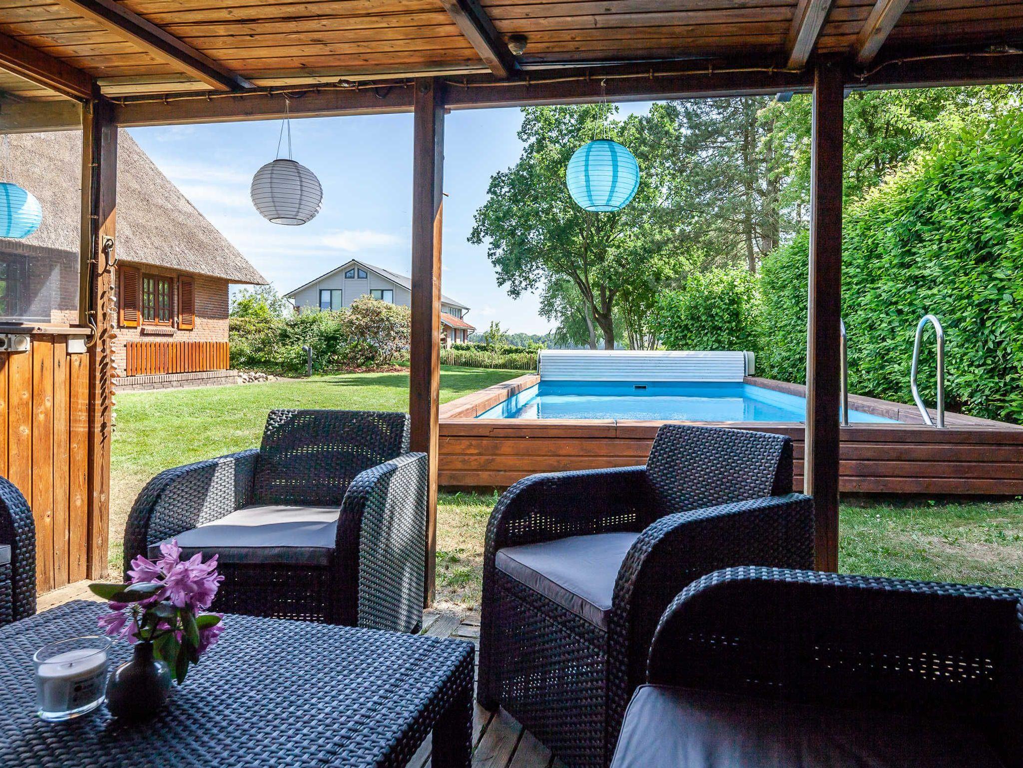 Exklusives Ferienhaus REETselig mit Pool, Sauna, Garten und Kamin am See in Klein Barkau.