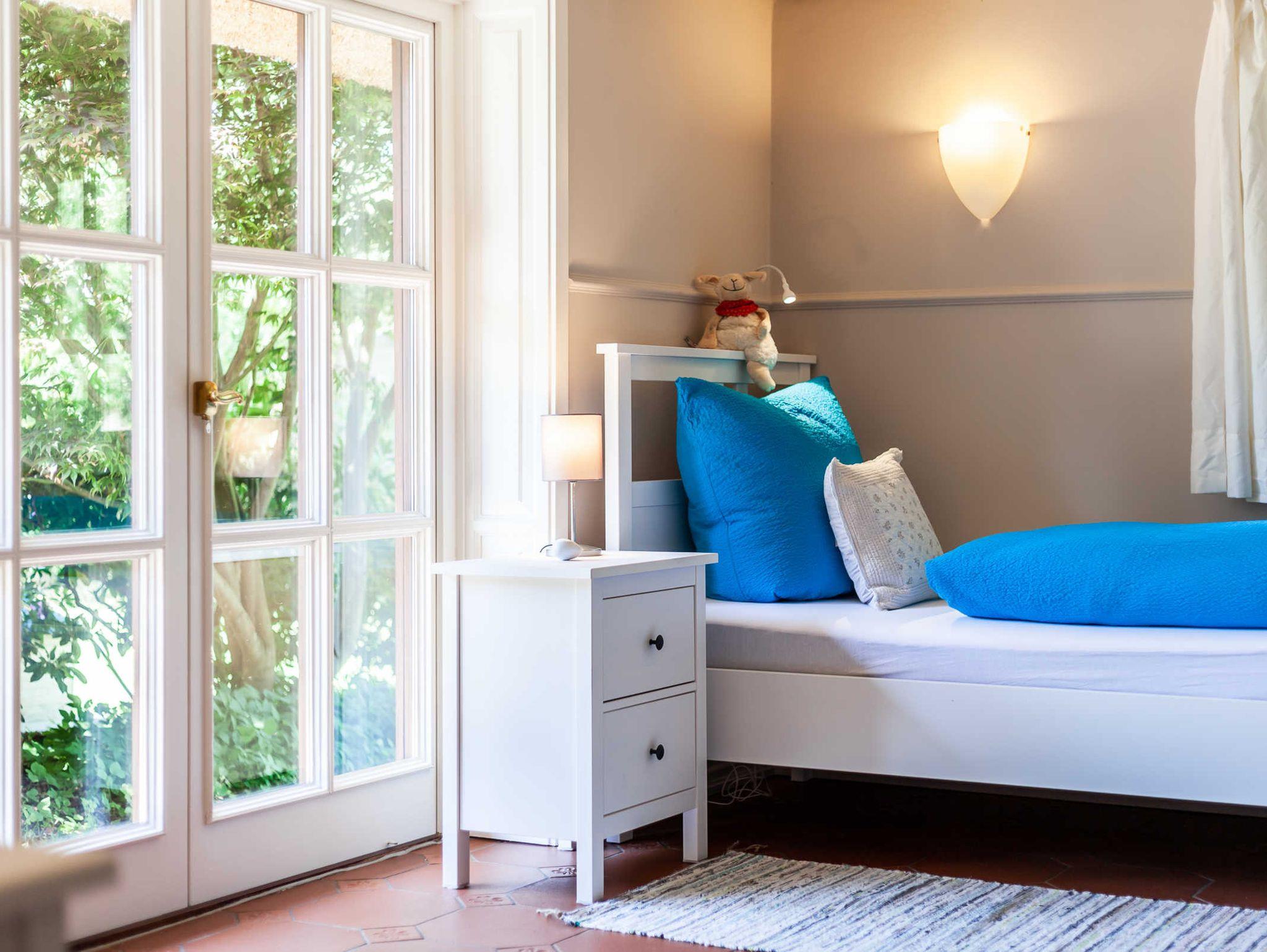 Im Erdgeschoss befinden sich zwei Schlafzimmer. Schlafzimmer 1 mit 2 Einzelbetten und Kleiderkommode, Schlafzimmer 2 mit Doppelbett und großem Kleiderschrank. Bad mit Dusche und WC.