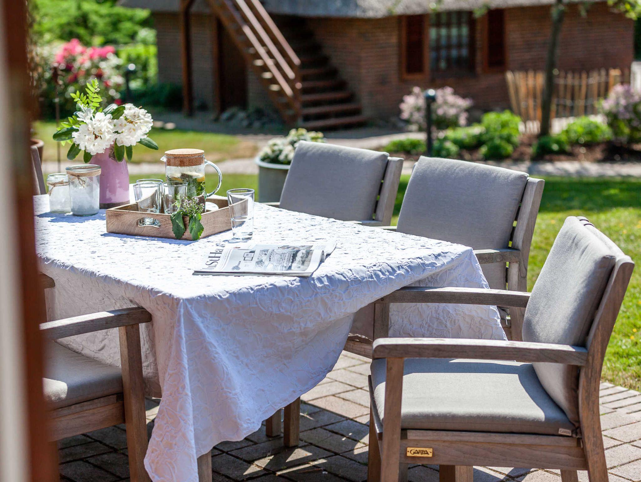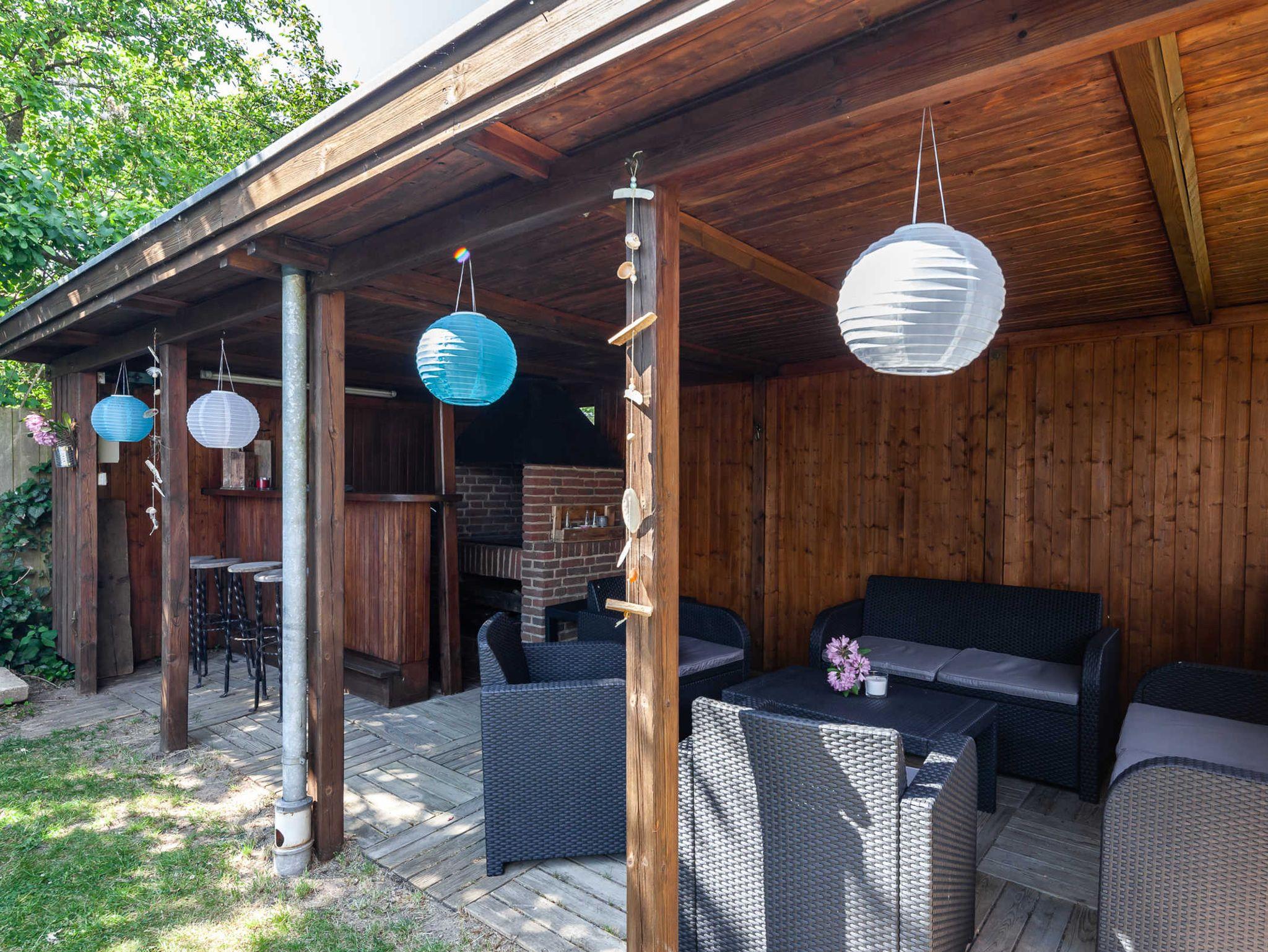 Der 2500 Quadratmeter große Garten ist komplett eingezäunt und liebevoll bepflanzt. Er bietet neben den beiden Sonnenterrassen einen großen Pool (8 x 4 Meter und 1,50 Meter tief), der für eine Erfrischung nach der Sauna oder an heißen Tagen einfach wundervoll ist. Der Poolbereich hat eine überdachte Poolbar und eine urige Grillecke für gesellige Barbecue Abende im Ferienhaus.