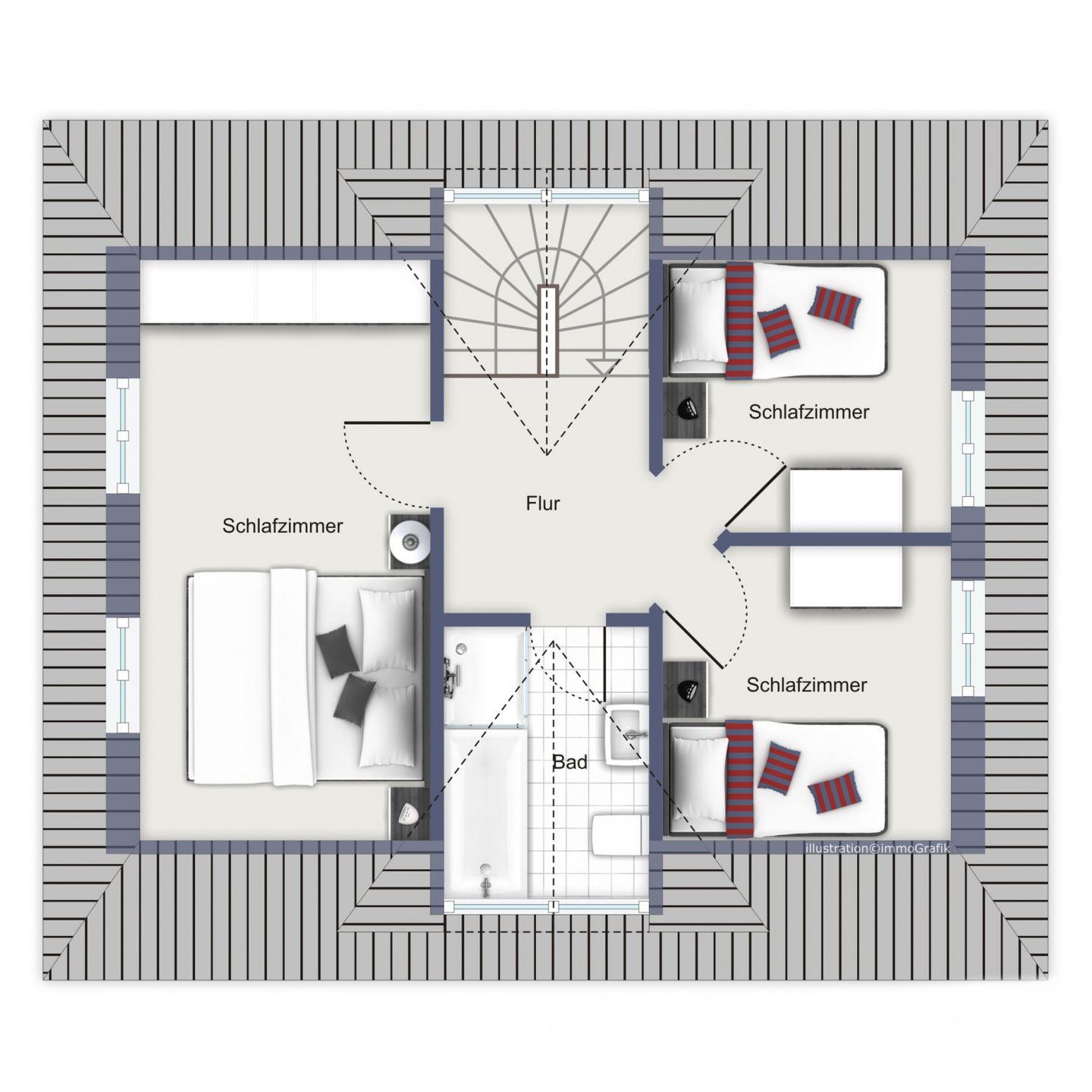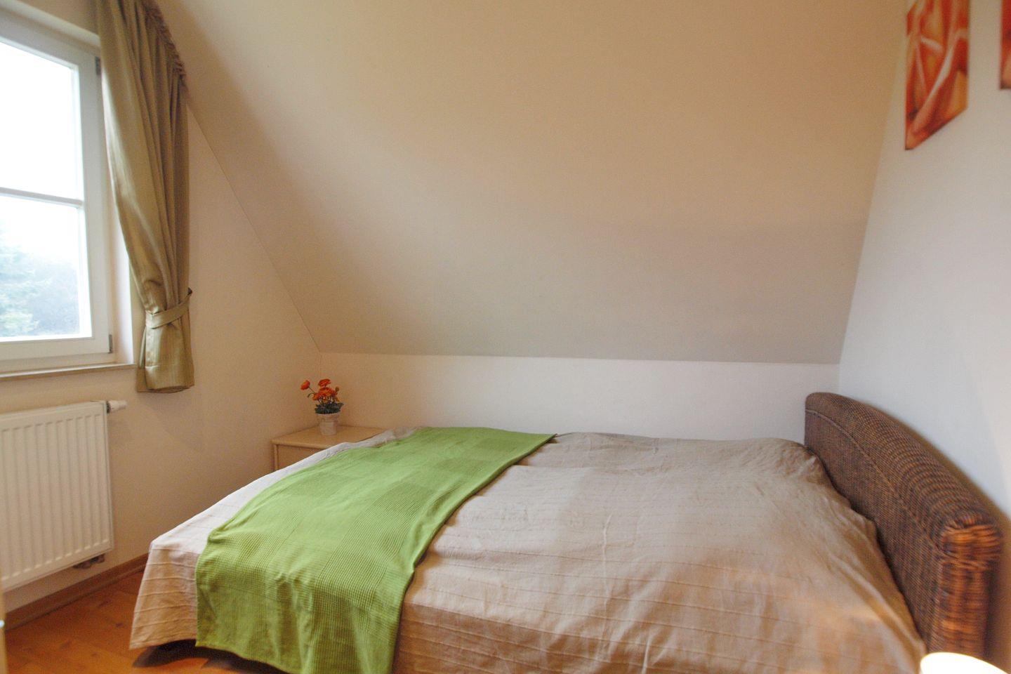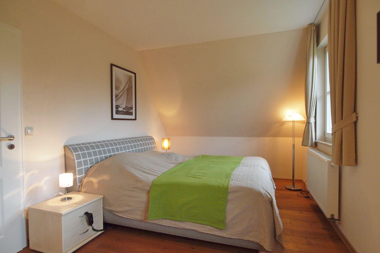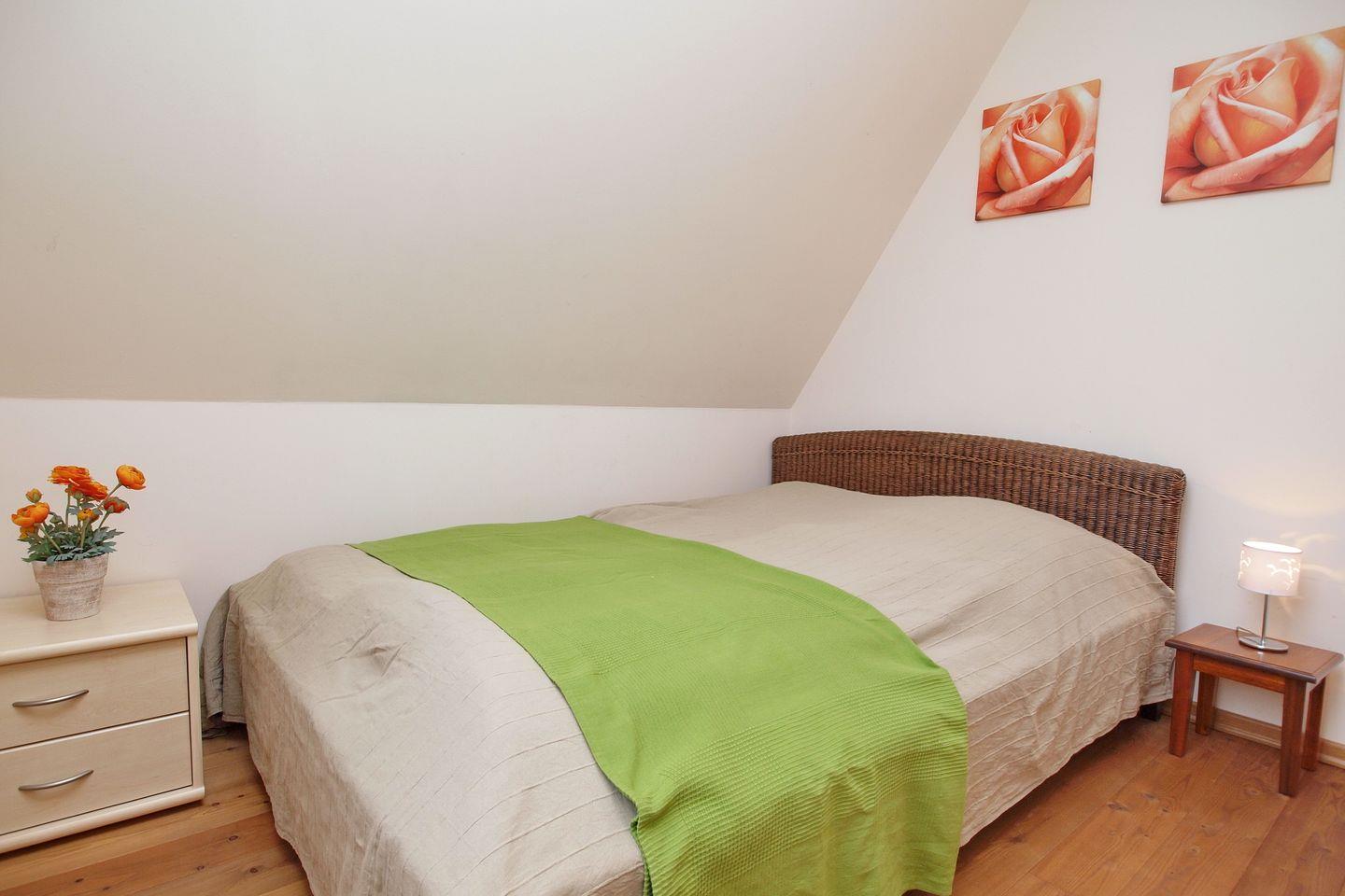 In der oberen Etage befinden sich 3 Schlafzimmer. Das erste Schlafzimmer ist mit einem komfortablen Boxspringbett (180 x 200 cm) und einem großen Kleiderschrank eingerichtet. Im zweiten Schlafzimmer erwartet dich ein Doppelbett (140 x 200 cm) zur Nachtruhe. Für dein Urlaubsgepäck ist auch hier ein Kleiderschrank vorhanden. Die ausziehbare Schlafcouch (170 x 200 cm) im dritten Schlafzimmer bietet 2 weiteren Personen einen gemütlichen Schlafplatz. Ein Kleiderschrank dient als Stauraum für deine Kleidung. Zum Verdunkeln kannst du in allen Schlafzimmern Vorhänge nutzen.