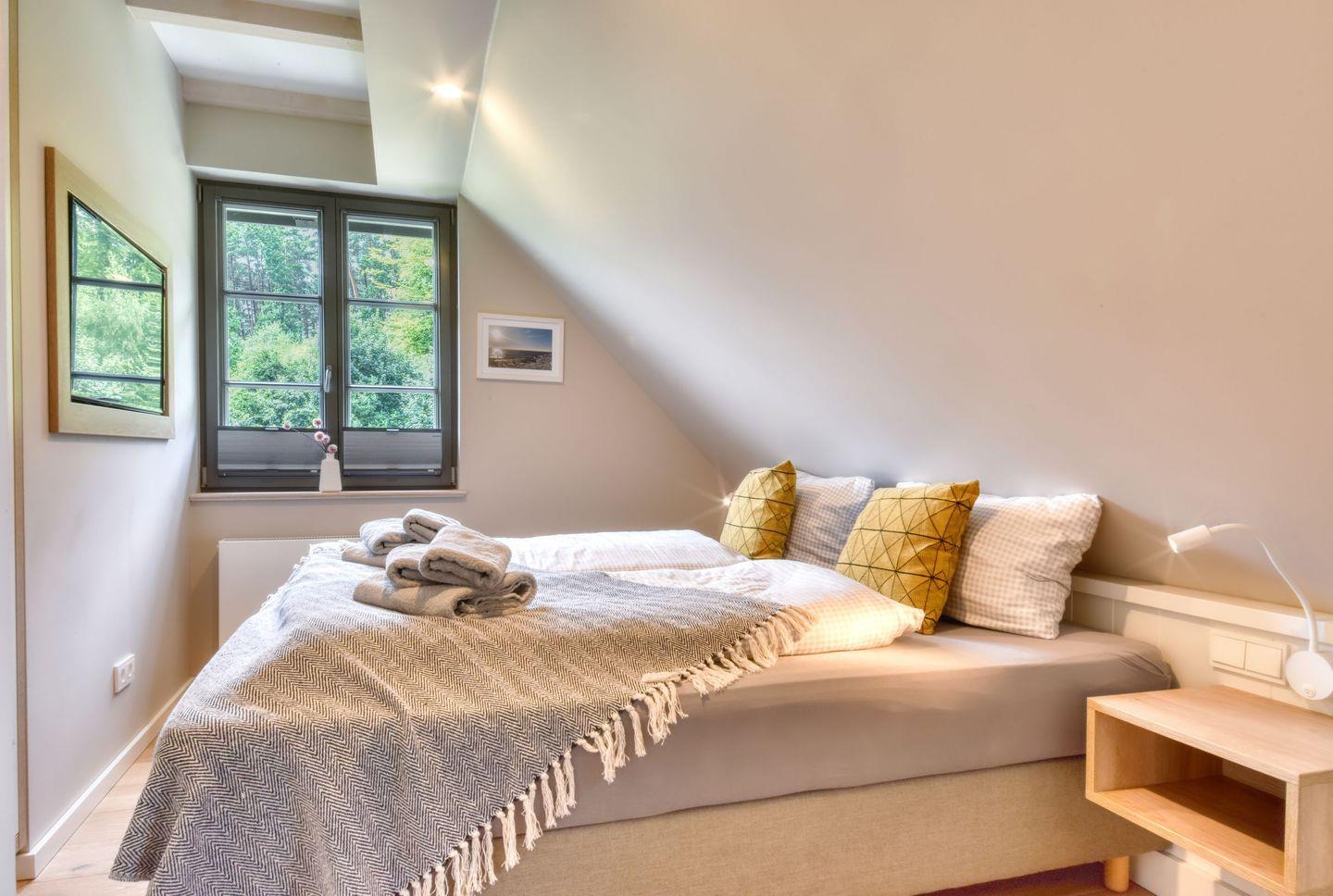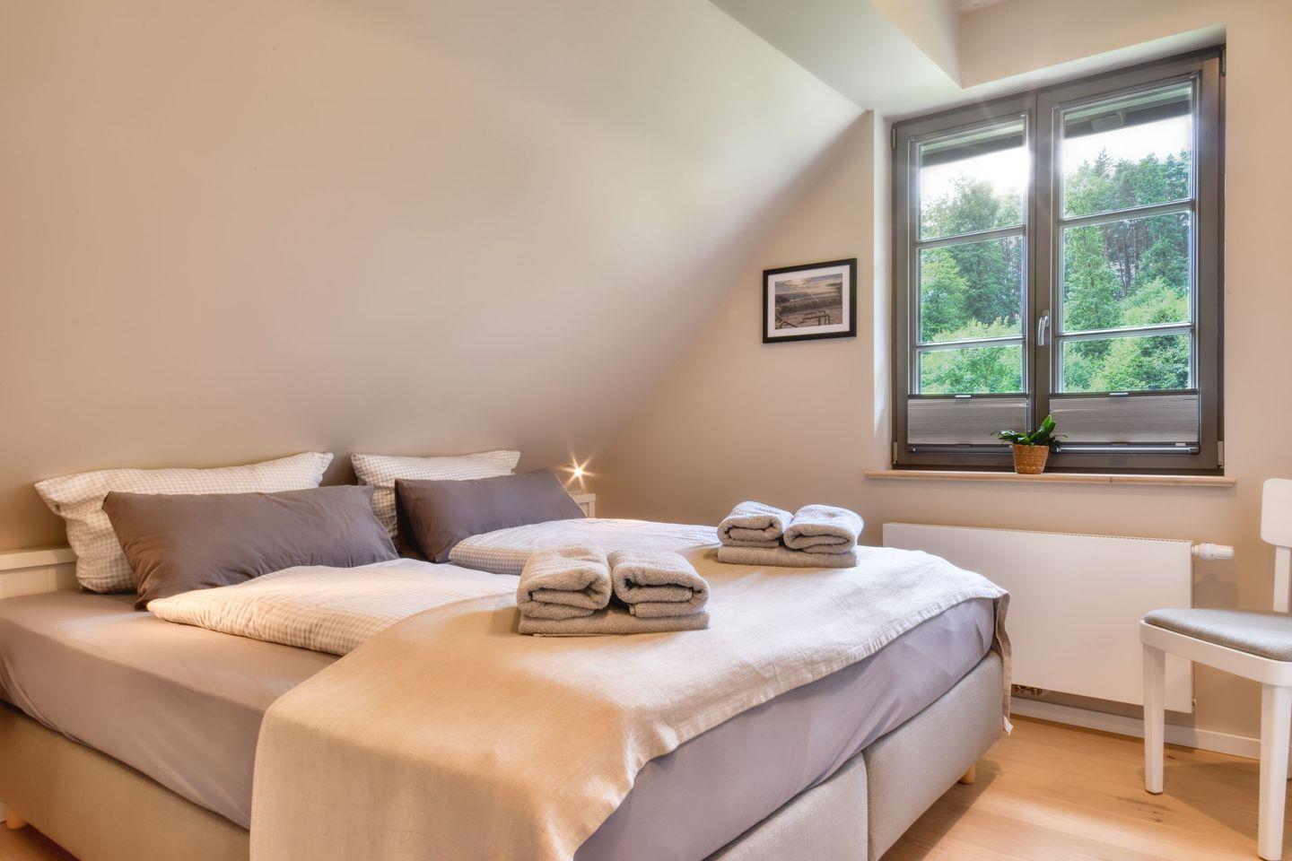 Zubereiten können Sie sie in der offenen und modernen Küche. Alle Geräte sind hochwertig. Ein komplettes Geschirr-Service befindet sich in den Schränken. Abwaschen muss hier zum Glück niemand. Es gibt einen Geschirrspüler. Weiter geht’s mit den beiden komfortablen Schlafzimmern. Zwei bequeme Boxspringdoppelbetten (1,80 x 2,00) versprechen erholsame Träume. Die Zimmer verfügen über je einen Kleiderschrank und ebenfalls einen Flat-TV. Zwei Bäder mit Dusche und WC sorgen für genügend Raum zum Frischmachen. Das Bad im EG ist zudem mit einer Finnischen Sauna ausgestattet. Bei Anreise liegen Handtücher für Sie bereit und die Betten sind bezogen.