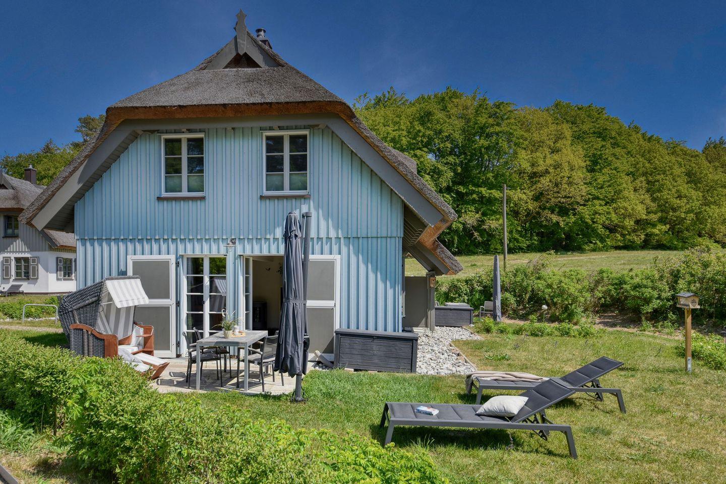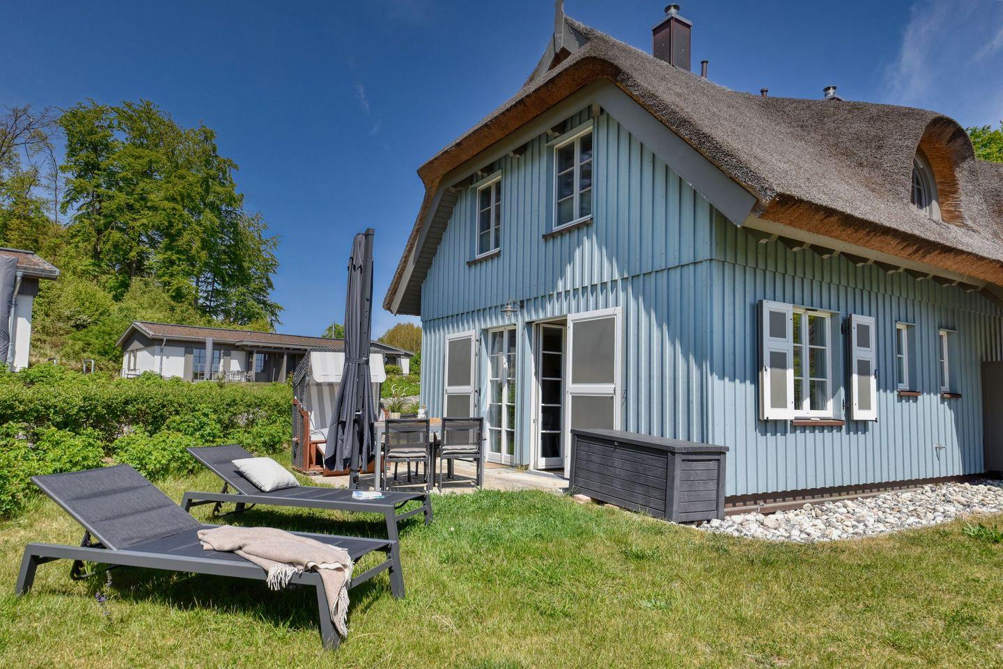 Exklusive, moderne Ferienhaushälfte mit Sauna, Garten und Ostseeblick im Feriendorf Klein Stresow, nur 600 m vom Strand entfernt.