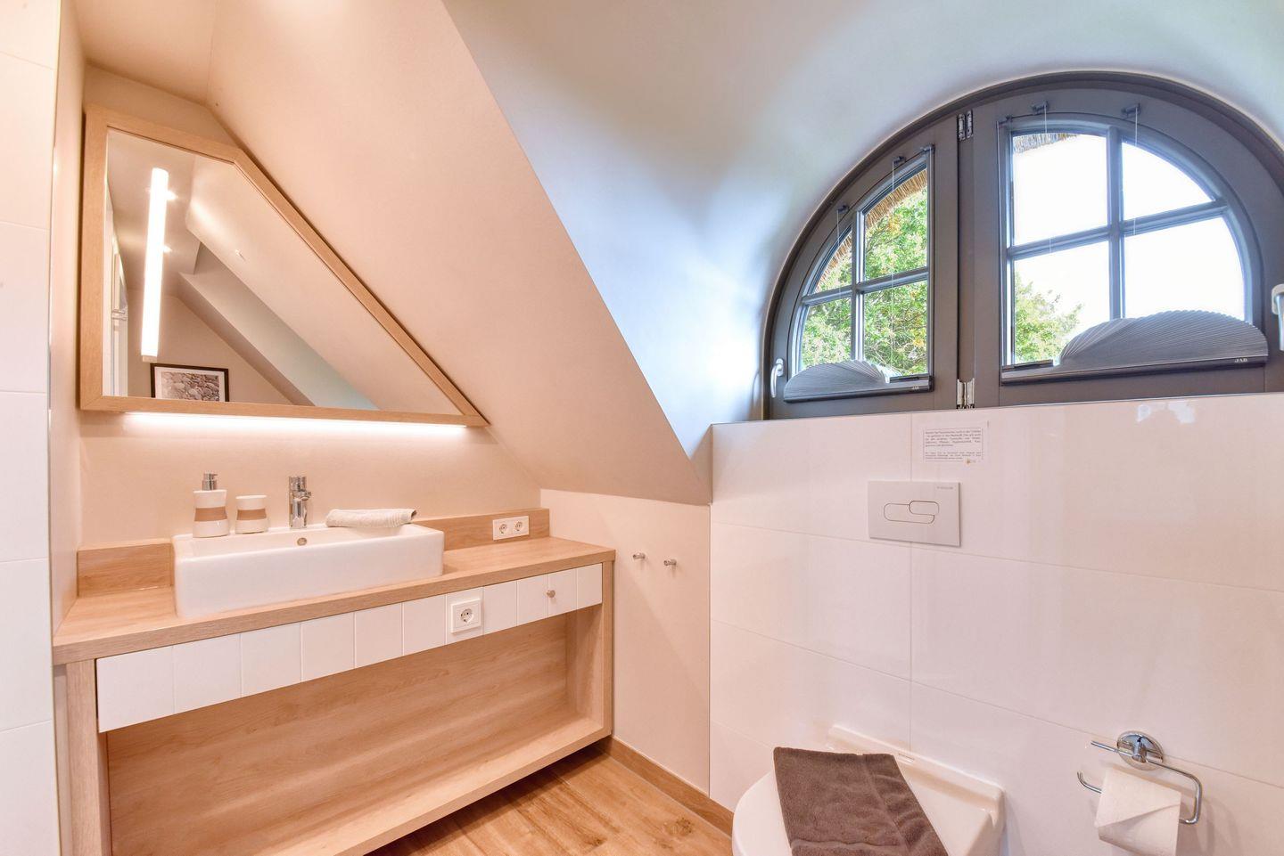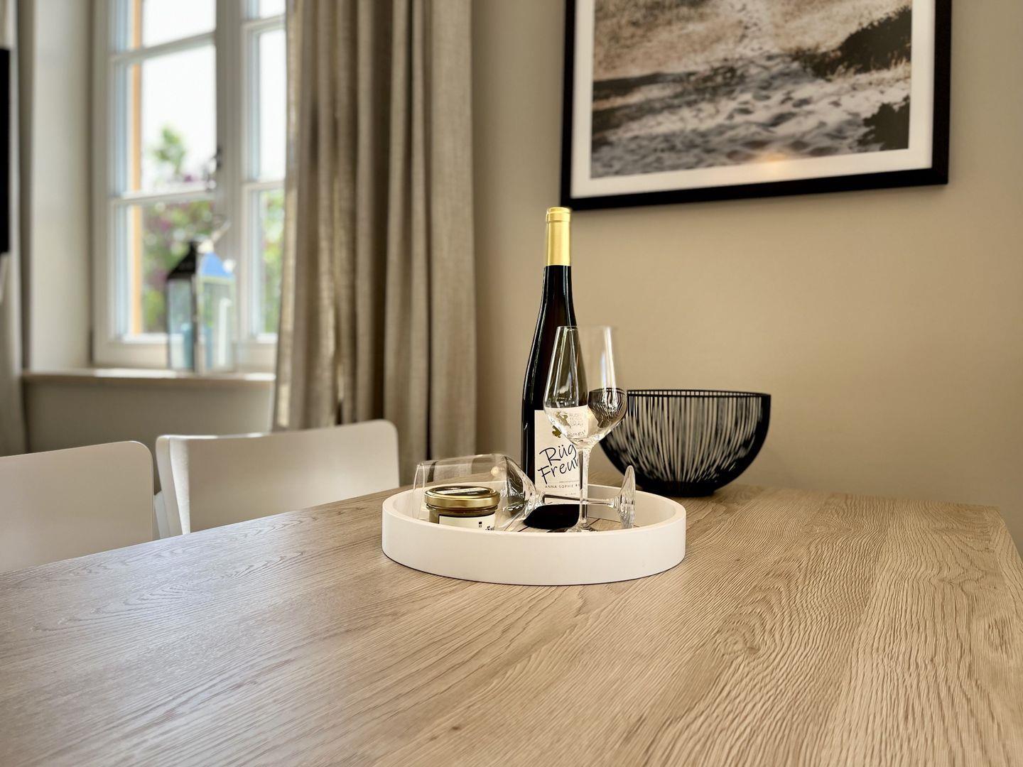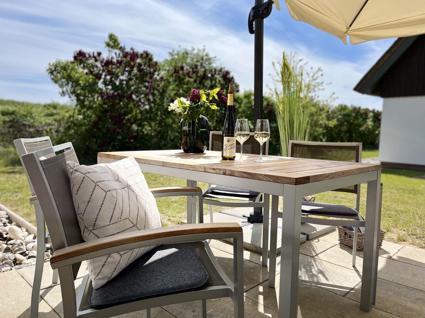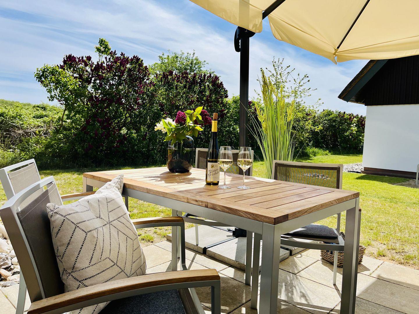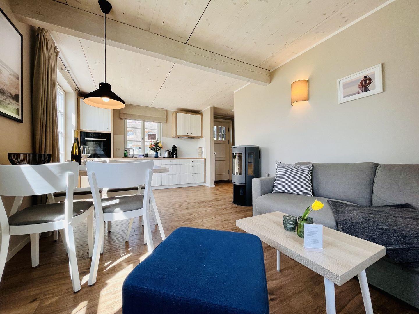 Im Feriendorf Klein Stresow werden Sie in Ihrer eigenen, stylischen Reethaushälfte mit Garten und Weitblick begrüßt . Hier beginnt der Urlaub für bis zu 4 Personen schon beim Eintreten. Wenn Sie es genau nehmen, schon beim Ankommen. Das Auto auf dem für Sie reservierten Stellplatz abgestellt, können Sie bei so viel sonniger Leichtigkeit erst einmal richtig durchatmen. Öffnen Sie die bodentiefen Fenster zu Ihrer Südterrasse weit und genießen Sie die frische Ostseebrise. Hier lässt es sich ausgezeichnet frühstücken. Das Innere Ihrer Ferienhaushälfte ist bis ins Detail aufs Feinste eingerichtet. Lampen, Möbel und Bilder sind nordisch nobel. Ein Sofa lädt zum Relaxen ein. Zur Ausstattung des Wohn-Esszimmers gehören ein Kamin und ein Flat-TV. Das WLAN können Sie kostenfrei nutzen. Ein schöner Esstisch mit vier Stühlen eignet sich bestens für die Mahlzeiten.