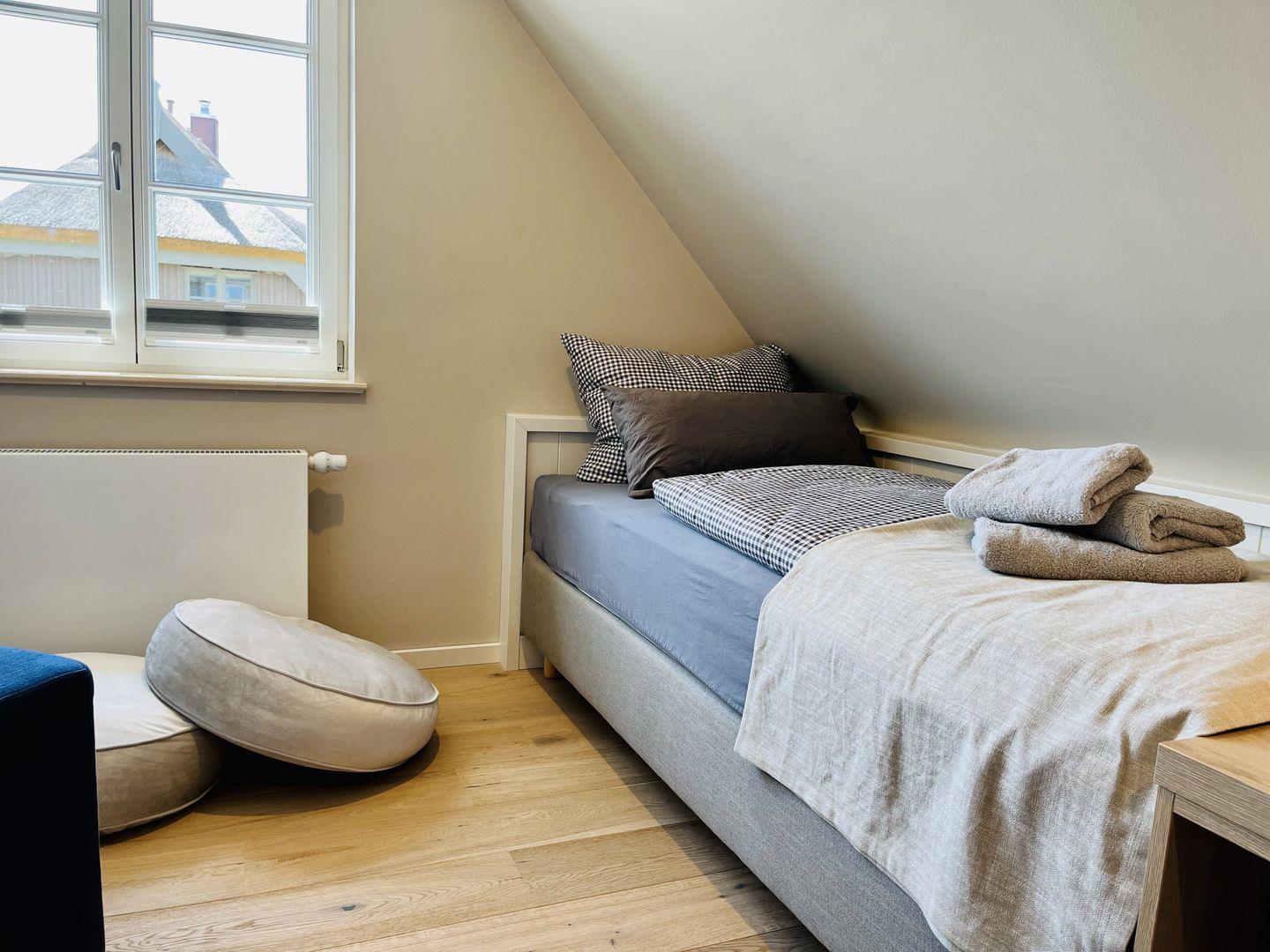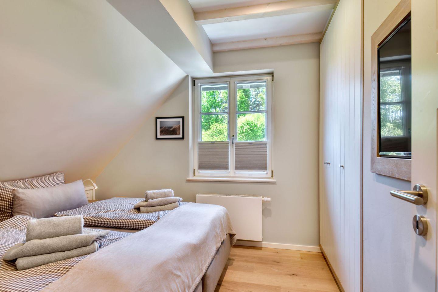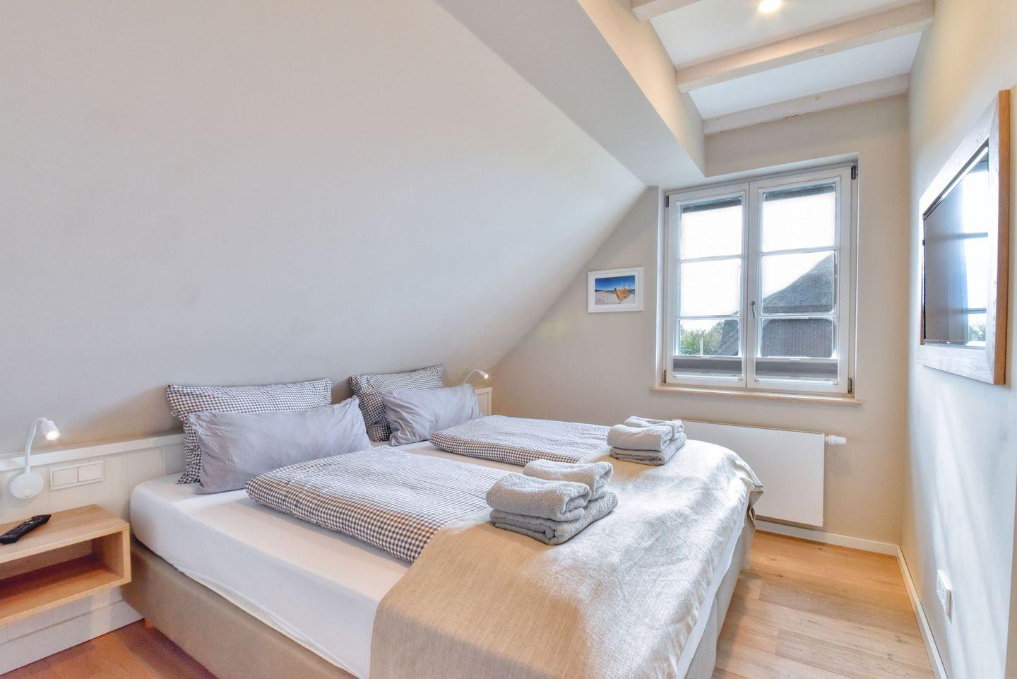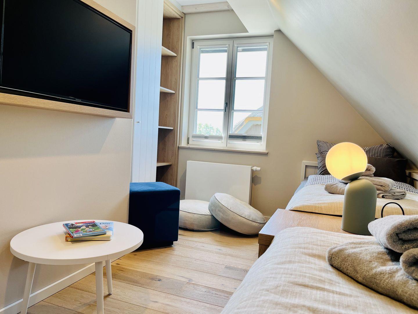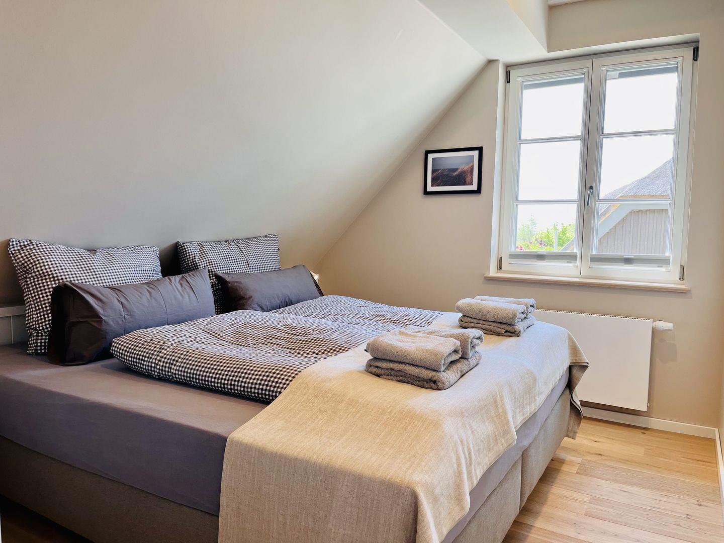 Zubereiten können Sie sie in der offenen und modernen Küche. Alle Geräte sind hochwertig. Ein komplettes Geschirr-Service befindet sich in den Schränken. Abwaschen muss hier zum Glück niemand. Es gibt einen Geschirrspüler. Weiter geht’s mit den beiden komfortablen Schlafzimmern. Ein bequemes Boxspringdoppelbett (180 x 200) und zwei Boxspringeinzelbetten (90 x 200) versprechen erholsame Träume. Die Zimmer verfügen über je einen Kleiderschrank und ebenfalls einen Flat-TV. Zwei Bäder mit Dusche und WC sorgen für genügend Raum zum Frischmachen. Das Bad im EG ist zudem mit einer Finnischen Sauna ausgestattet. Bei Anreise liegen Handtücher für Sie bereit und die Betten sind bezogen.