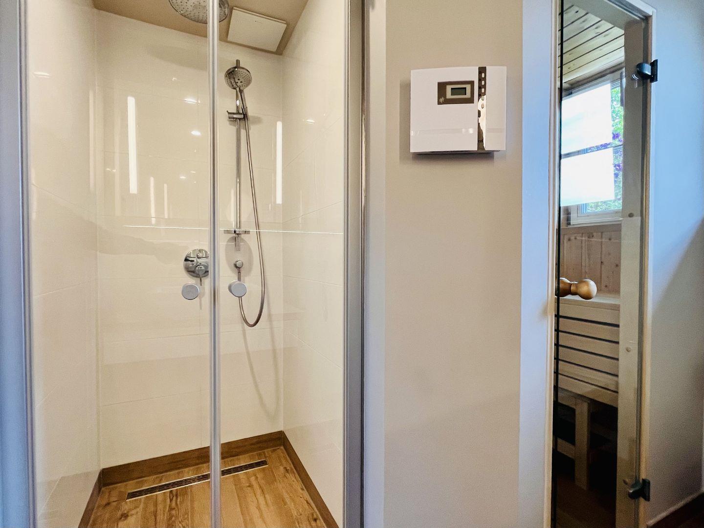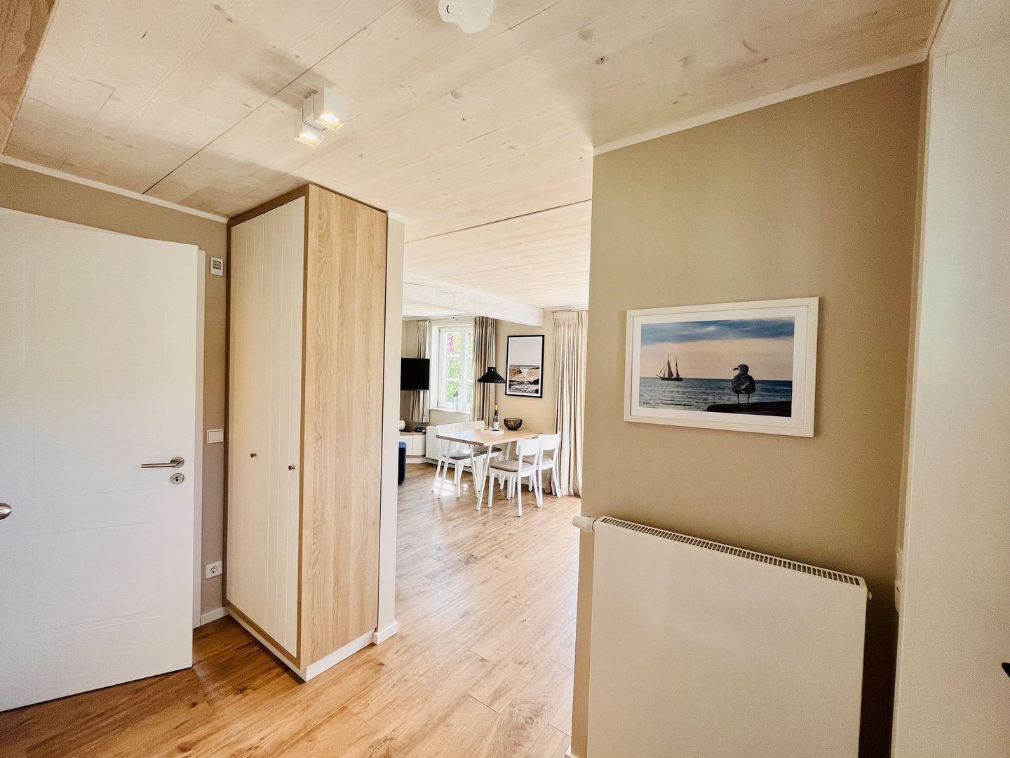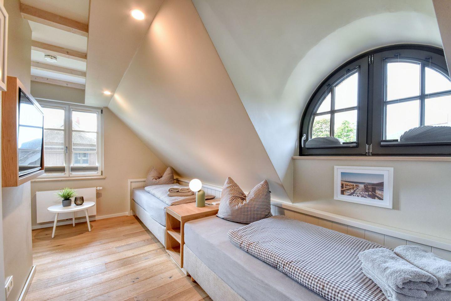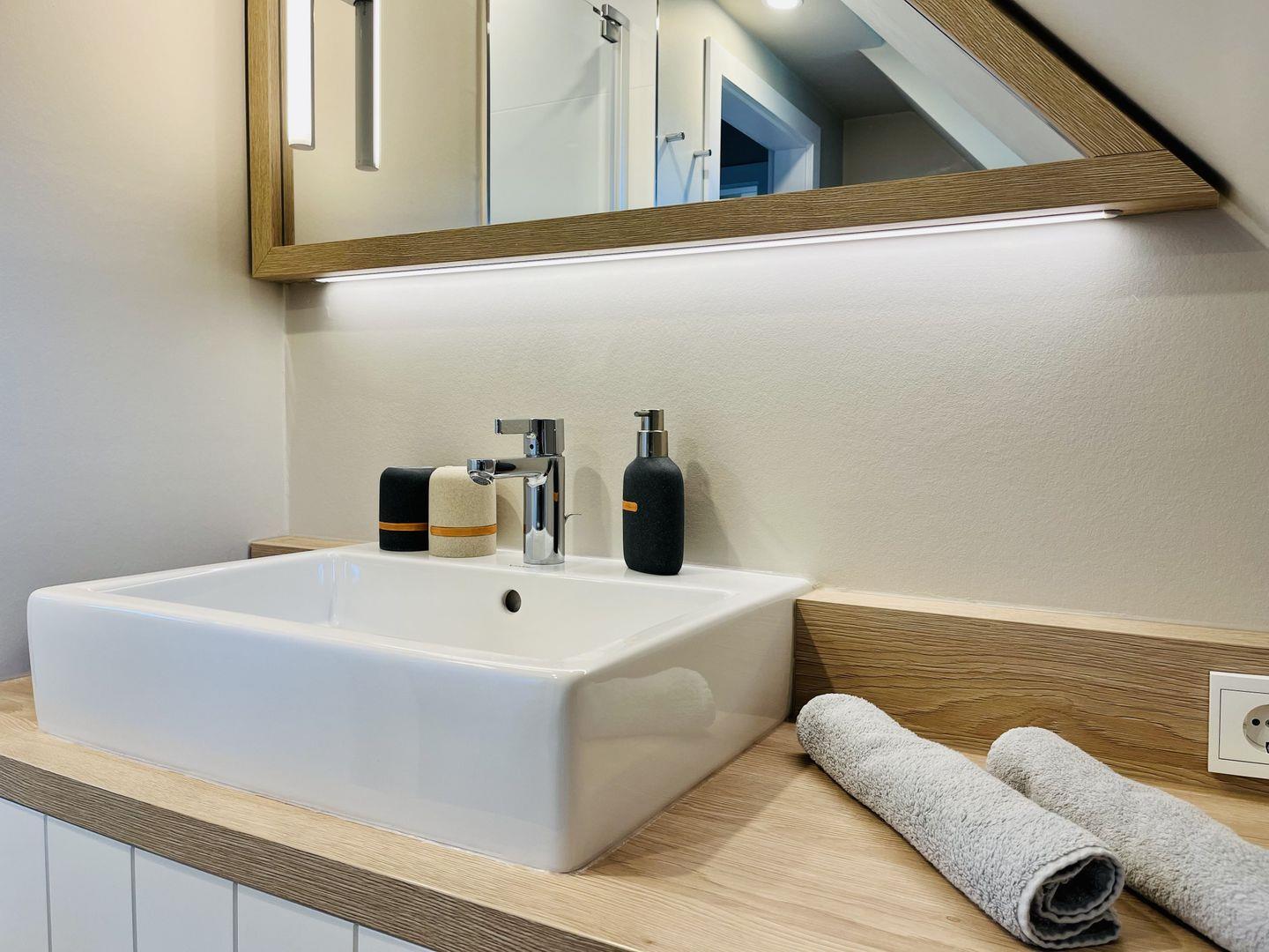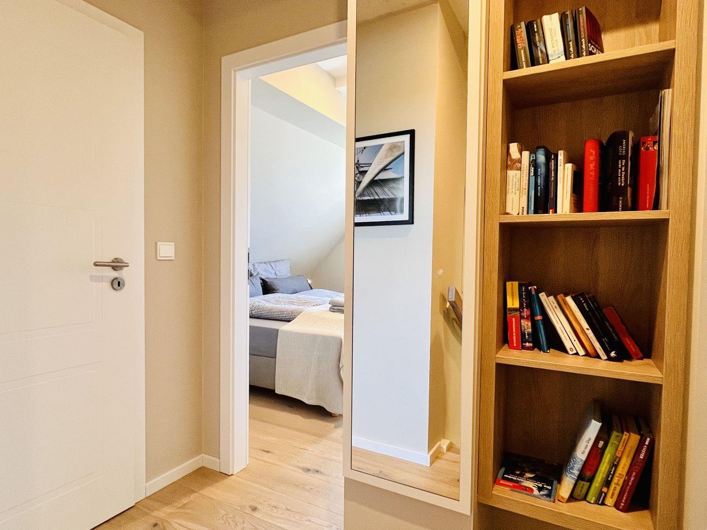 Zubereiten können Sie sie in der offenen und modernen Küche. Alle Geräte sind hochwertig. Ein komplettes Geschirr-Service befindet sich in den Schränken. Abwaschen muss hier zum Glück niemand. Es gibt einen Geschirrspüler. Weiter geht’s mit den beiden komfortablen Schlafzimmern. Ein bequemes Boxspringdoppelbett (180 x 200) und zwei Boxspringeinzelbetten (90 x 200) versprechen erholsame Träume. Die Zimmer verfügen über je einen Kleiderschrank und ebenfalls einen Flat-TV. Zwei Bäder mit Dusche und WC sorgen für genügend Raum zum Frischmachen. Das Bad im EG ist zudem mit einer Finnischen Sauna ausgestattet. Bei Anreise liegen Handtücher für Sie bereit und die Betten sind bezogen.