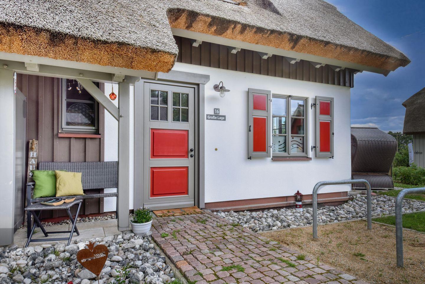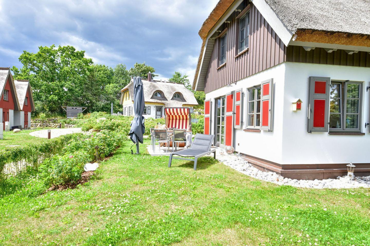 Modernes Ferienhaus "Große Lage" mit Reetdach, Garten und Meerblick im idyllischen Feriendorf Klein Stresow.