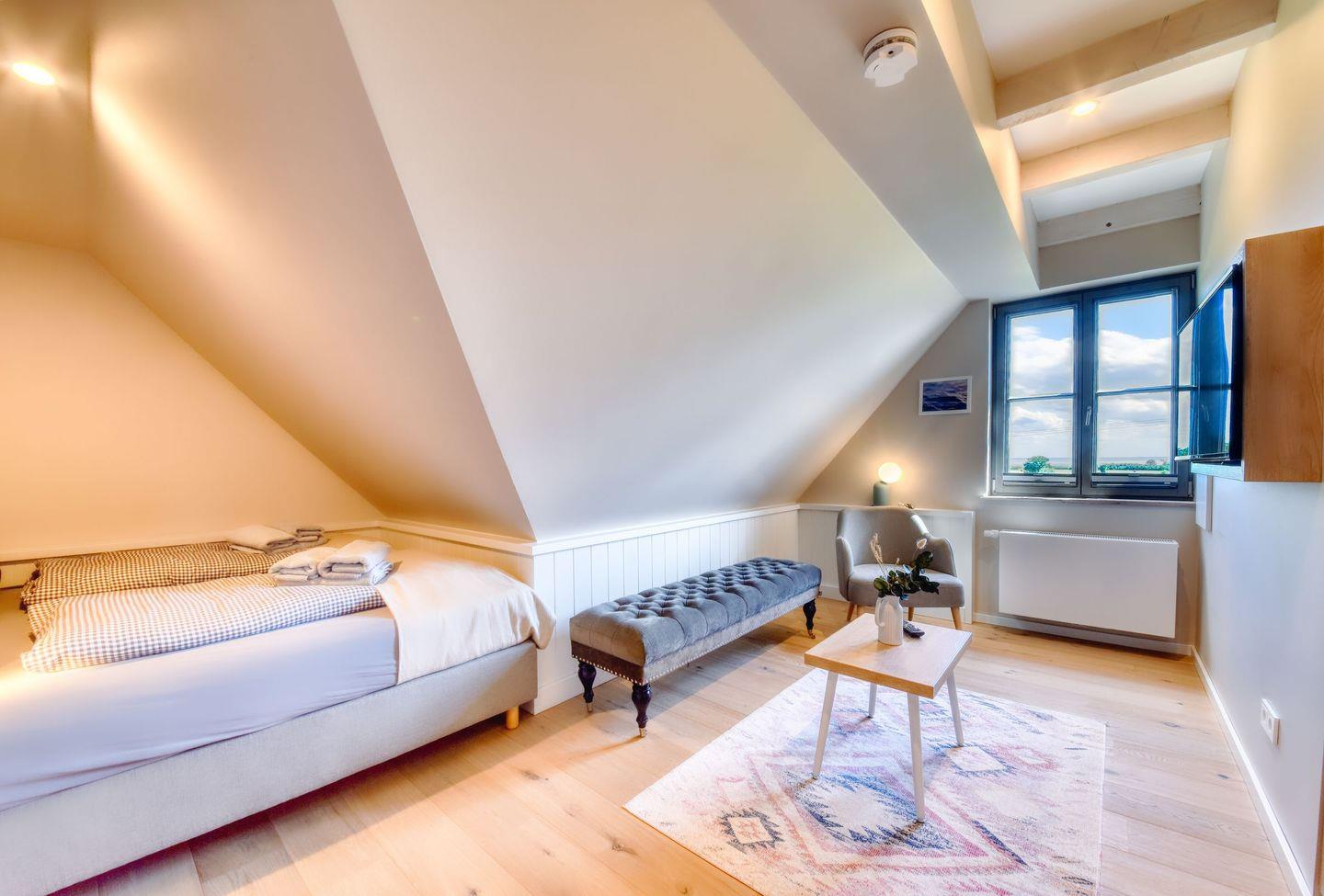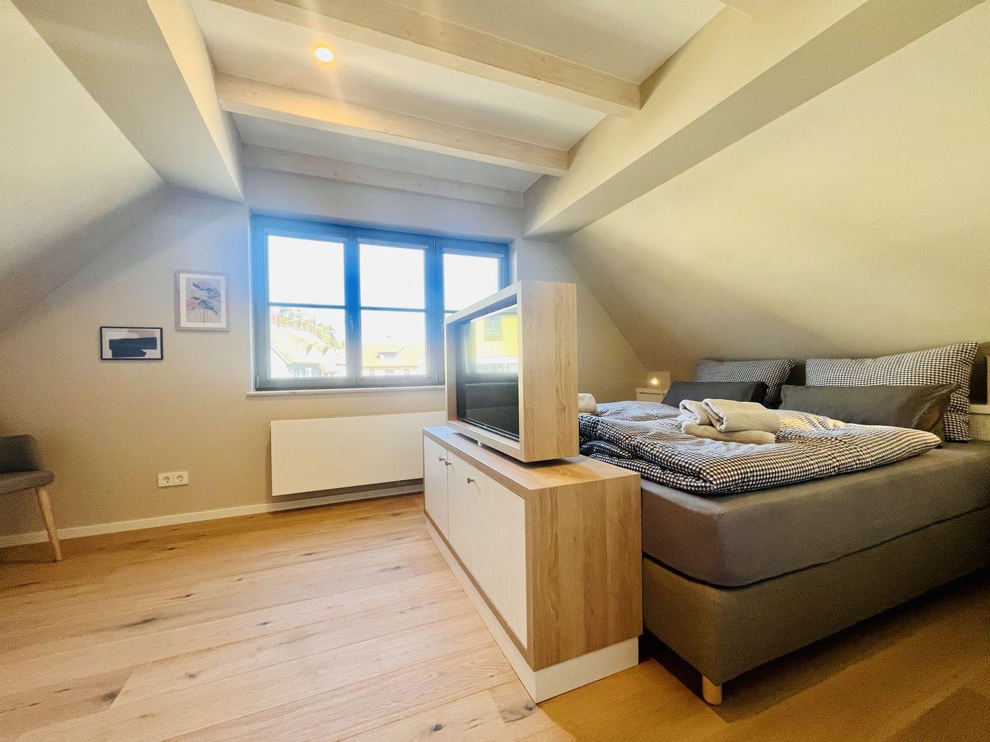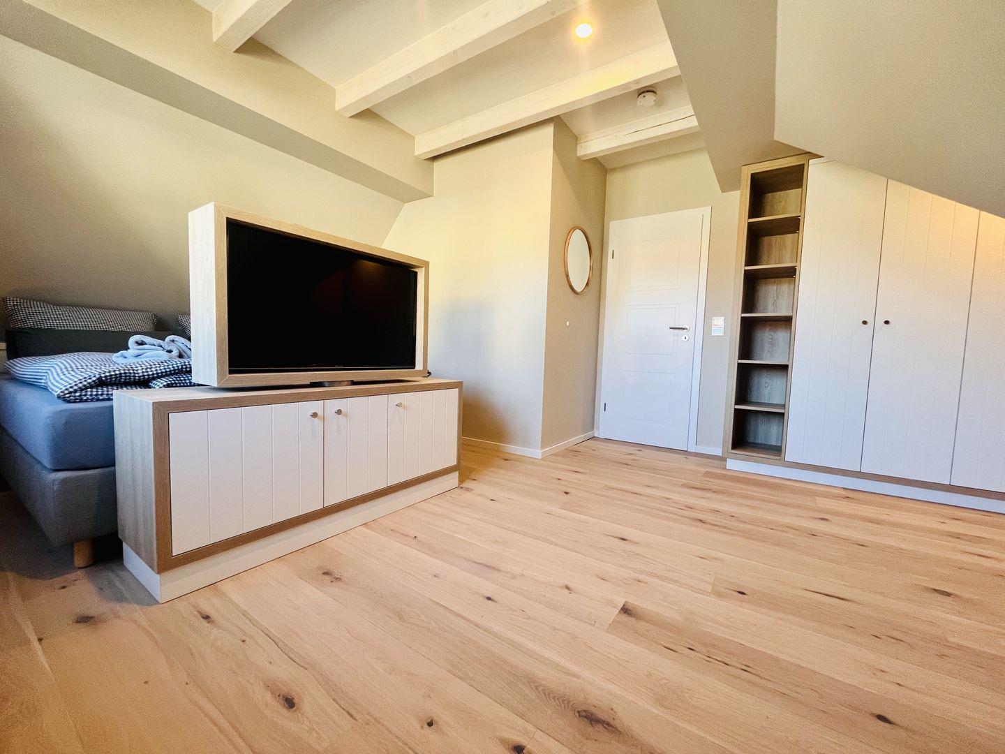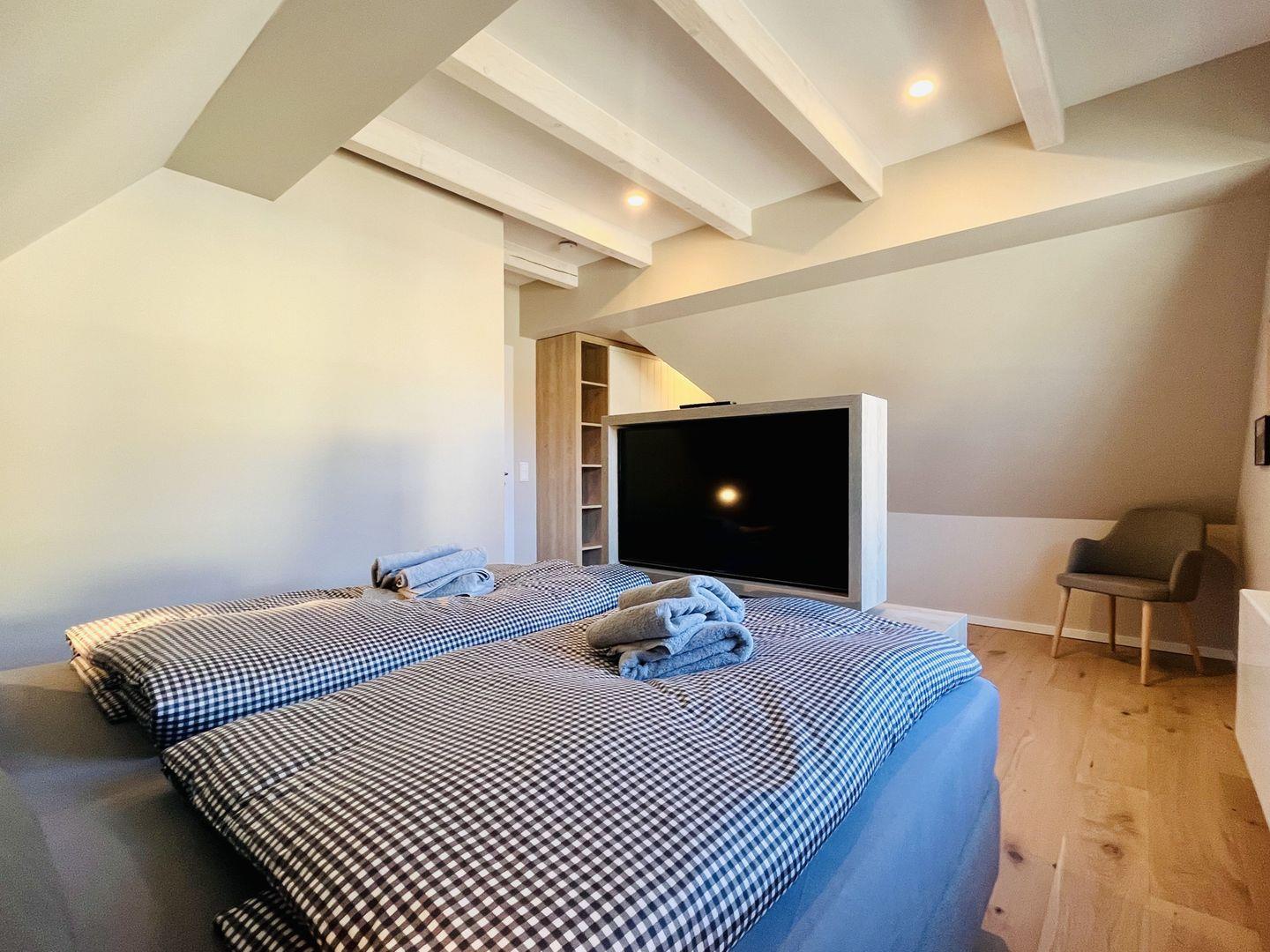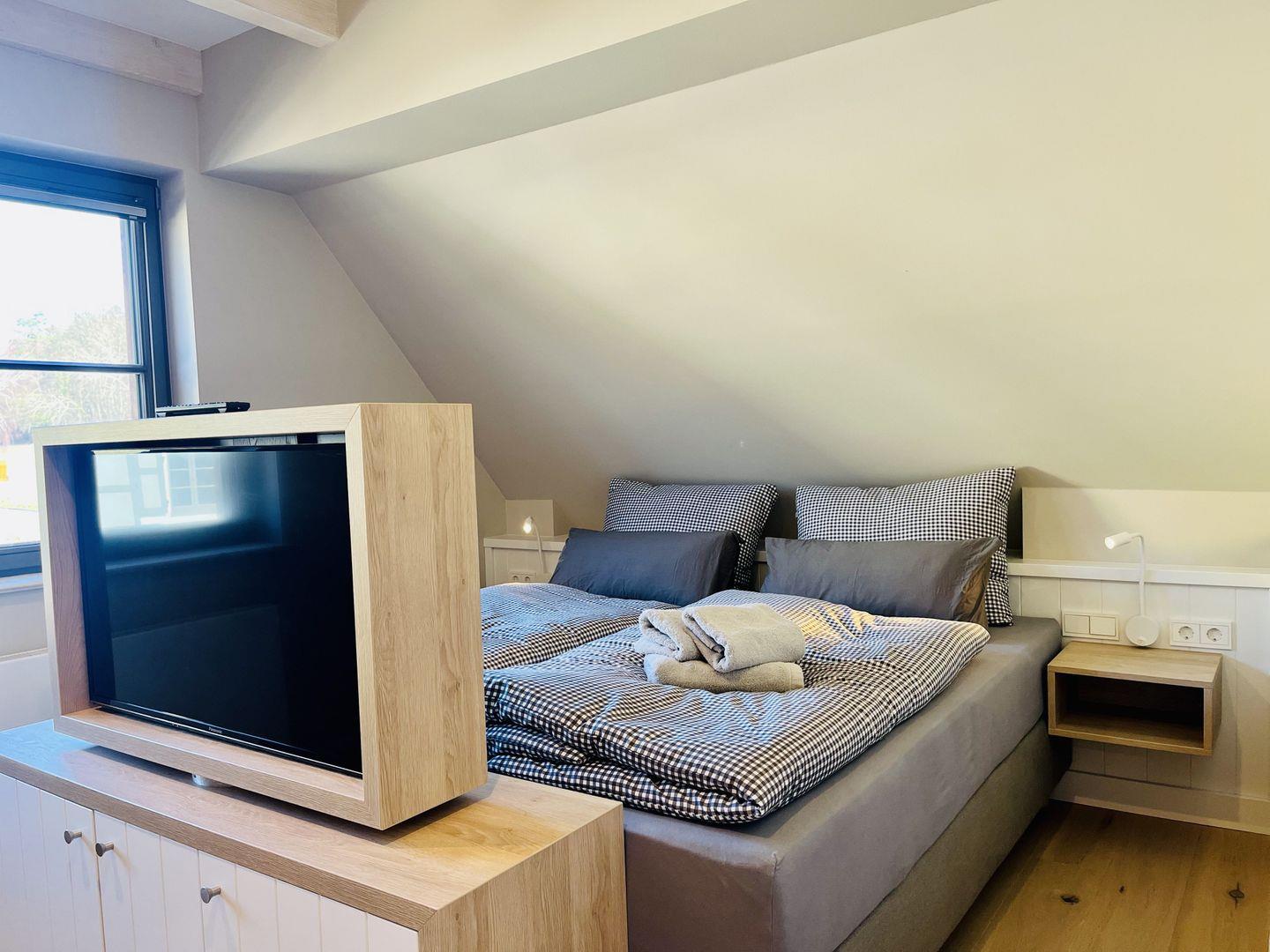 Zubereiten können Sie sie in der offenen und modernen Küche. Alle Geräte sind hochwertig. Ein komplettes Geschirr-Service befindet sich in den Schränken. Abwaschen muss hier zum Glück niemand. Es gibt einen Geschirrspüler. Weiter geht’s mit den beiden komfortablen Schlafzimmern. Zwei bequeme Boxspringdoppelbett (180 x 200) und zwei Boxspringeinzelbetten (90 x 200) versprechen erholsame Träume. Die Zimmer verfügen über je einen Kleiderschrank und ebenfalls einen Flat-TV. Zwei Bäder mit Dusche und WC sorgen für genügend Raum zum Frischmachen. Das Bad im EG ist zudem mit einer Finnischen Sauna ausgestattet. Bei Anreise liegen Handtücher für Sie bereit und die Betten sind bezogen.