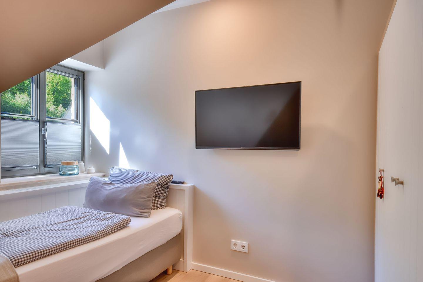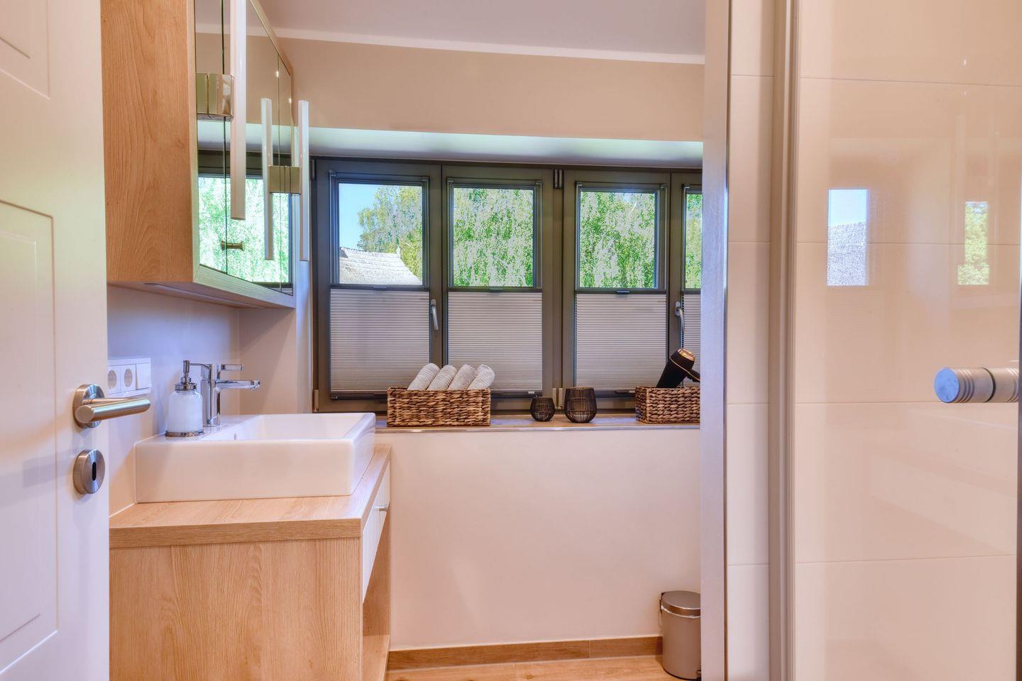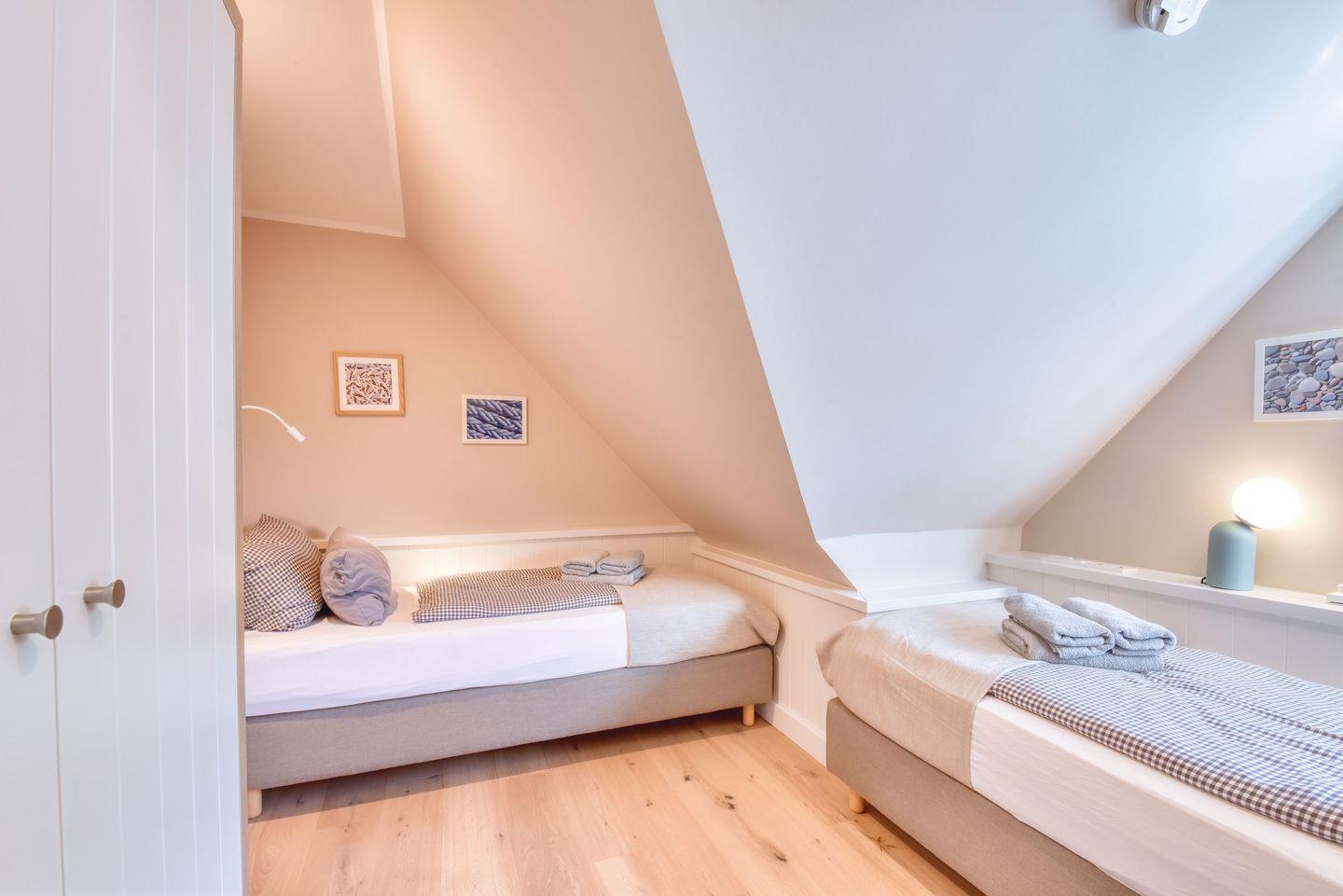 Zubereiten können Sie in der offenen und modernen Küche. Alle Geräte sind hochwertig. Ein komplettes Geschirr-Service befindet sich in den Schränken. Abwaschen muss hier zum Glück niemand. Es gibt einen Geschirrspüler. Weiter geht’s mit den beiden komfortablen Schlafzimmern. Ein bequemes Boxspringdoppelbett (180 x 200) und zwei Boxspringeinzelbetten (90 x 200) versprechen erholsame Träume. Die Zimmer verfügen über je einen Kleiderschrank und ebenfalls einen Flat-TV. Ein Bad mit Dusche und WC sorgen für genügend Raum zum Frischmachen. Bei Anreise liegen Handtücher für Sie bereit und die Betten sind bezogen.