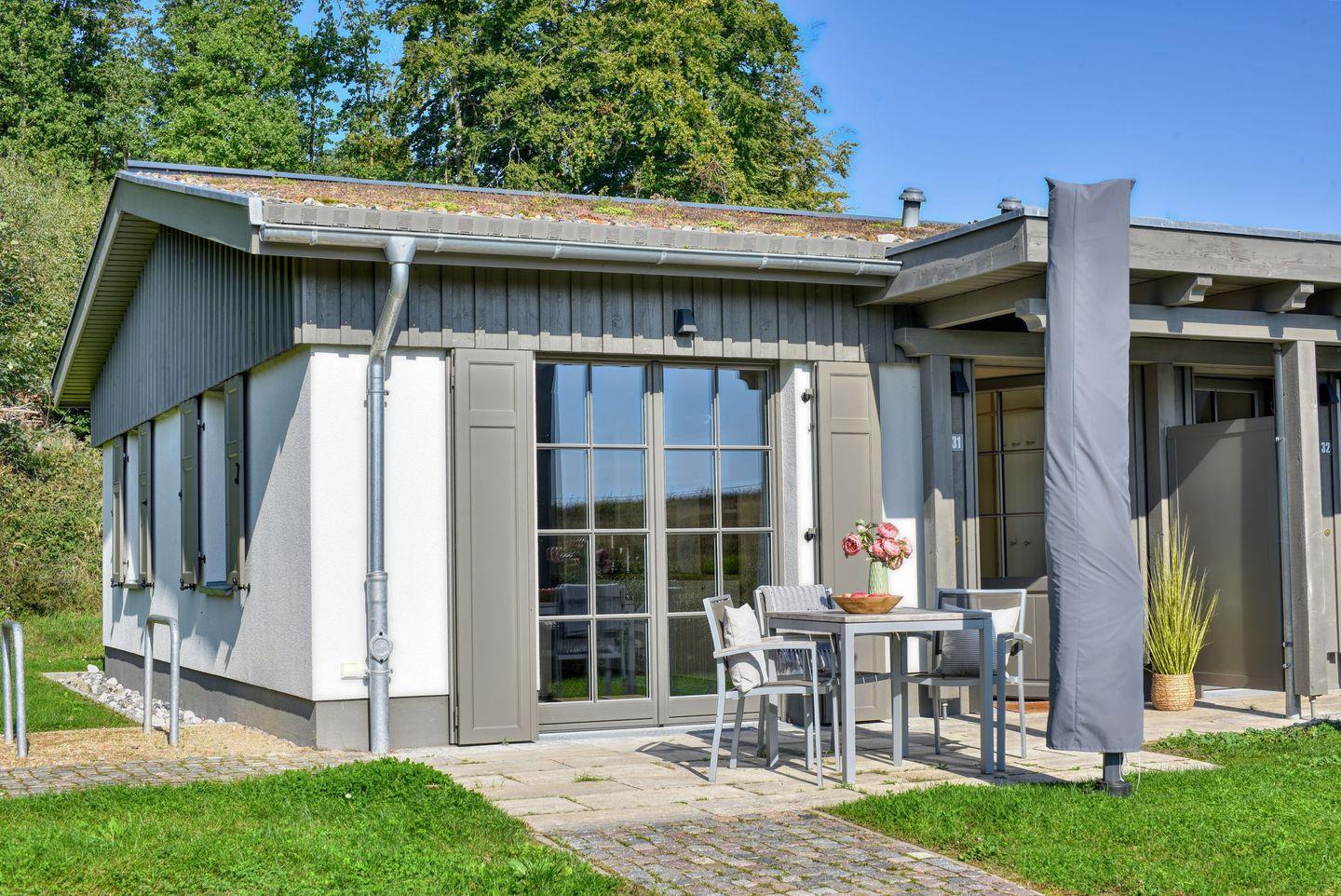 Modern eingerichtete Ferienhaushälfte mit Sauna, Garten und Ostseeblick im Feriendorf Klein Stresow.