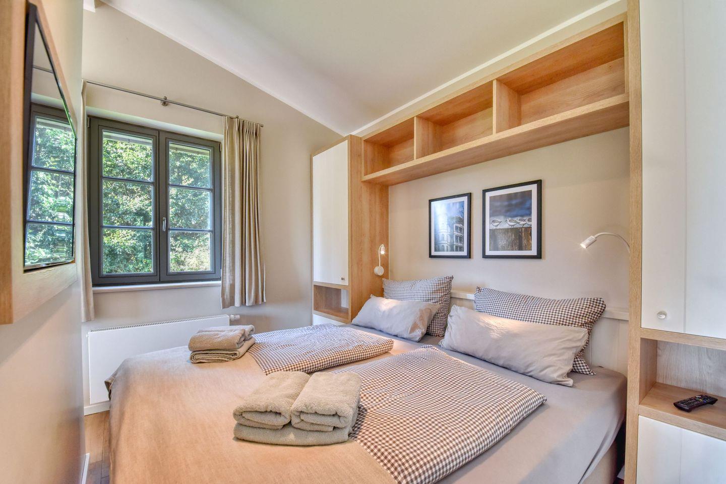 Zubereiten können Sie sie in der offenen und modernen Küche. Alle Geräte sind hochwertig. Ein komplettes Geschirr-Service befindet sich in den Schränken. Abwaschen muss hier zum Glück niemand. Es gibt einen Geschirrspüler. Weiter geht’s mit einem komfortablen Schlafzimmer. Ein bequemes Boxspringdoppelbett (180 x 200) verspricht erholsame erholsame Träume. Das Zimmer verfügt über einen Kleiderschrank und einen Flat-TV. Ein Bad mit Dusche und WC sorgt für genügend Raum zum Frischmachen. Das Bad ist zudem mit einer Finnischen Sauna ausgestattet. Bei Anreise liegen Handtücher für Sie bereit und die Betten sind bezogen..