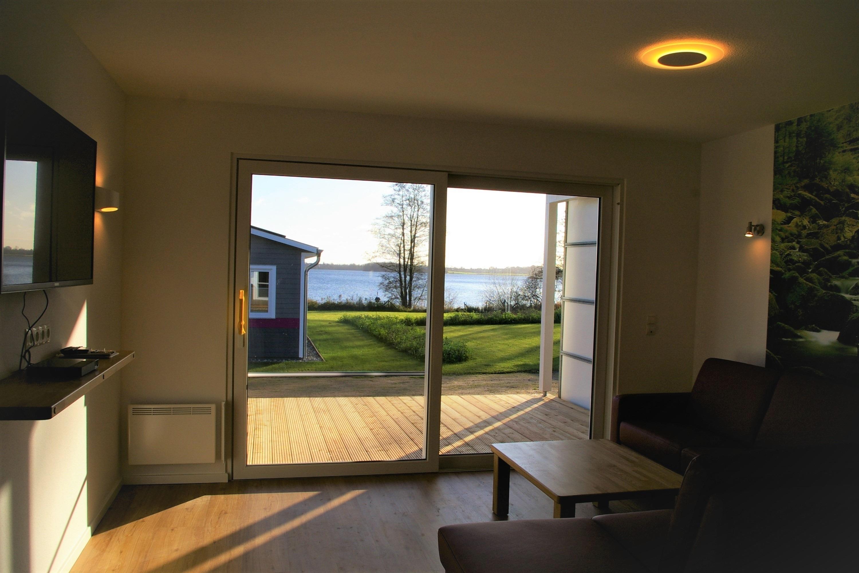 Entspannen Sie sich und genießen Sie von Terrasse und Wohnzimmer aus den Blick nach Süden über den Wittensee.