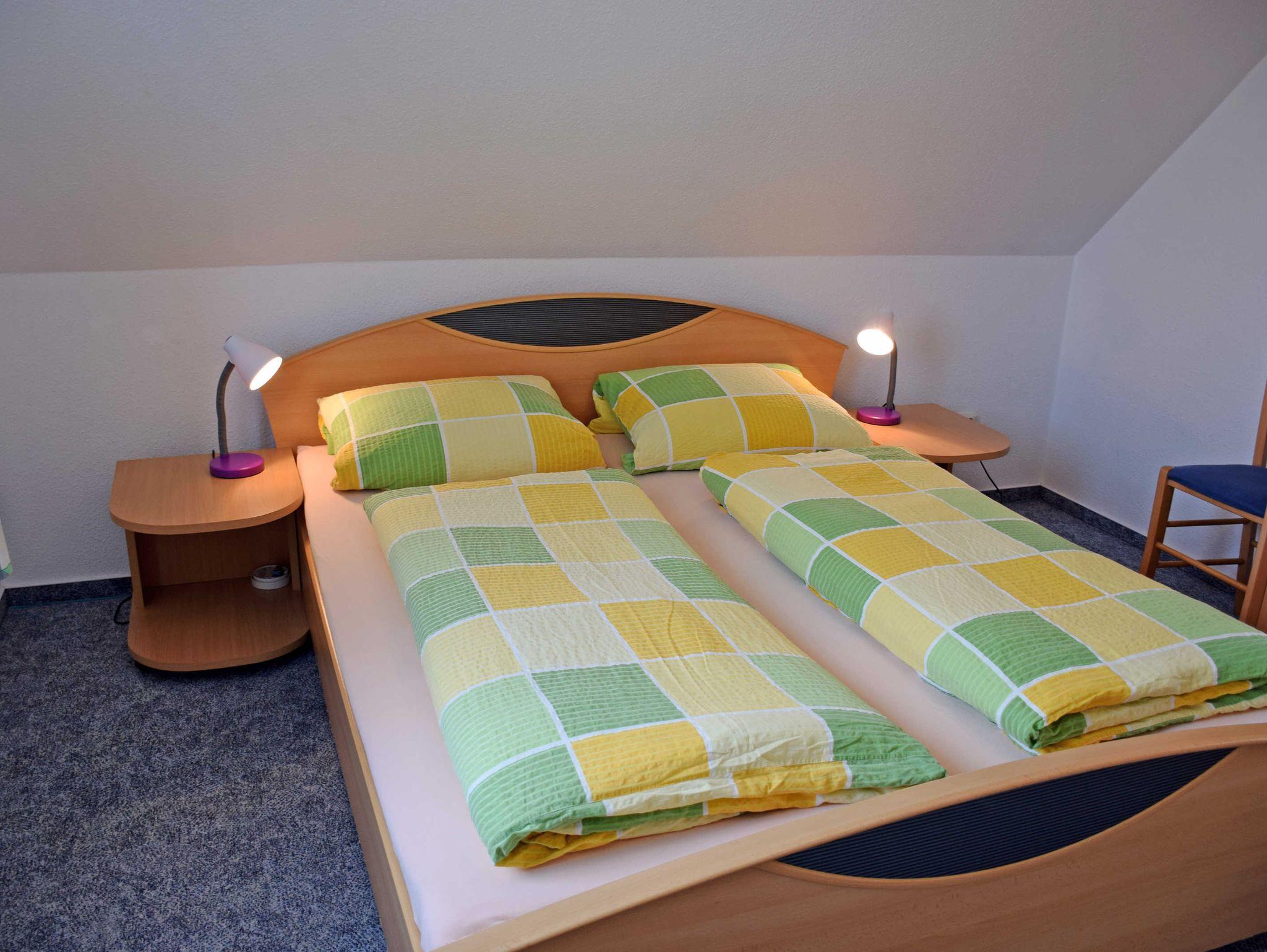 Das erste Schlafzimmer im Obergeschoss ist mit einem bequemen Doppelbett mit Nachttischen und Leselampen sowie einem Kleiderschrank ausgestattet. Das 2. Schlafzimmer verfügt über zwei Einzelbetten und einen Kleiderschrank.