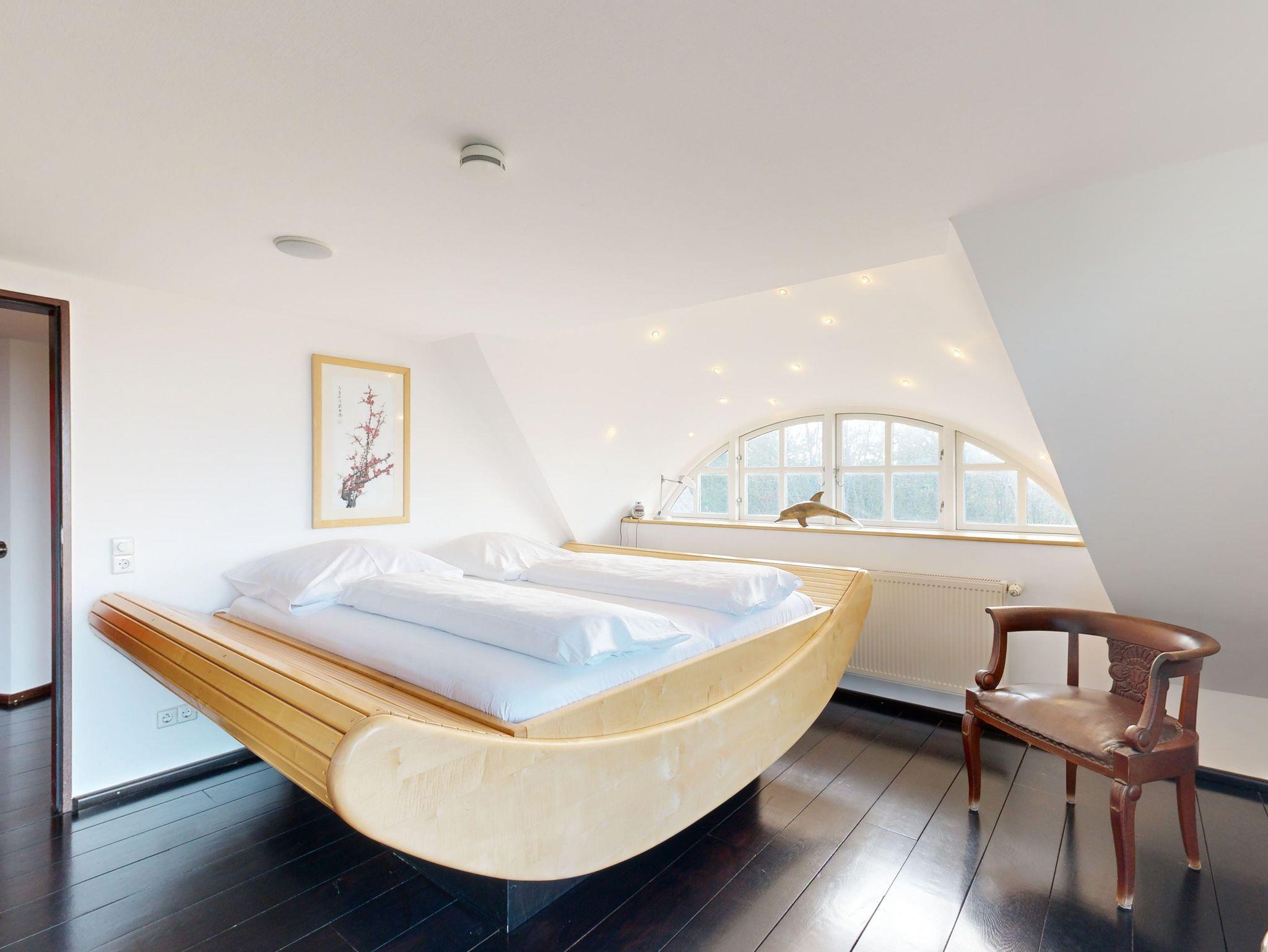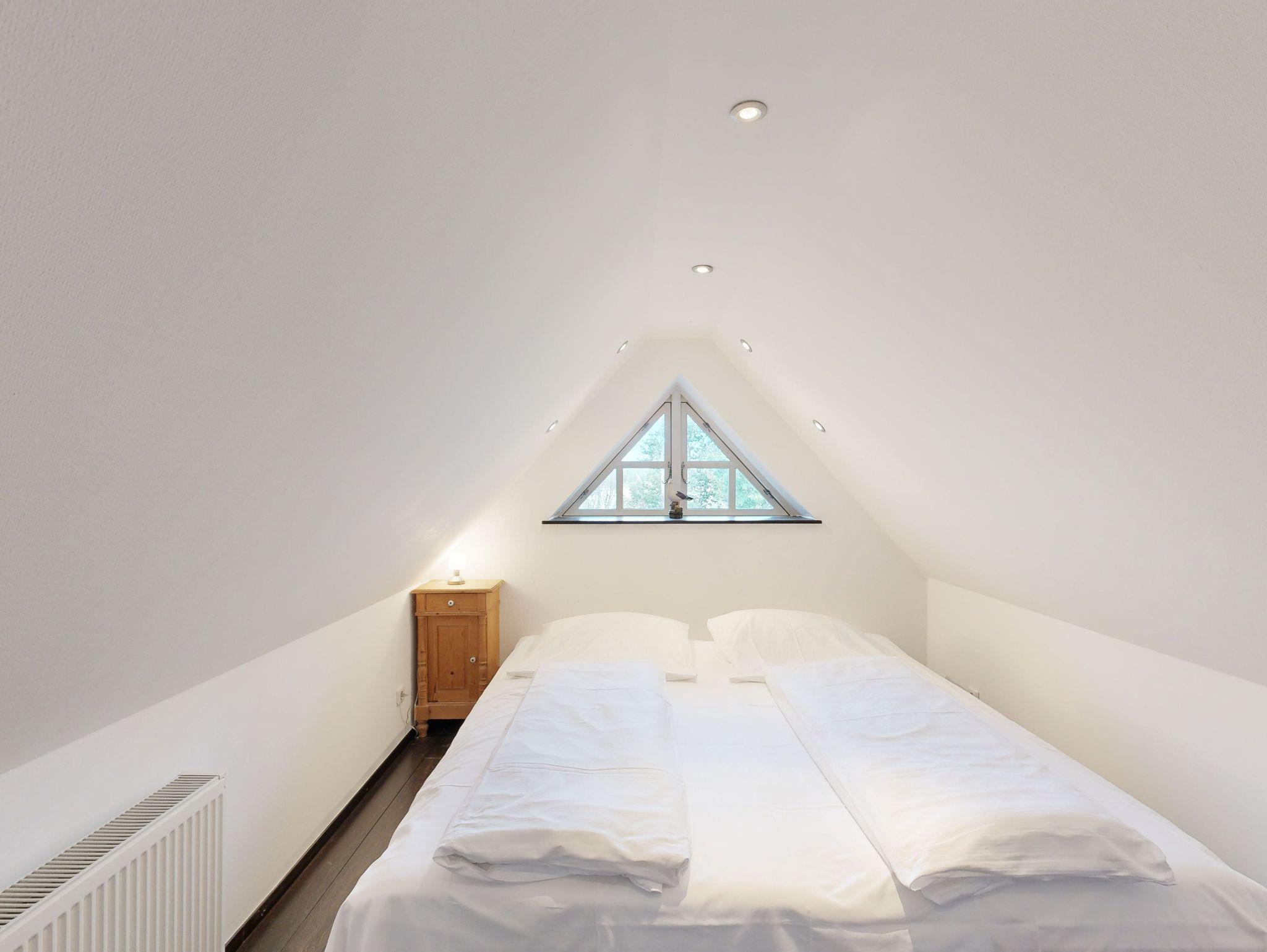 * 1 Schlafzimmer mit einem Doppelbett (an beiden Seiten steile Dachschrägen)