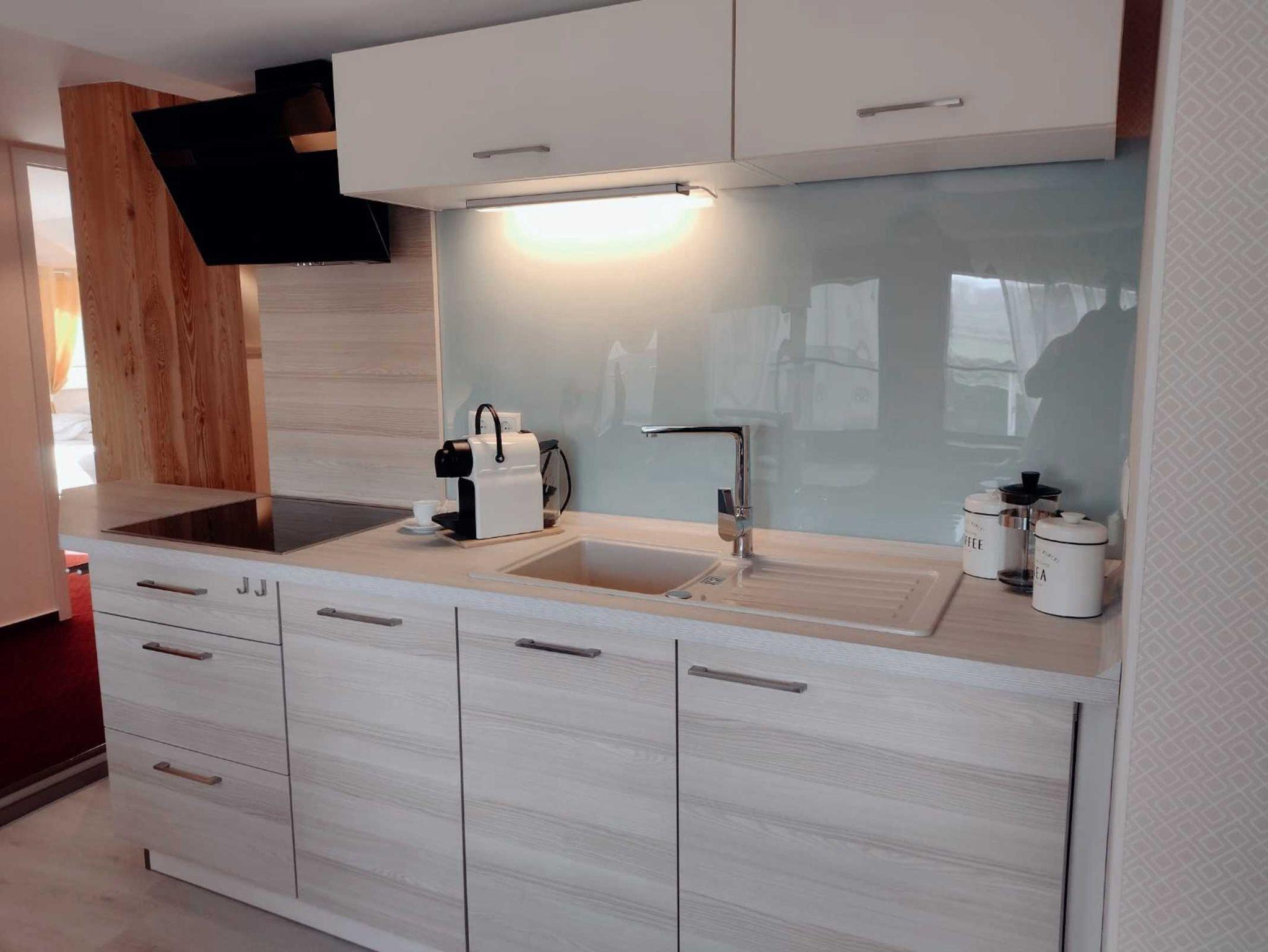 Unsere 2 Raum-WestStube (Himmelsrichtung, ca. 45 qm) ist ideal für den nächsten Familienurlaub. Für 2/1 Personen, getrennter Wohn-und Schlafbereich in hellen und gemütlichen Farben, Einbauküche mit Geschirrspüler/Cerankochfeld und ein kleines Bad mit DU/WC gehören dazu.
