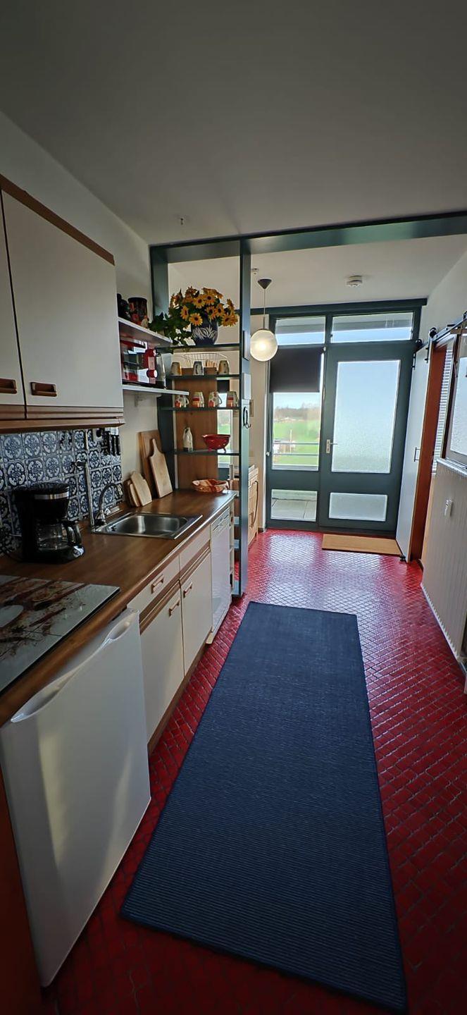 Gegenüber die offene Küche als Einbauküche mit Herd, Kochfeld, neuem Kühlschrank, neuer Spülmaschine, etc.