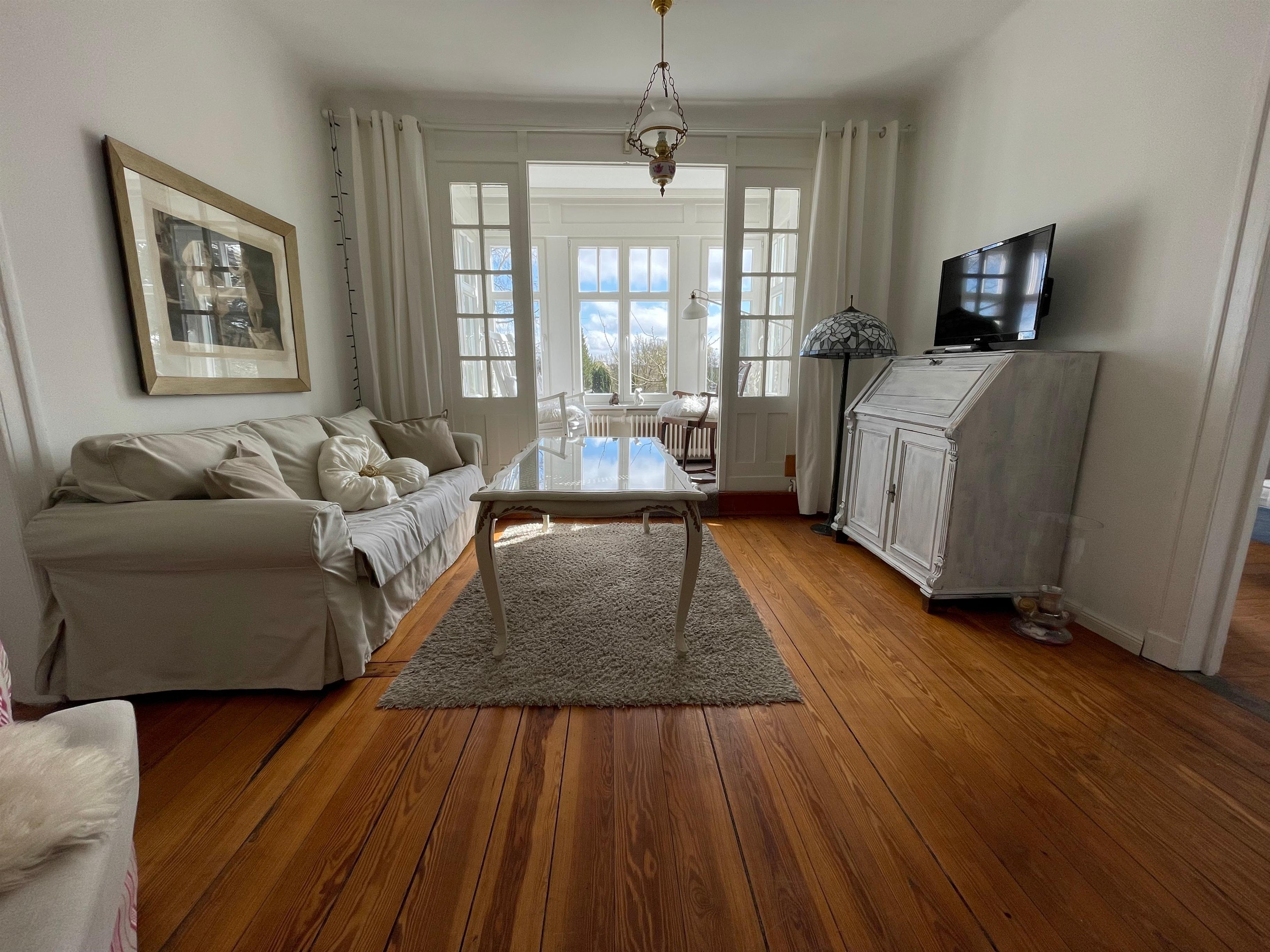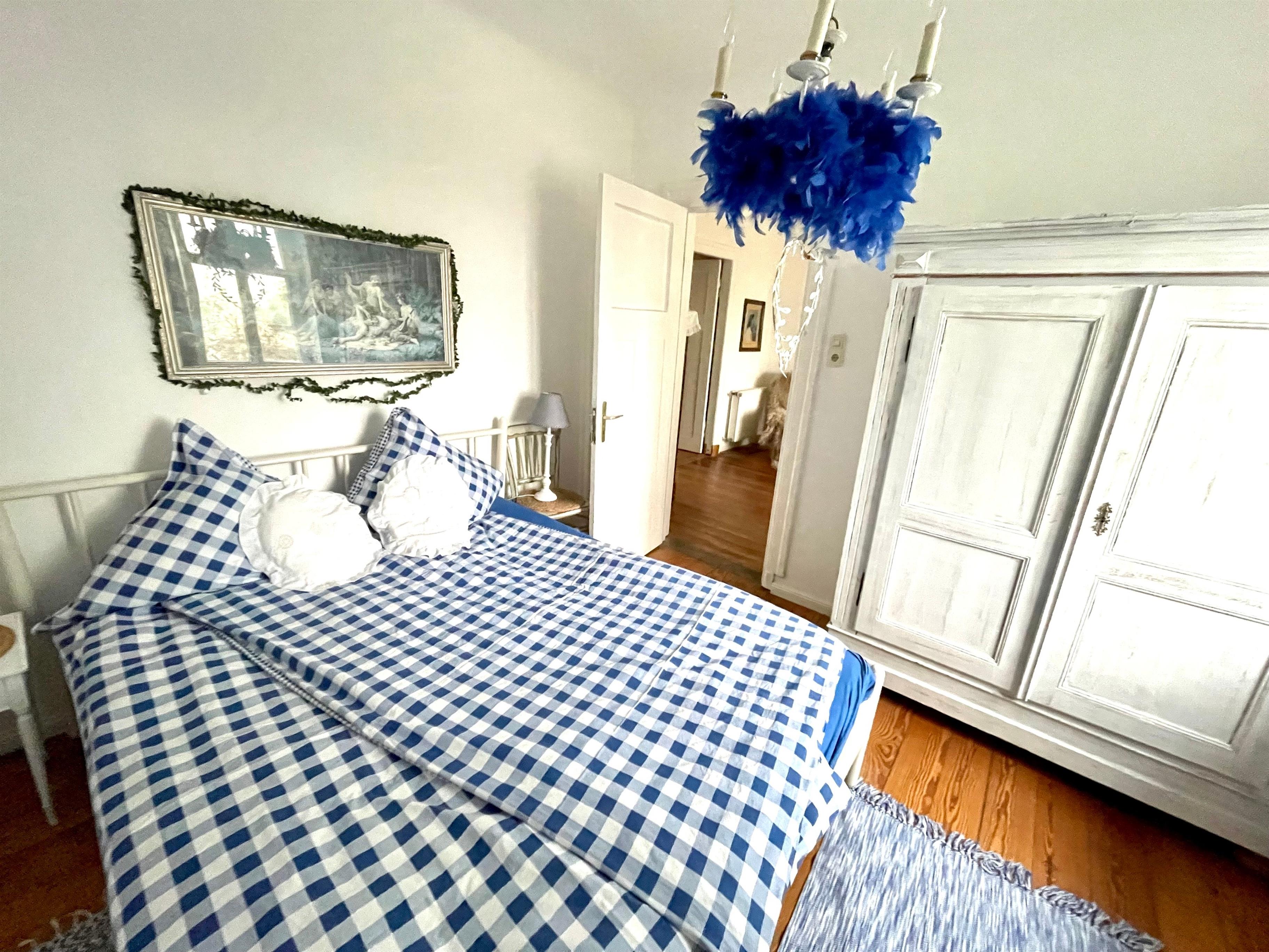 Unsere Ferienwohnung 2 befindet sich auf der ersten Etage des Haupthauses. Sie besteht aus 2 Schlafzimmern, einem Wohnzimmer mit Erker, einer Küche mit Essplatz und einem sehr grosszügigen Badezimmer mit Dusche, Badewanne und Bidet.