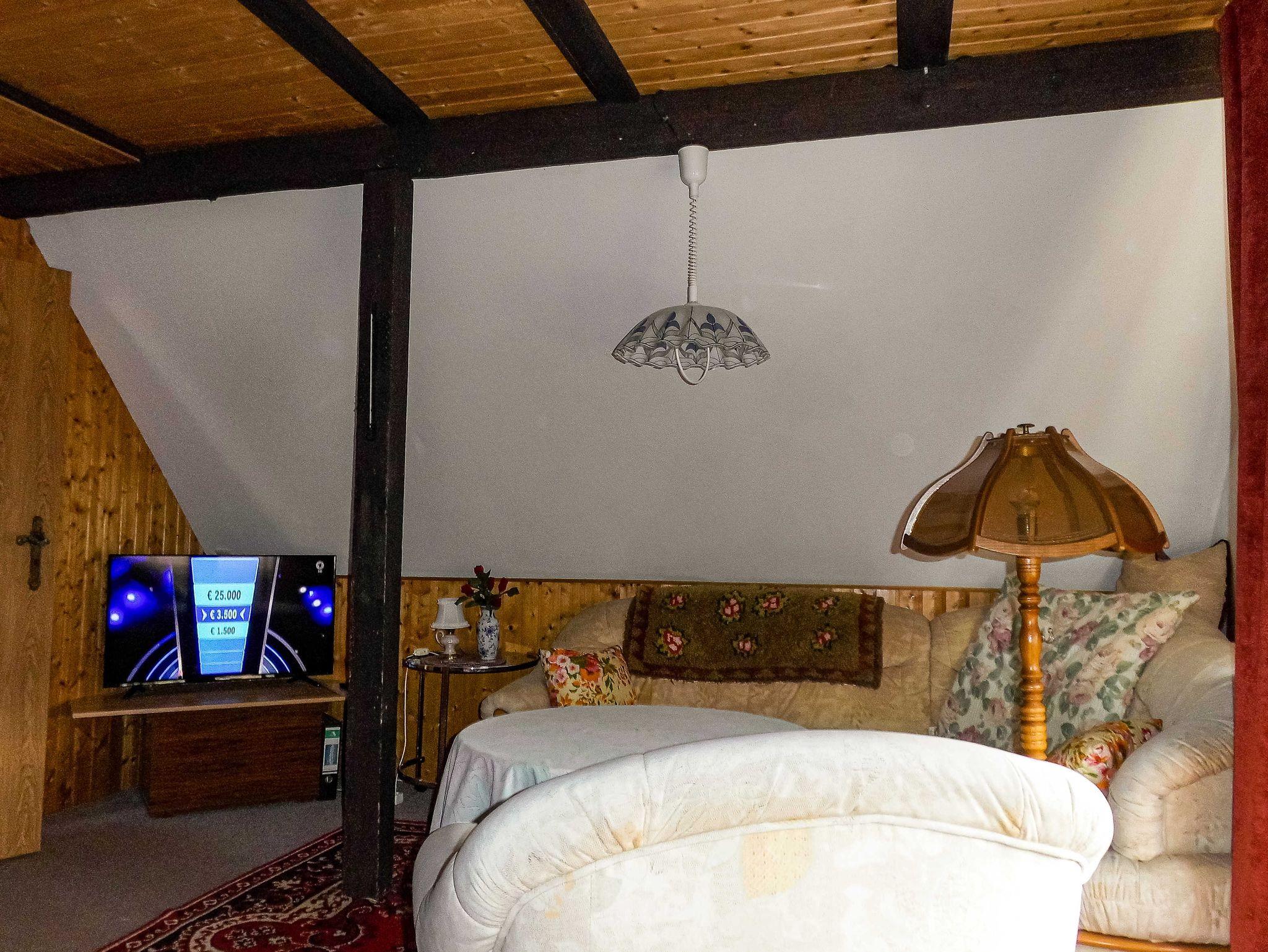 Die Ferienwohnung besteht aus einem großen kombinierten Wohn-/Schlafzimmer, welches u.a. mit einer gemütlichen Couchecke, Doppelbett (160x200; getrennte Matratzen) und einer TV-SAT-Anlage ausgestattet ist. Das Schlafzimmer verfügt über eine Doppelbettcouch (160x200) und einen Kleiderschrank. Die Mini-Küche enthält alle notwendigen Utensilien zur Zubereitung von Speisen und eine Sitzgelegenheit. Das Bad ist ausgestattet mit Dusche und WC.