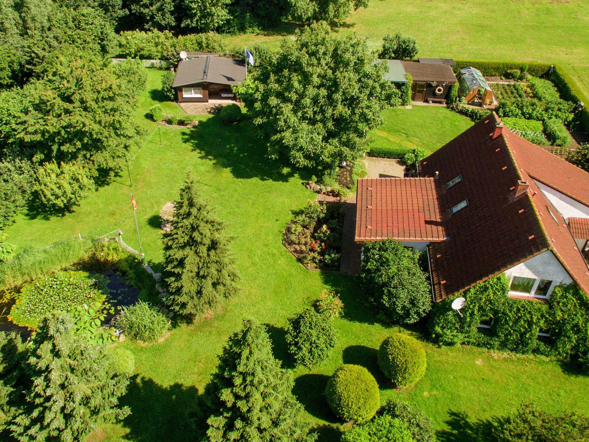 Das parkähnlich gestaltete Grundstück bietet neben dem Fischteich, Grill- und Räucherplatz auch viel Freiraum zum Relaxen und ungestörten Sonnenbaden (auch FKK möglich).
