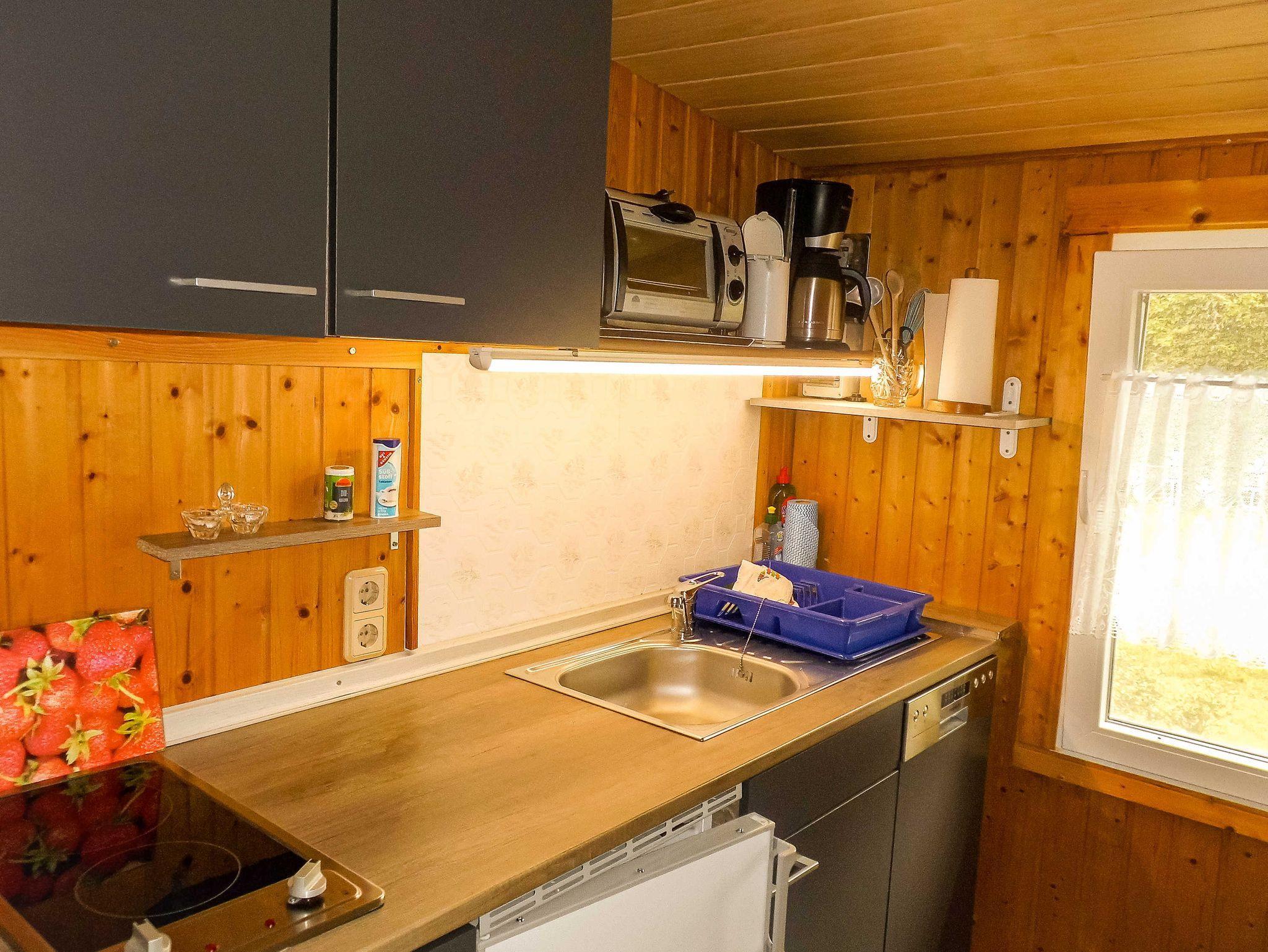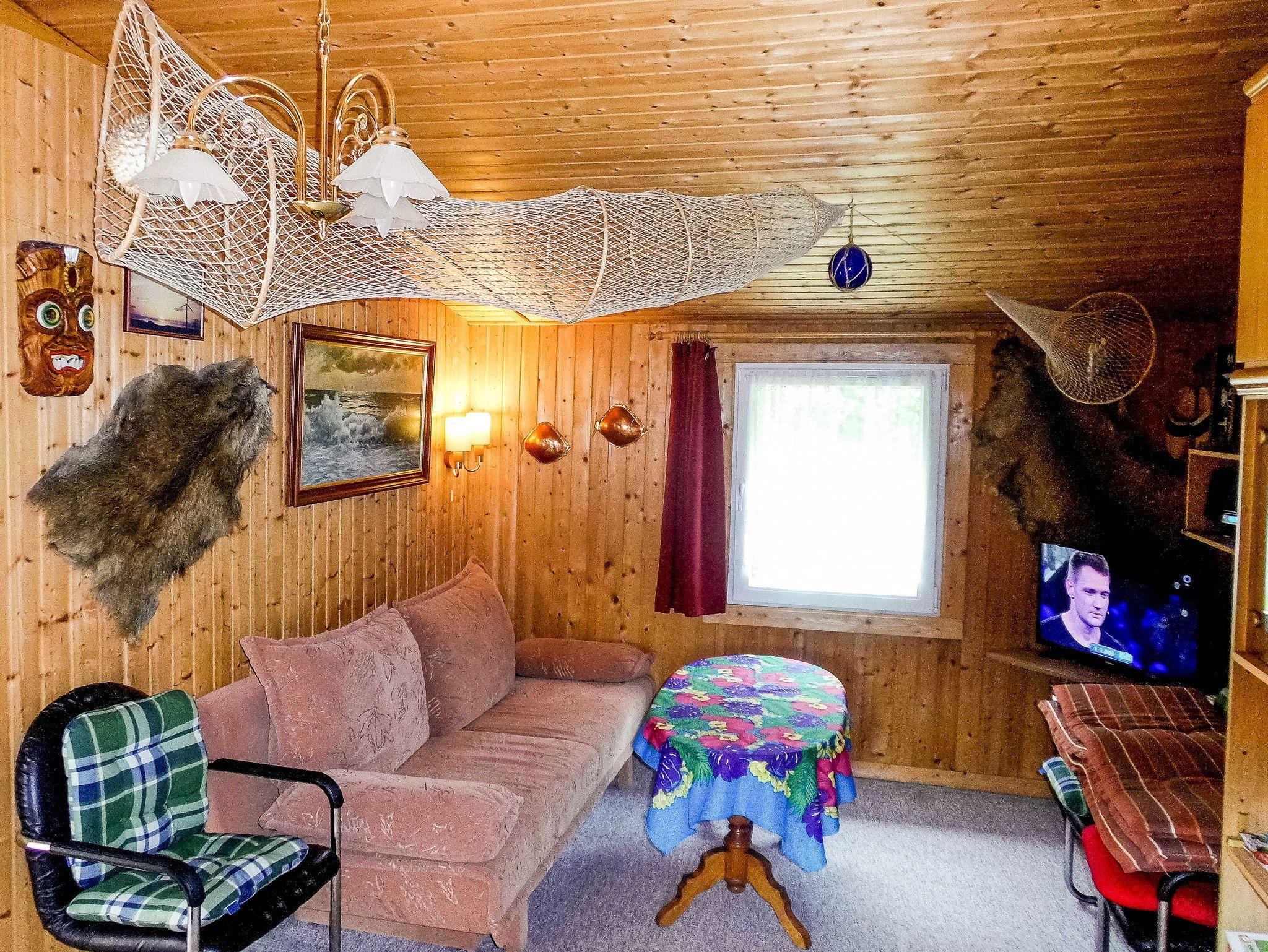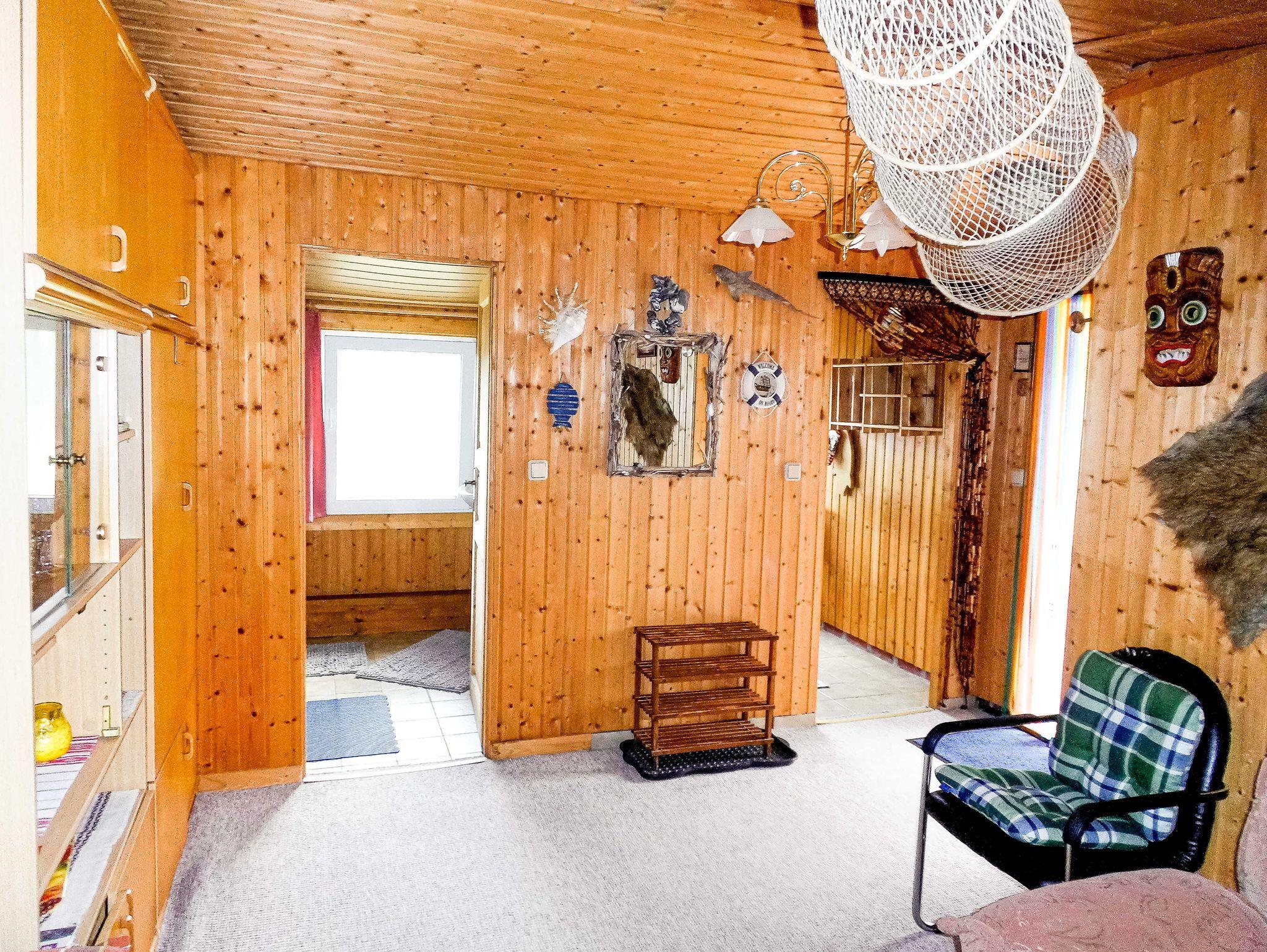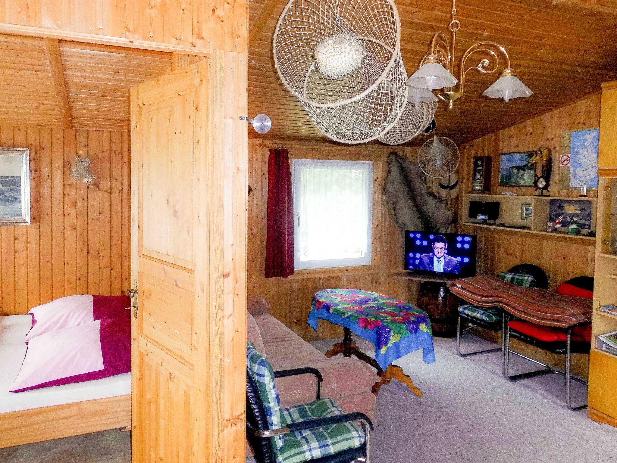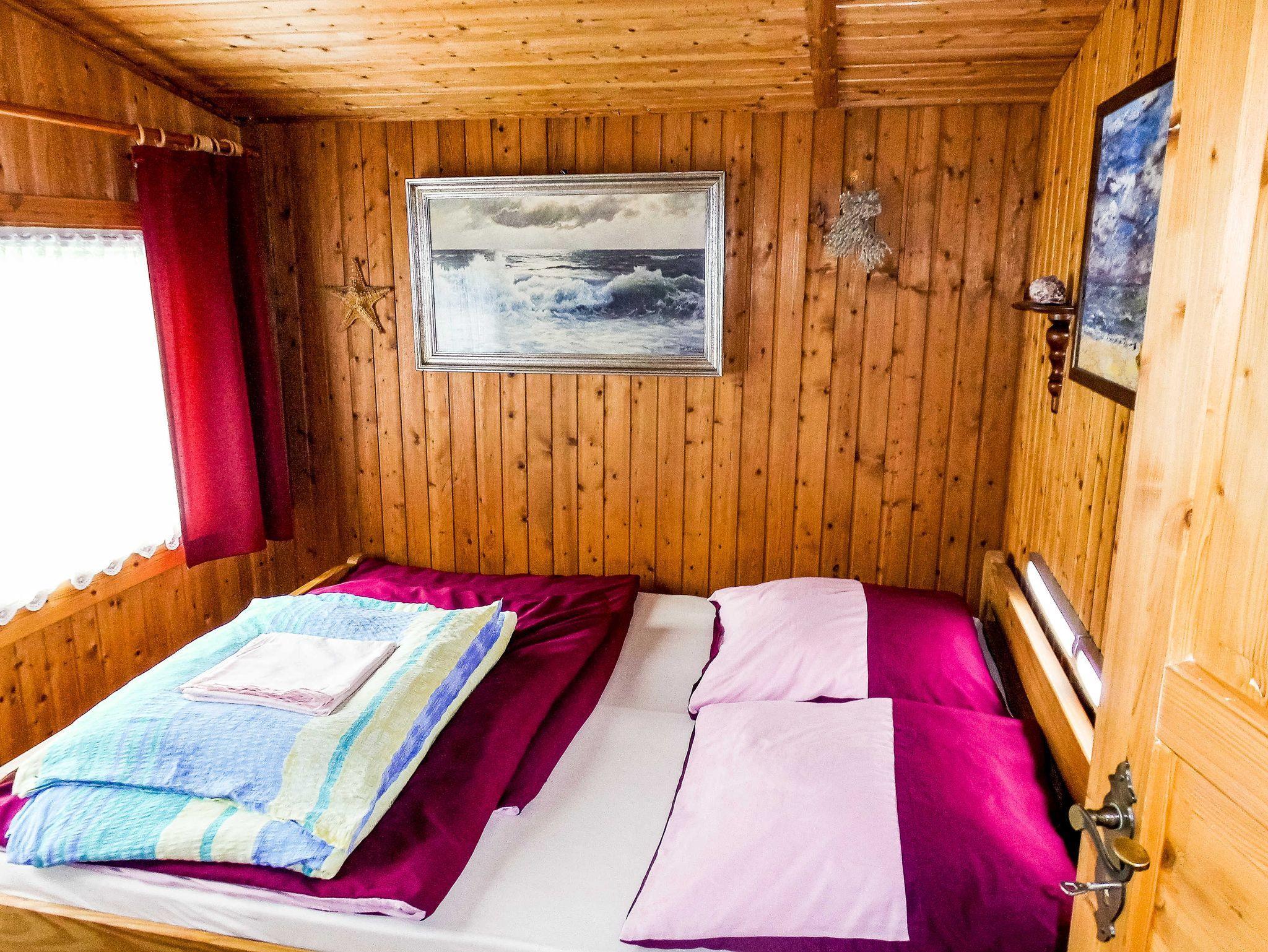 Der rustikale Wohnraum verfügt über eine Schlafcouch (160x200), einer kleinen Schrankwand und TV-SAT-Anlage. Der Schlafraum ist separat mit Doppelbett (160x200; getrennte Matratzen) für 2 Personen ausgestattet. Bettwäsche wird gestellt. Eine Mini-Küche enthält alle notwendigen Utensilien zur Zubereitung von Speisen. Das Bad besteht aus Dusche und WC.