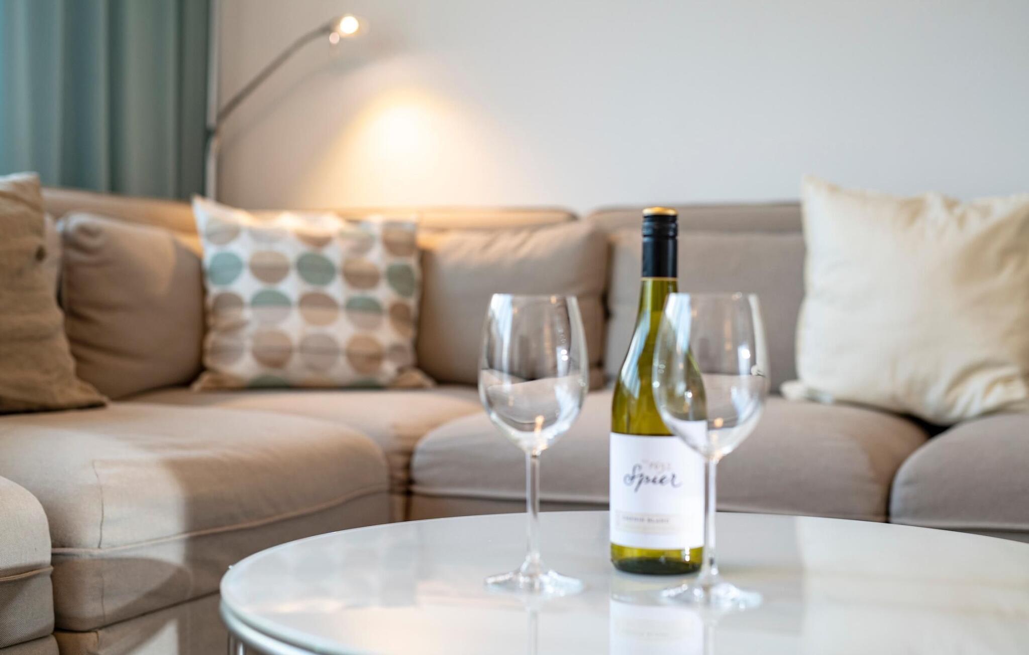 Unser Lieblingsplatz: Nach einem ausgiebigen Strandtag eine Wellness-Einheit einlegen und mit einem Sundowner auf der Terrasse den Blick auf die wunderschöne Schlei genießen