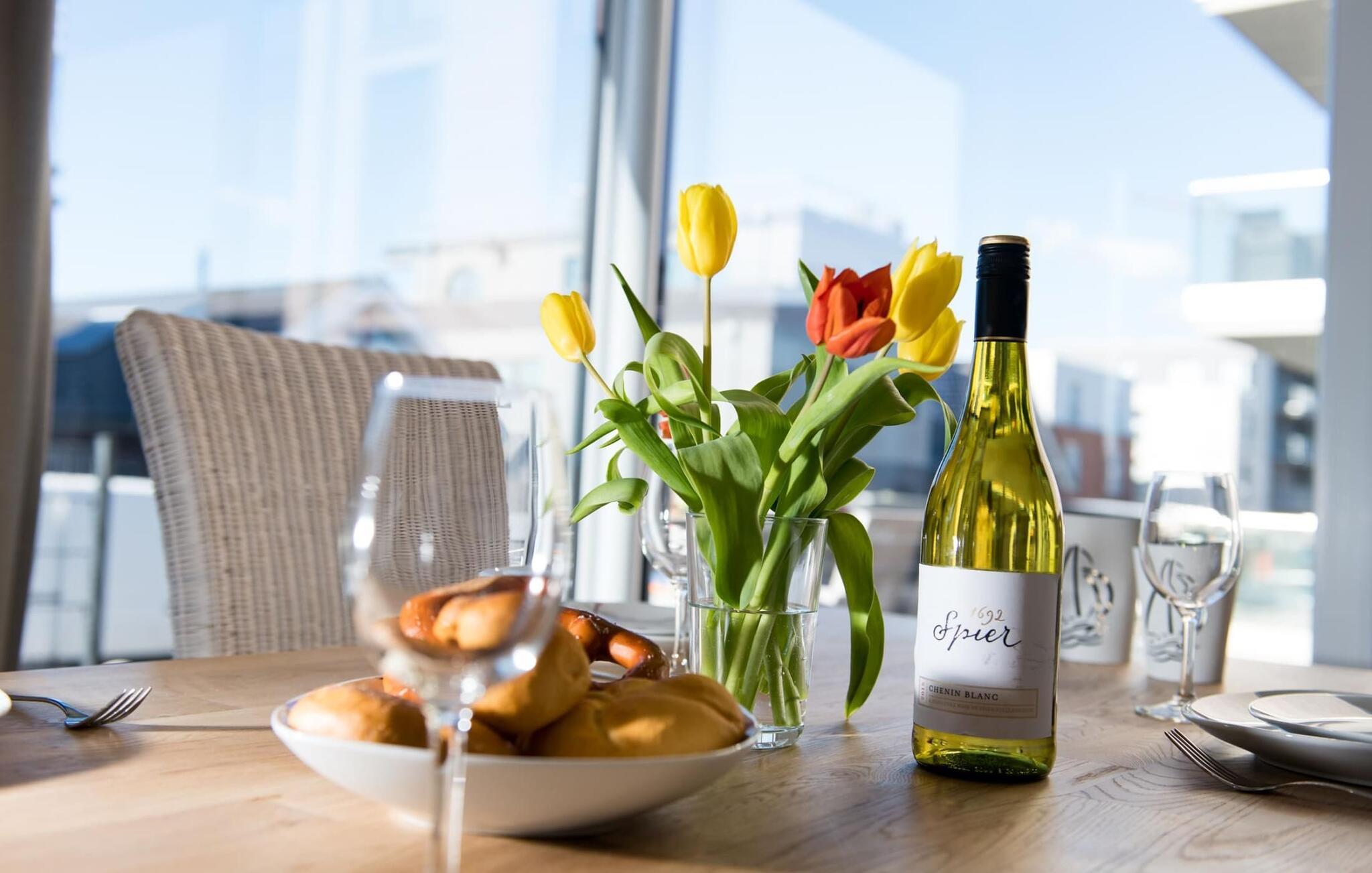 Natürliche Materialien, dezente Formen und gedeckte Farben machen den Charme dieses Ferienhauses aus. Ankommen und Wohlfühlen garantiert.