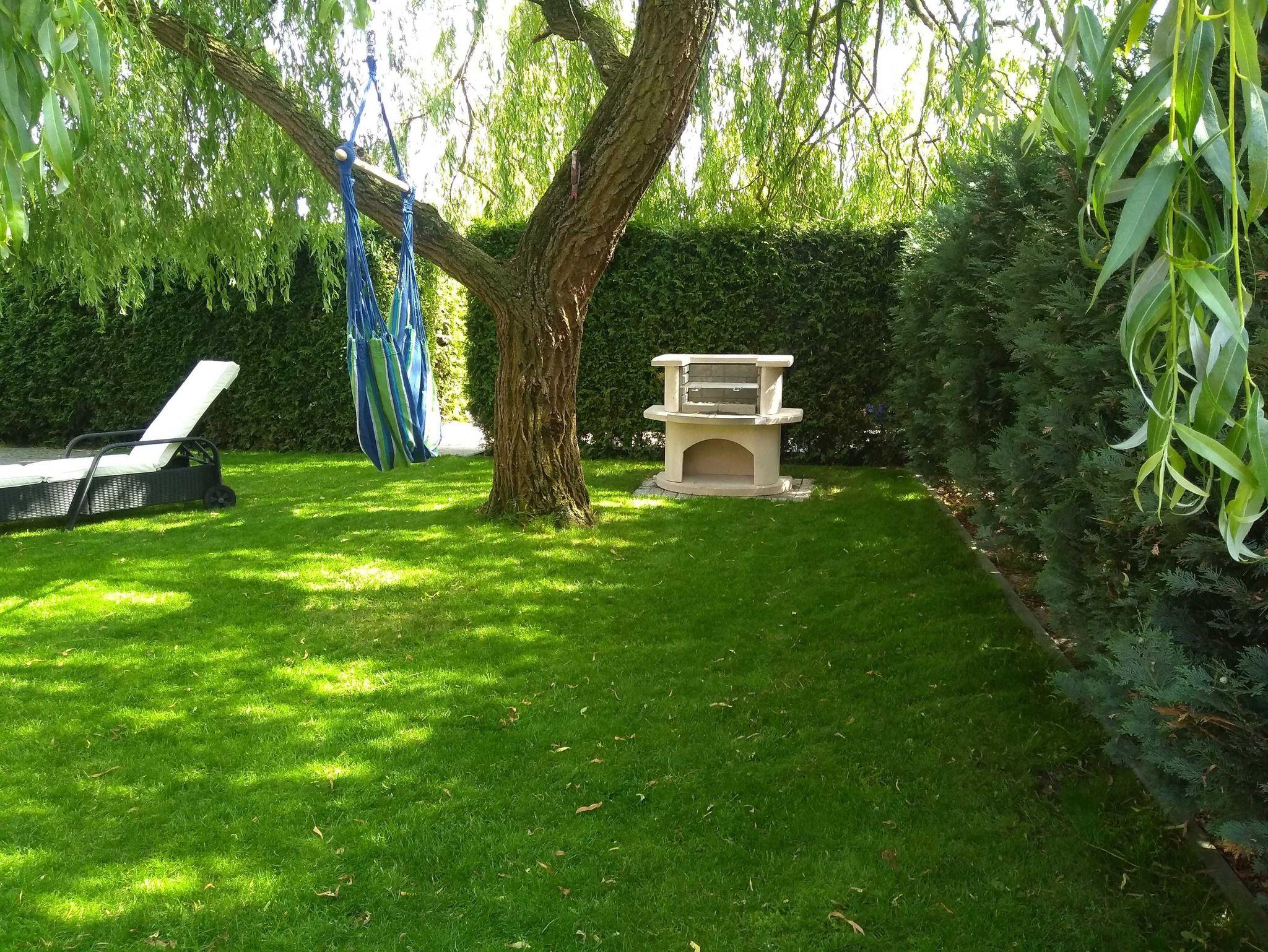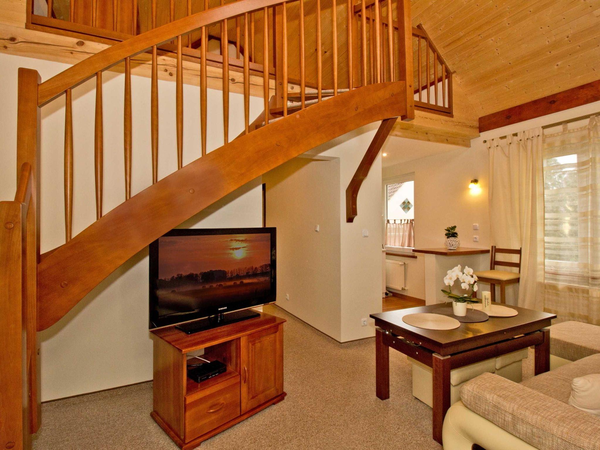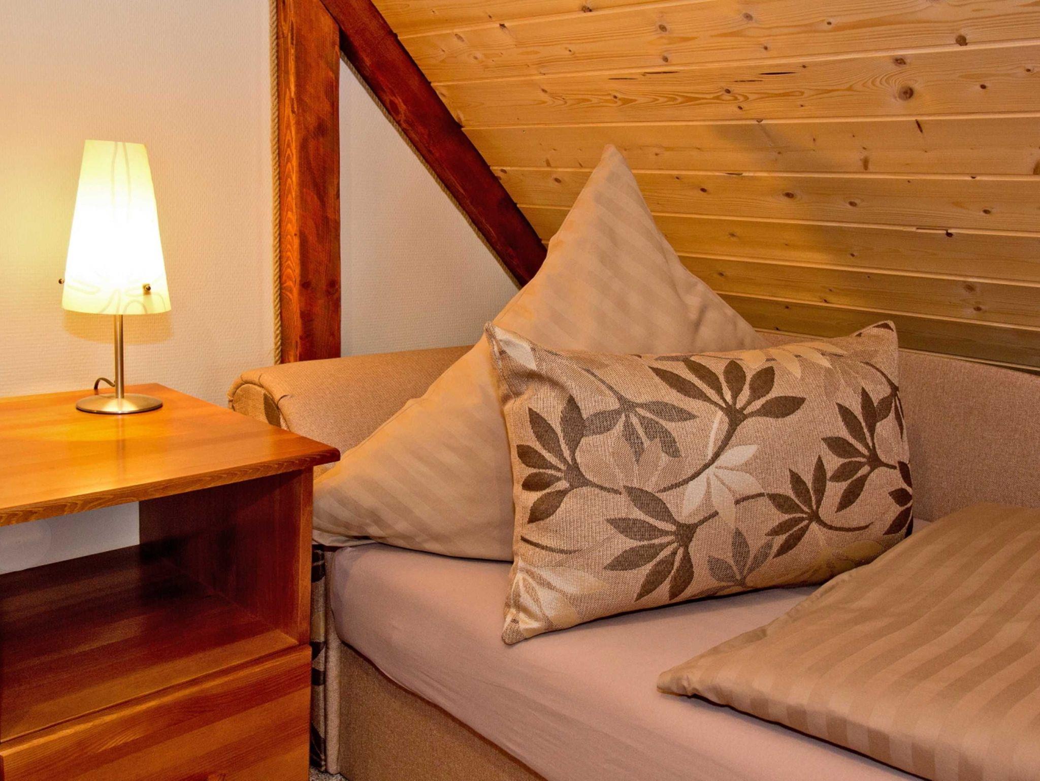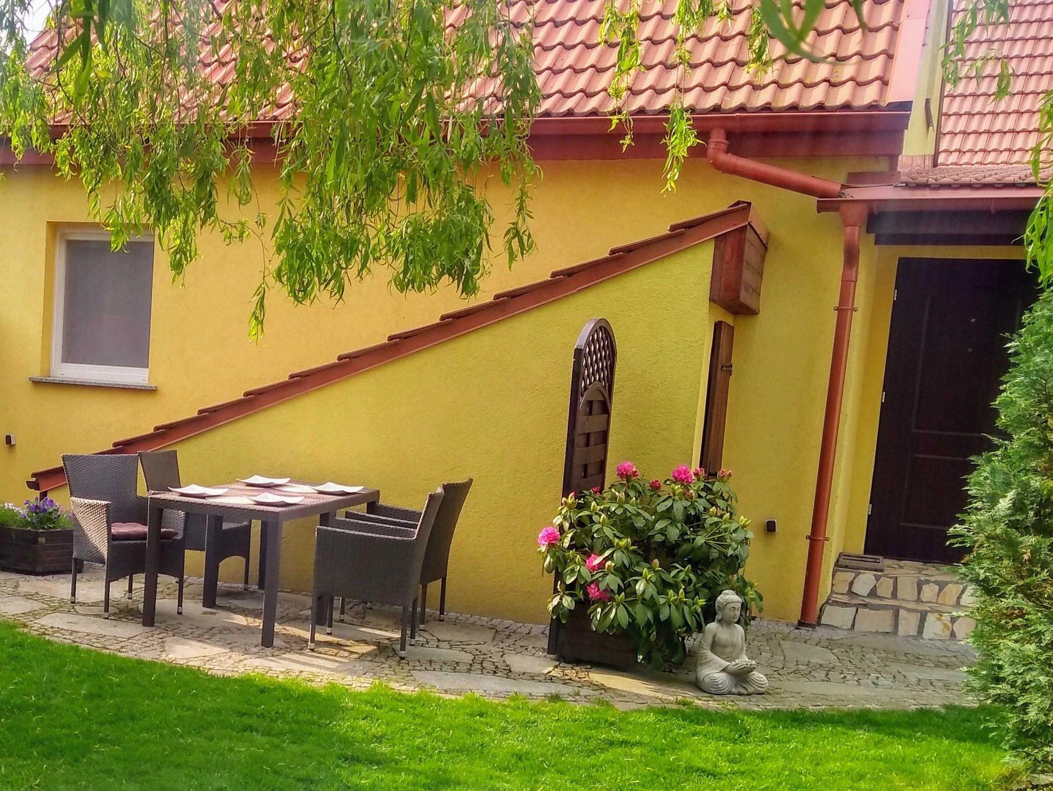Das Ferienhaus, welches teilweise zur Strassenseite des Grundstücks gelegen ist, verfügt über 3 stilvoll und modern eingerichtete Zimmer (1 Wohn- und 2 Schlafzimmer), sowie ein Bad mit Dusche/WC (durch das Schlafzimmer zu erreichen) und eine offene Küche. Das Wohnzimmer mit Eckcouch und HDTV-Fernseher inkl. Radiofunktion lädt zum gemütlichen Verweilen ein. Das Schlafzimmer im Erdgeschoss verfügt über ein breites Doppelbett (Breite 160 cm) und eine Wohnwand inkl. Kleiderschrank. Die Loggia im Wohnzimmer ist ausgestattet mit zwei Einzelbetten und drei Kommoden. Klein, geräumig und gut ausgestattet- die offene Küche verfügt über eine Kochstelle mit 2 Herdplatten, Spüle, Kühlschrank, Toaster, Kaffeeautomat, Wasserkocher, Mikrowelle, sowie Geschirr und Kochuntensilien. Der Eingang befindet sich auf der ruhigen Hofseite. Direkt vor dem Ferienhaus befindet sich eine eigene gemütliche Sitzecke im ruhig gelegenen Garten der Ferienanlage inklusive Grill welcher zum Ferienhaus gehört.