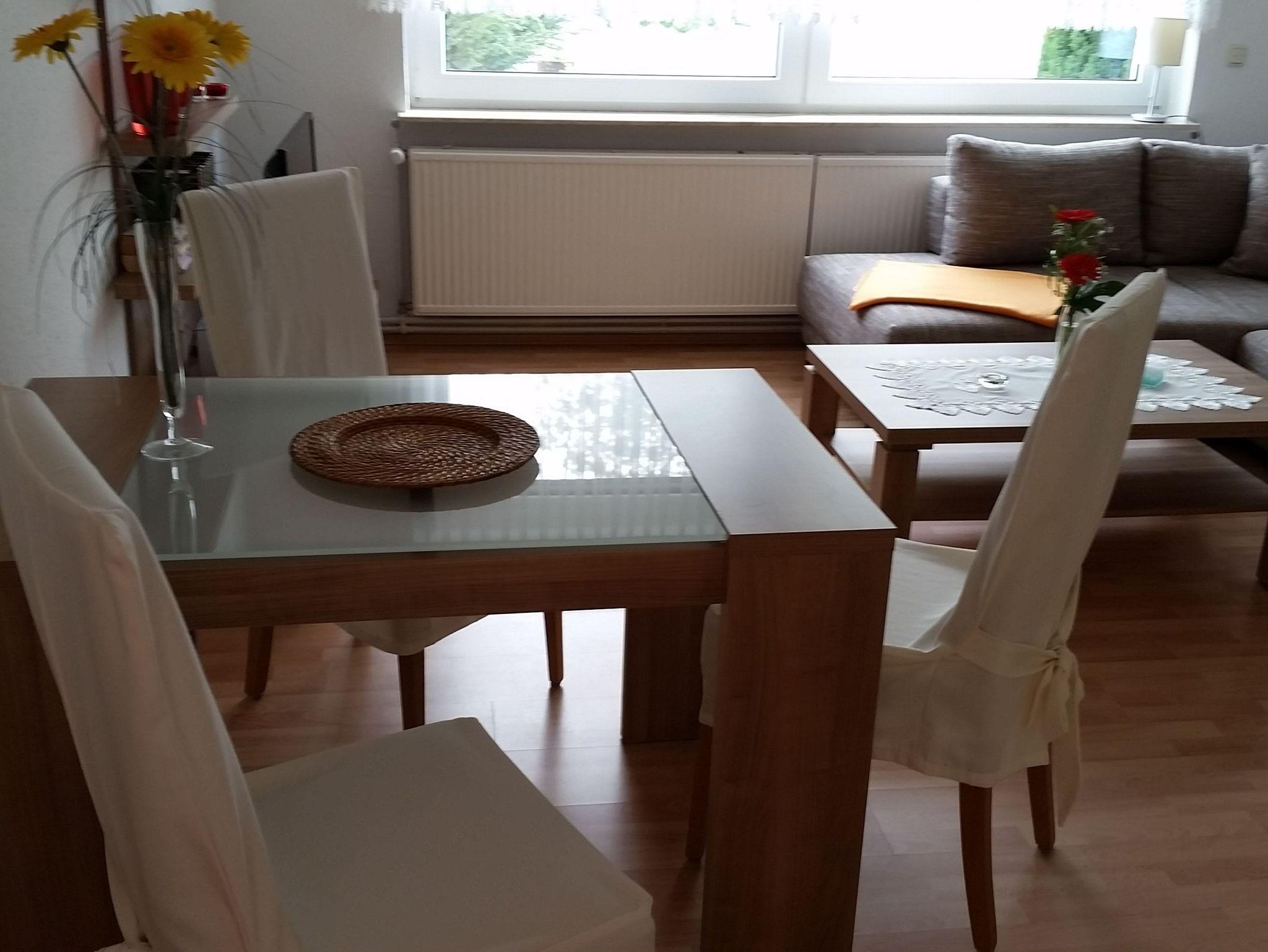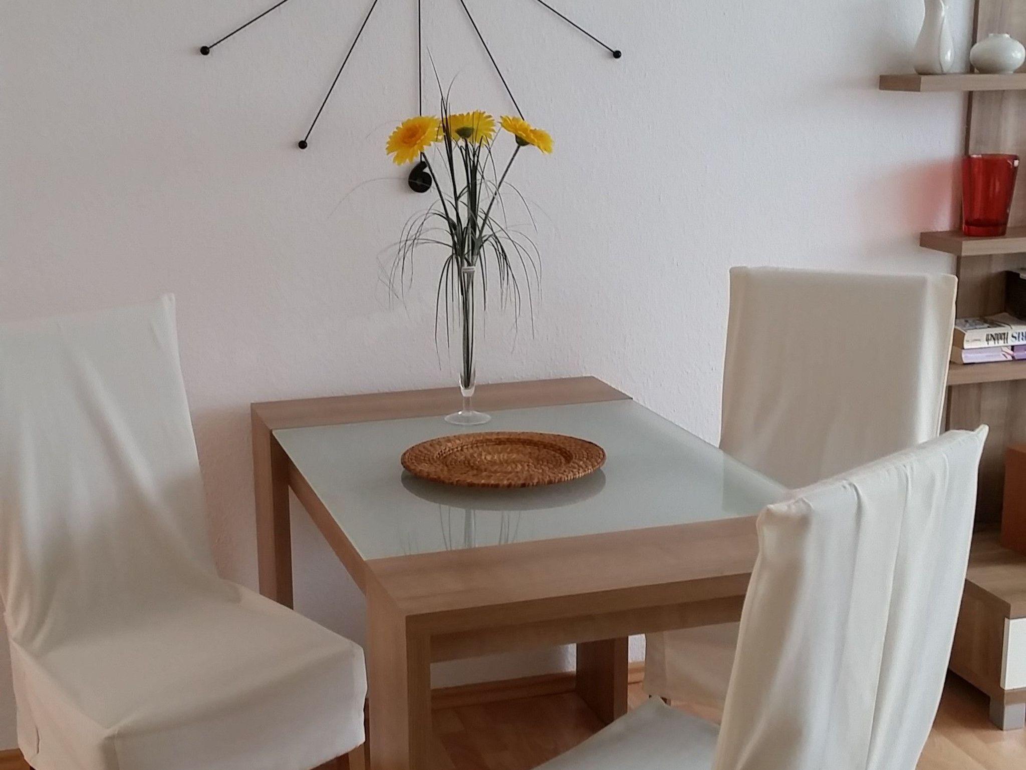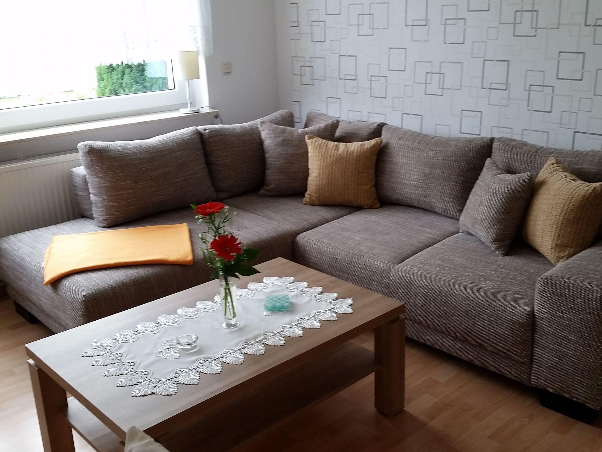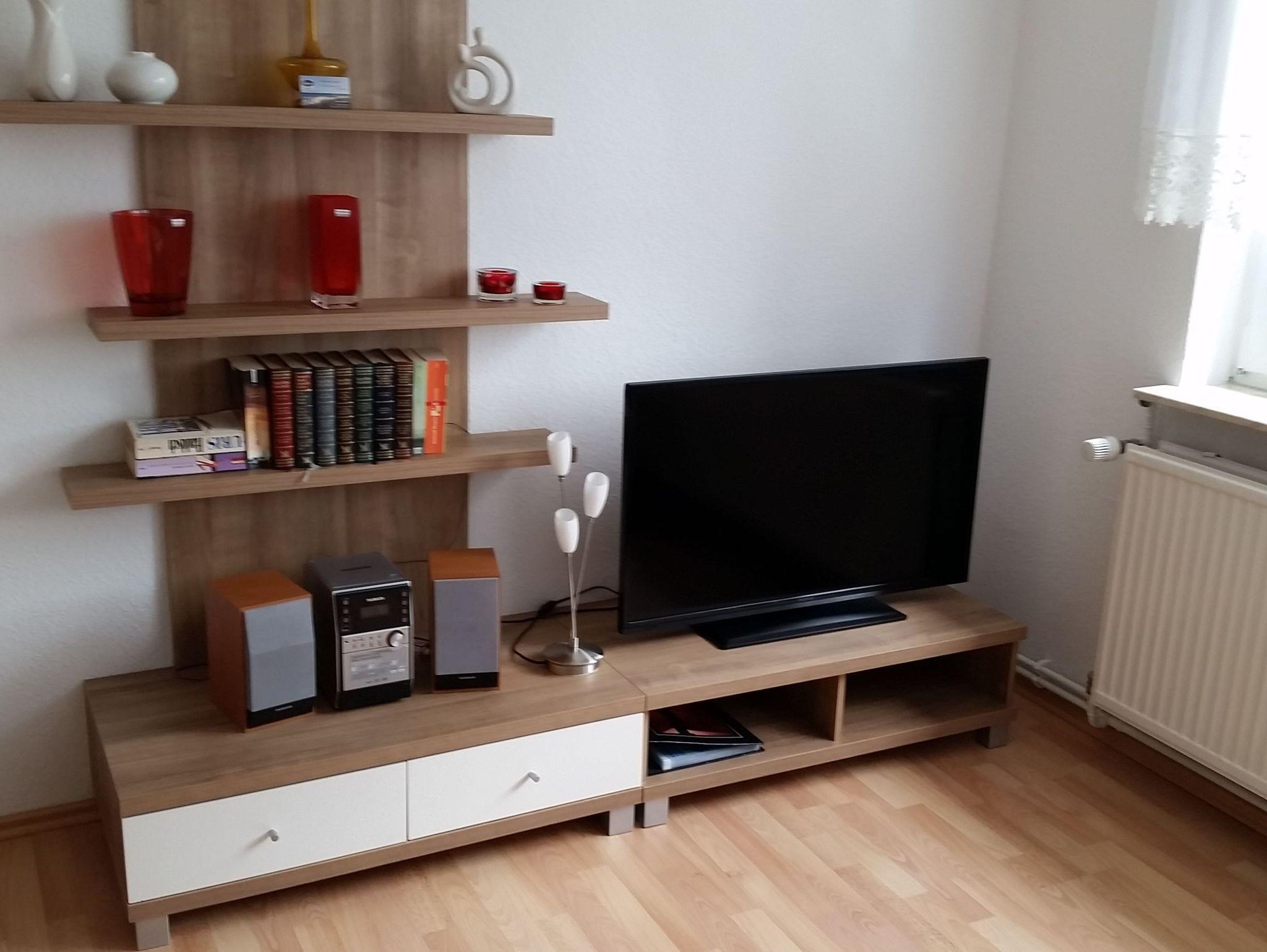 Die 2 Raum-Wohnung (45 m²) für max. 3 Personen sind hell und modern eingerichtet. Das Wohnzimmer ist mit einer Eckschlafcouch ausgestattet, so wie Flachbild-TV, Radio und HiFi-Anlage.
