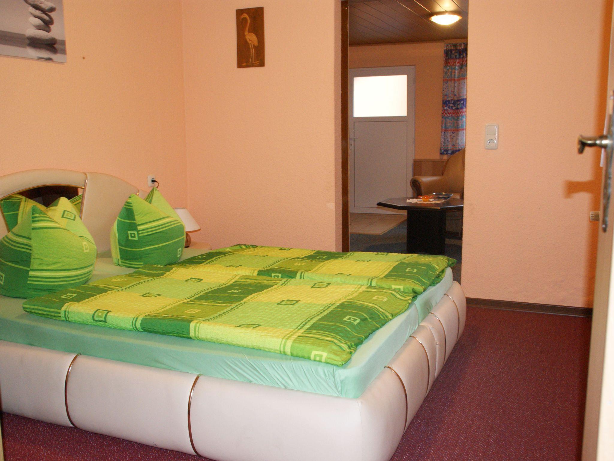 Die Ferienwohnung 2 ist ca. 43m² groß und verfügt über ein Wohnzimmer mit einem Sofa, Flat-TV und Radio. Die separate Küche ist ausgestattet mit einem Mini-Backofen, 2-Platten-Herd, Kühlschrank mit Gefrierfach, Kaffeemaschine, Toaster, Wasserkocher und mit einem Essplatz. Das große Schlafzimmer verfügt über ein Doppelbett und über einen Kleiderschrank. Im kleineren Schlafzimmer befindet sich ein kleines französisches Bett. Das Badezimmer ist mit einer Dusche ausgestattet. Vor der Wohnung befindet sich eine möblierte Terrasse. Zusätzlich finden Sie auf dem Grundstück eine überdachte Laube, die zum Grillen oder gemütlichen Beisammensein geeignet ist.