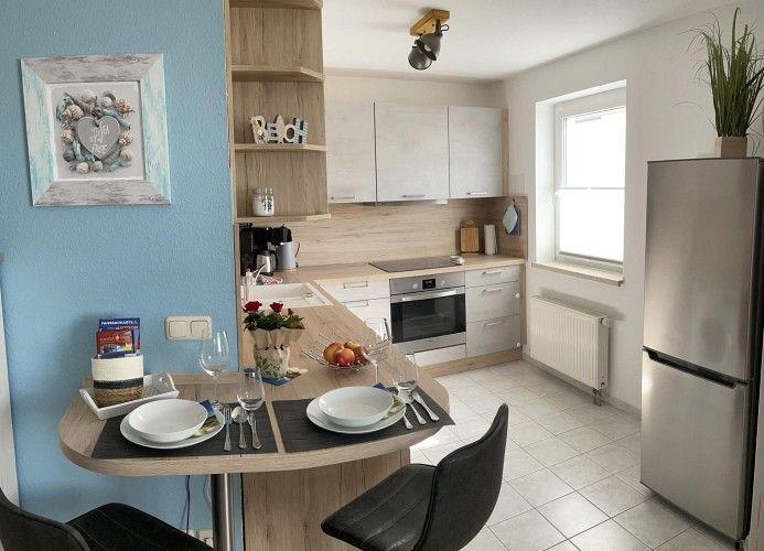 In der komplett ausgestatteten Küche der Ferienwohnung Wiesenblick können Sie nach Herzenslust kochen und sich wie zu Hause fühlen. Ob Sie sich für ein romantisches Candle-Light-Dinner zu zweit oder ein ausgiebiges Familienessen entscheiden - hier stehen Ihnen alle Möglichkeiten offen. Die moderne Ausstattung lässt keine Wünsche offen und sorgt dafür, dass es Ihnen an nichts fehlt.