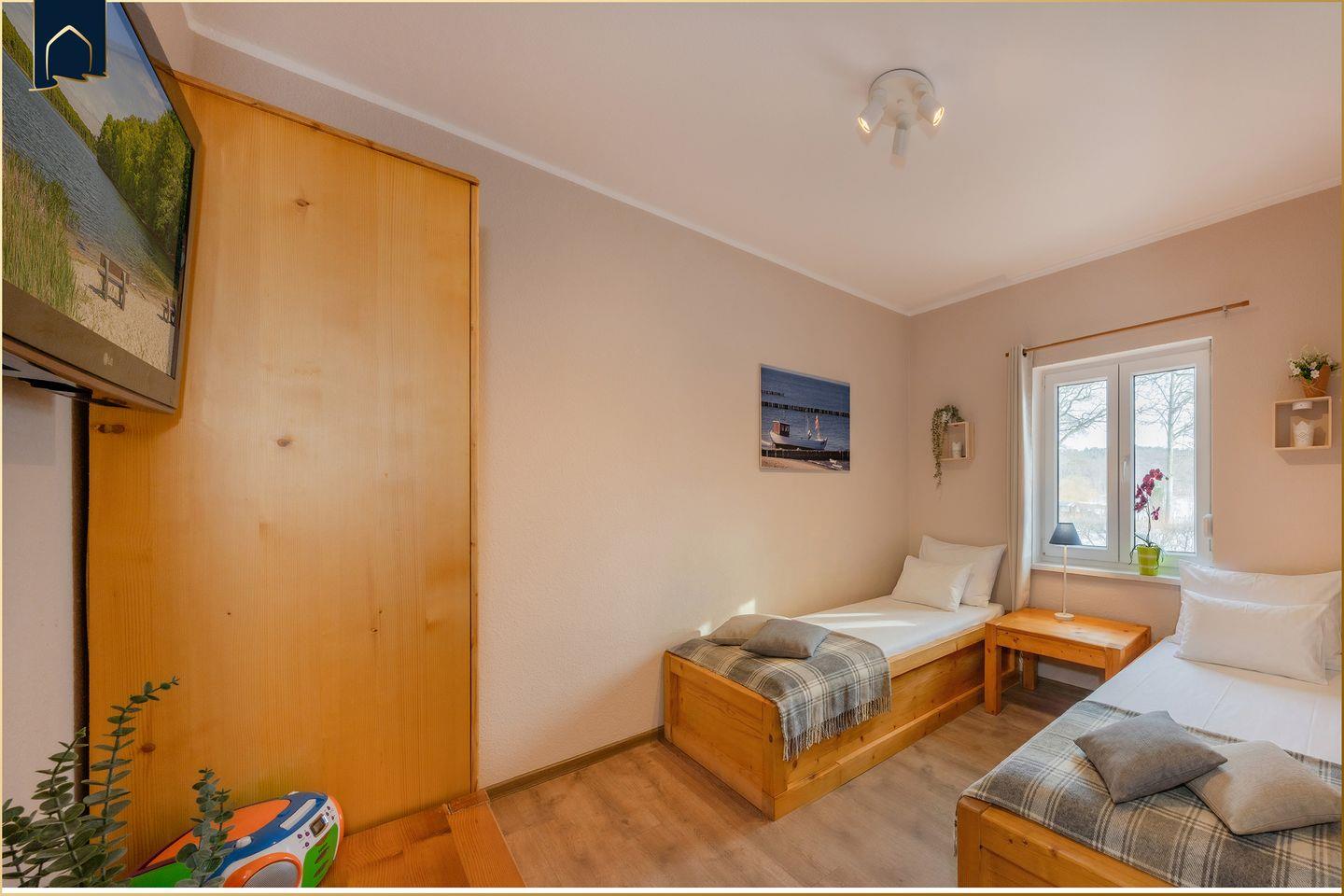 Mehrere Schlafzimmer sorgen für erholsame Nächte. Die beiden Badezimmer sind jeweils mit Dusche oder Badewanne ausgestattet und verfügen beide über ein Fenster, das für angenehmes Tageslicht und natürliche Belüftung sorgt – ein zusätzlicher Komfortfaktor nach einem aktiven Tag am See oder am Ostseestrand.