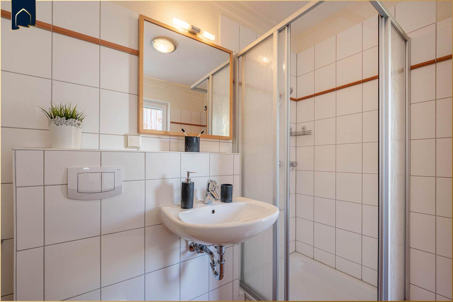 Ein überdachter Terrassenbereich mit Gartenmöbeln und Sonnenschirm lädt zum Verweilen im Freien ein. Für gesellige Abende steht ein Grill bereit. Ein Privatparkplatz direkt am Haus, ein abschließbarer Fahrradabstellraum und weitere durchdachte Details wie Waschmaschine, Staubsauger, Garderobe und Radio runden das Angebot ab. Haustiere sind willkommen, das Haus ist jedoch ausschließlich für Nichtraucher vorgesehen.
