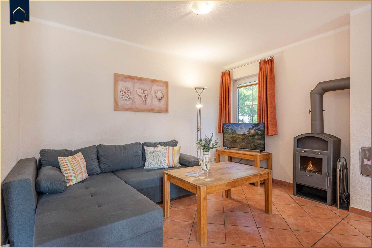 Dank der durchdachten Ausstattung mit WLAN, Fußbodenheizung, Feuermeldern und Fliegengittern fühlen sich Gäste das ganze Jahr über wohl. Der Kamin sorgt an kühleren Tagen für eine besonders behagliche Atmosphäre. Auch an die kleinen Gäste ist gedacht: Ein Spielplatz in der Nähe sowie ausreichend Platz im Garten bieten viele Möglichkeiten zum Spielen und Toben.
