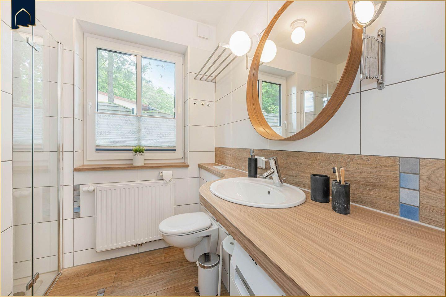 Trotz der ruhigen Lage erreichst du Restaurants, Supermärkte, den Strand und weitere Ausflugsziele schnell: Der nächste See ist nur 700?m entfernt, das Meer erreichst du in ca. 4?km. Ein Golfplatz liegt nur 800?m entfernt, der Bahnhof und Einkaufsmöglichkeiten sind in ca. 3?km erreichbar. Ob Wandern im nahen Wald, ein Strandtag an der Ostsee oder ein Besuch auf dem Golfplatz – dieses Ferienhaus ist der ideale Ausgangspunkt für abwechslungsreiche Urlaubstage. Zwei Privatparkplätze, WLAN und eine tierfreundliche Ausstattung runden das Angebot ab.