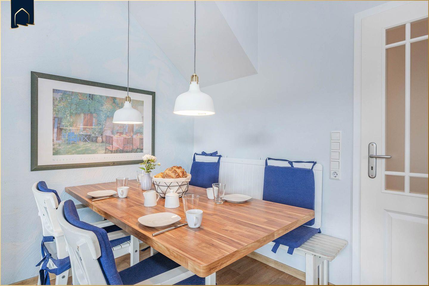 Drei komfortable Schlafzimmer bieten ausreichend Rückzugsorte für Familien oder befreundete Paare. Zwei moderne Bäder mit jeweils einer Dusche garantieren Privatsphäre und Komfort, selbst bei voller Belegung. Die voll ausgestattete Küche mit Herd, Backofen, Geschirrspüler, Kühlschrank mit Gefrierfach, Kaffeemaschine, Wasserkocher, Toaster und Mikrowelle lässt keine Wünsche offen. Der großzügige Essbereich lädt zu gemeinsamen Mahlzeiten ein. Im Wohnbereich sorgen TV, CD- & DVD-Player, Radio sowie Brettspiele für Unterhaltung bei jedem Wetter.