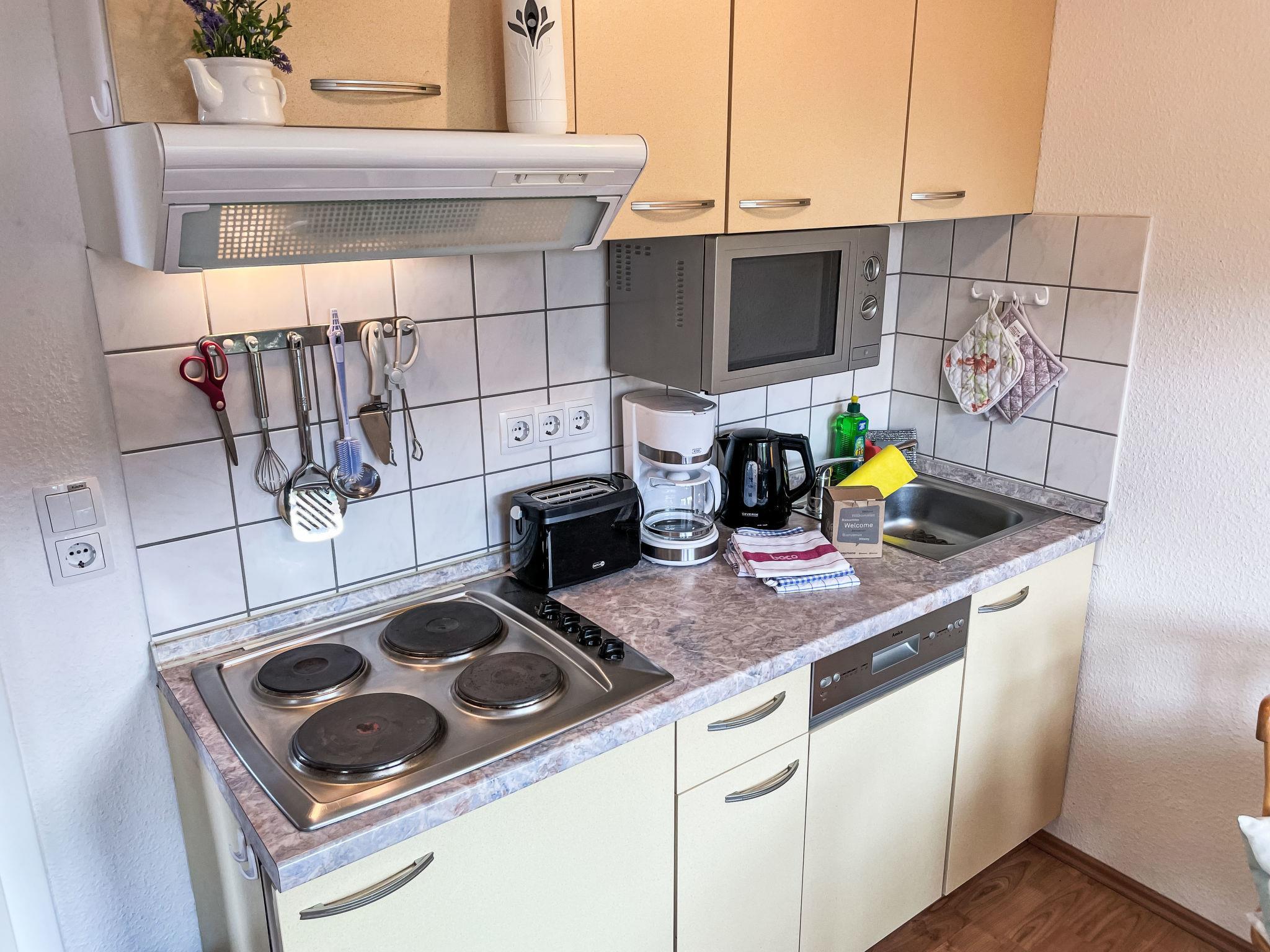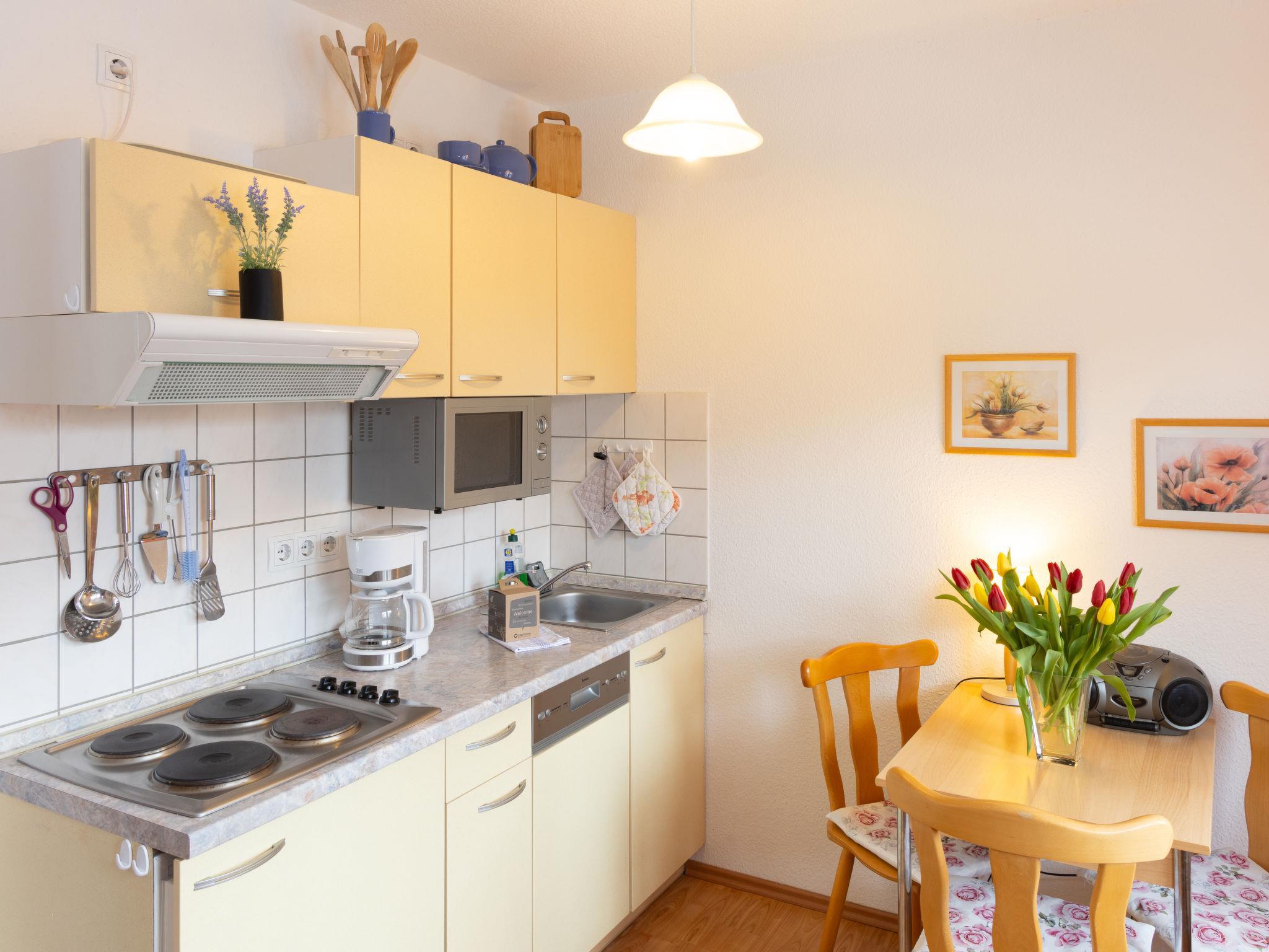 "Henneberg", 2-Zimmer-Wohnung 32 m2, im Erdgeschoss. Einfach eingerichtet: Wohn-/Esszimmer mit 1 Diwanbett und Kabel-TV (Flachbildschirm), Radio. 1 Zimmer mit 1 Doppelbett (140 cm, Länge 200 cm). Kochnische (Geschirrspüler, 4 Glaskeramikplatten, Toaster, Wasserkocher, elektrische Kaffeemaschine). Dusche/WC. Terrasse. Terrassenmöbel. Zur Verfügung: Kinderhochstuhl, Babybett. Bitte beachten: Nichtraucher-Unterkunft. Rauchmelder.