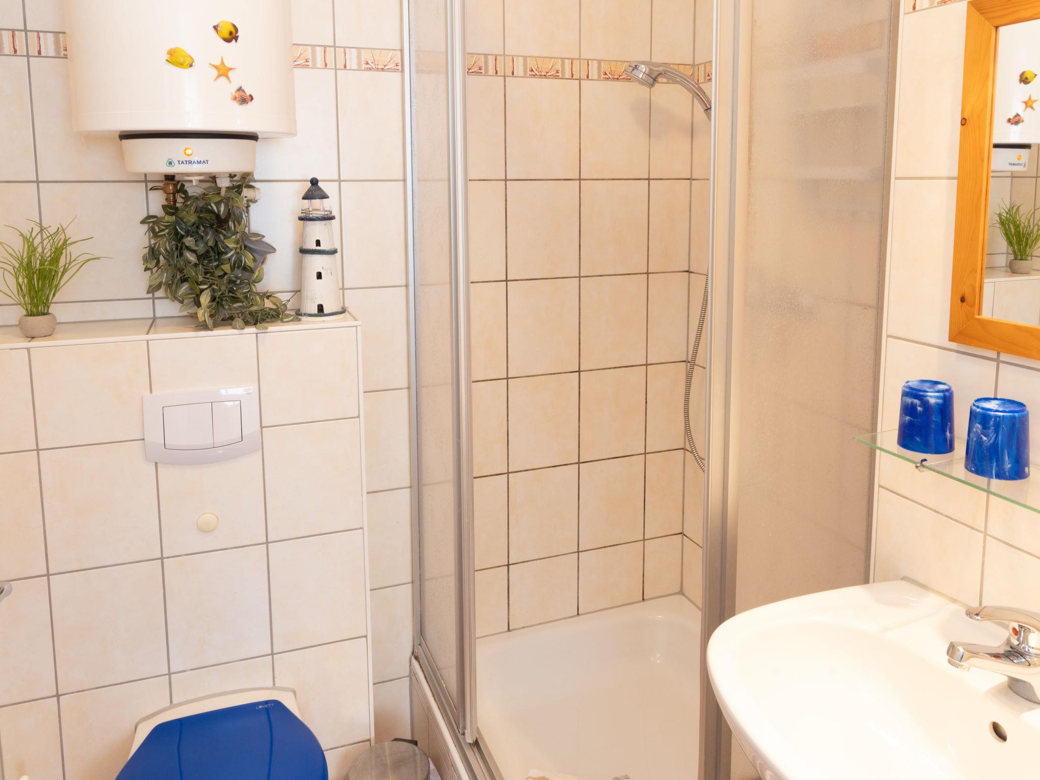 Mehrfamilienhaus. Im Ort, 550 m vom Zentrum von Koserow, 600 m vom Meer, 600 m vom Strand. Im Hause: Einstellraum für Fahrräder, Zentralheizung. Parkplatz auf dem Grundstück. Supermarkt 1 km, Restaurant 300 m, Bäckerei, Café 200 m, Bushaltestelle 1.1 km, Bahnstation 1.3 km, Sandstrand 600 m, Thermalbad "Bernsteintherme" 9 km. Golfplatz (18 Loch) 18 km, Surfschule 9 km, Minigolf 550 m.